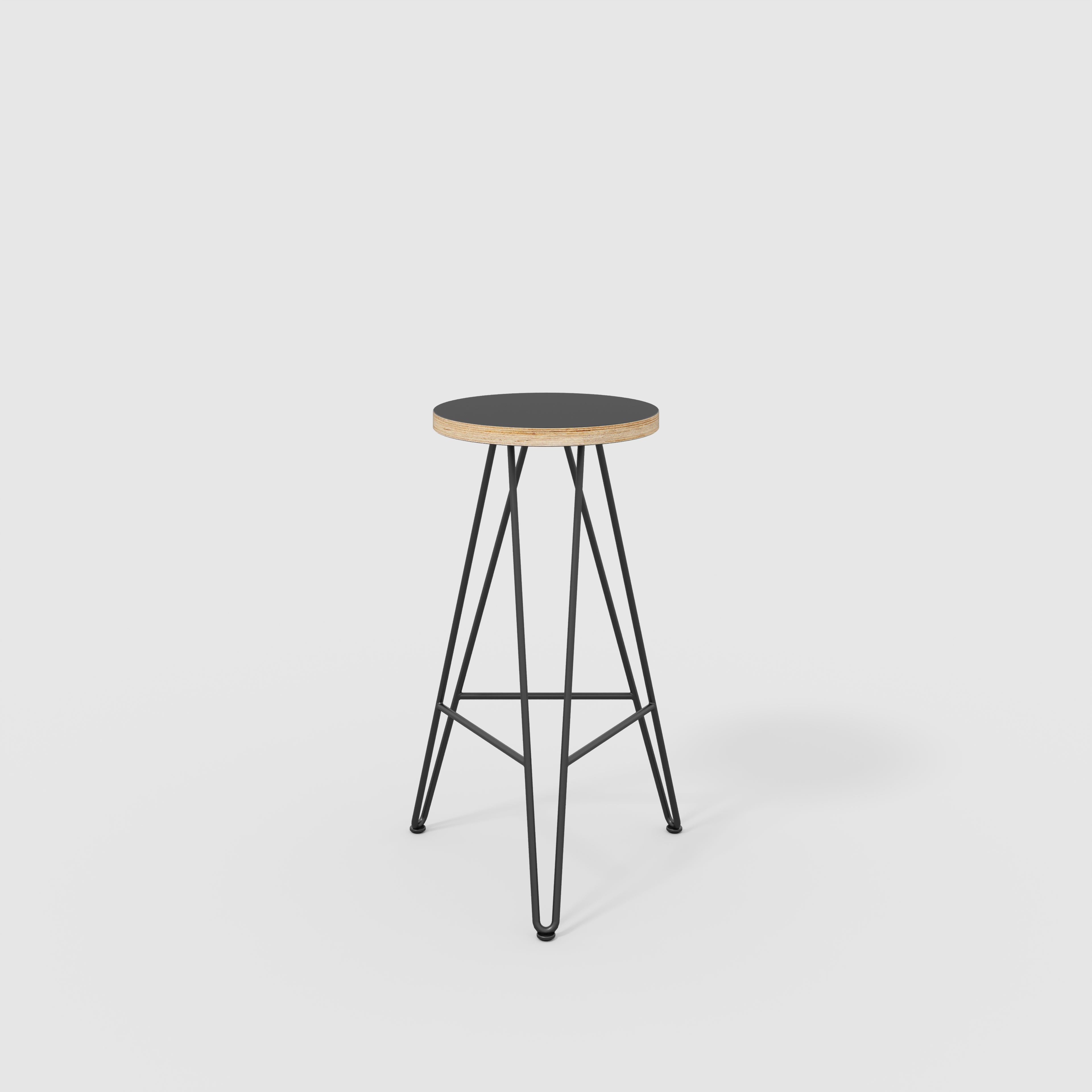 Plywood Bar Stool with Black Hairpin Base - Formica Diamond Black