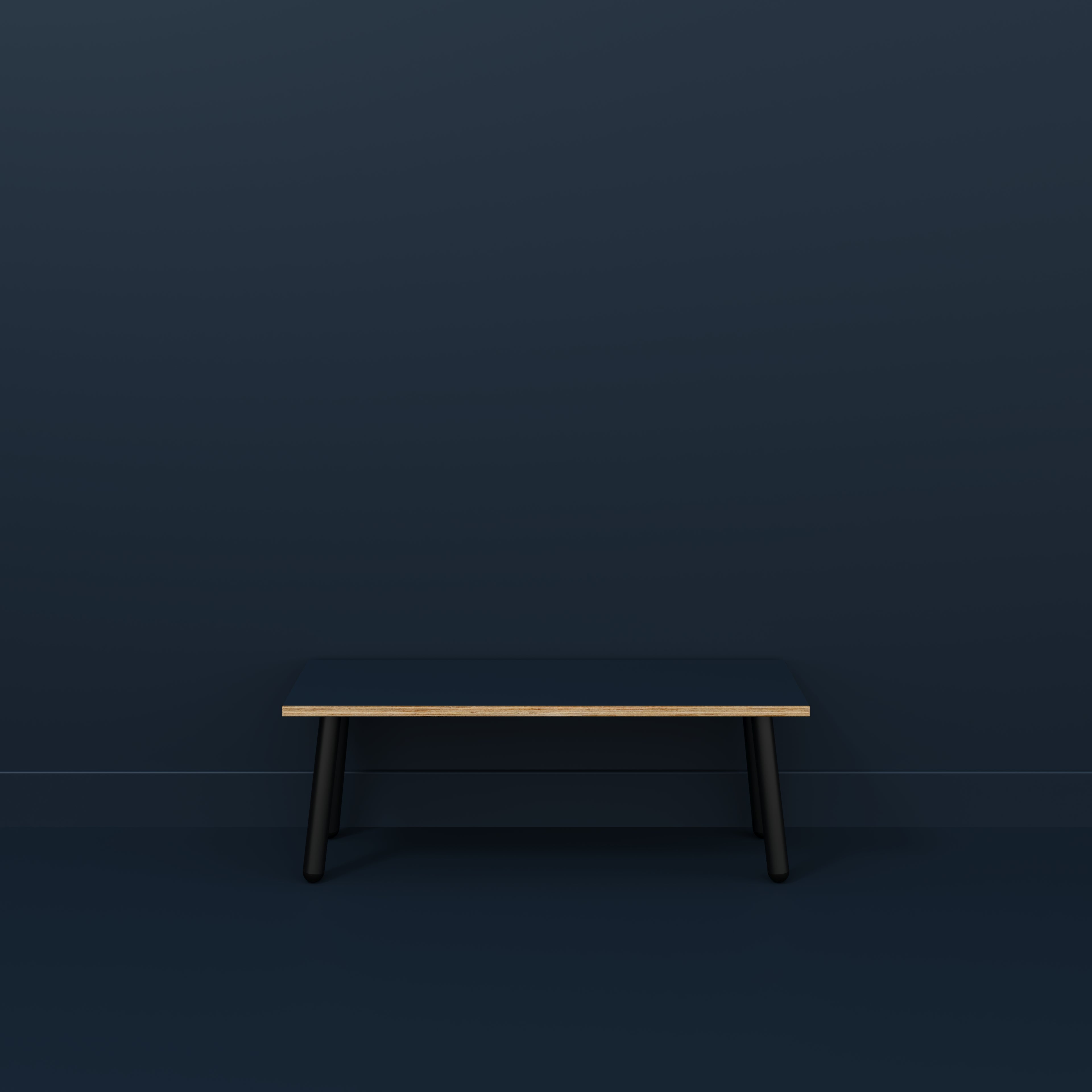 Plywood Bench Seat with Black Round Single Pin Legs - Formica Night Sea Blue - 1200(w) x 400(d)