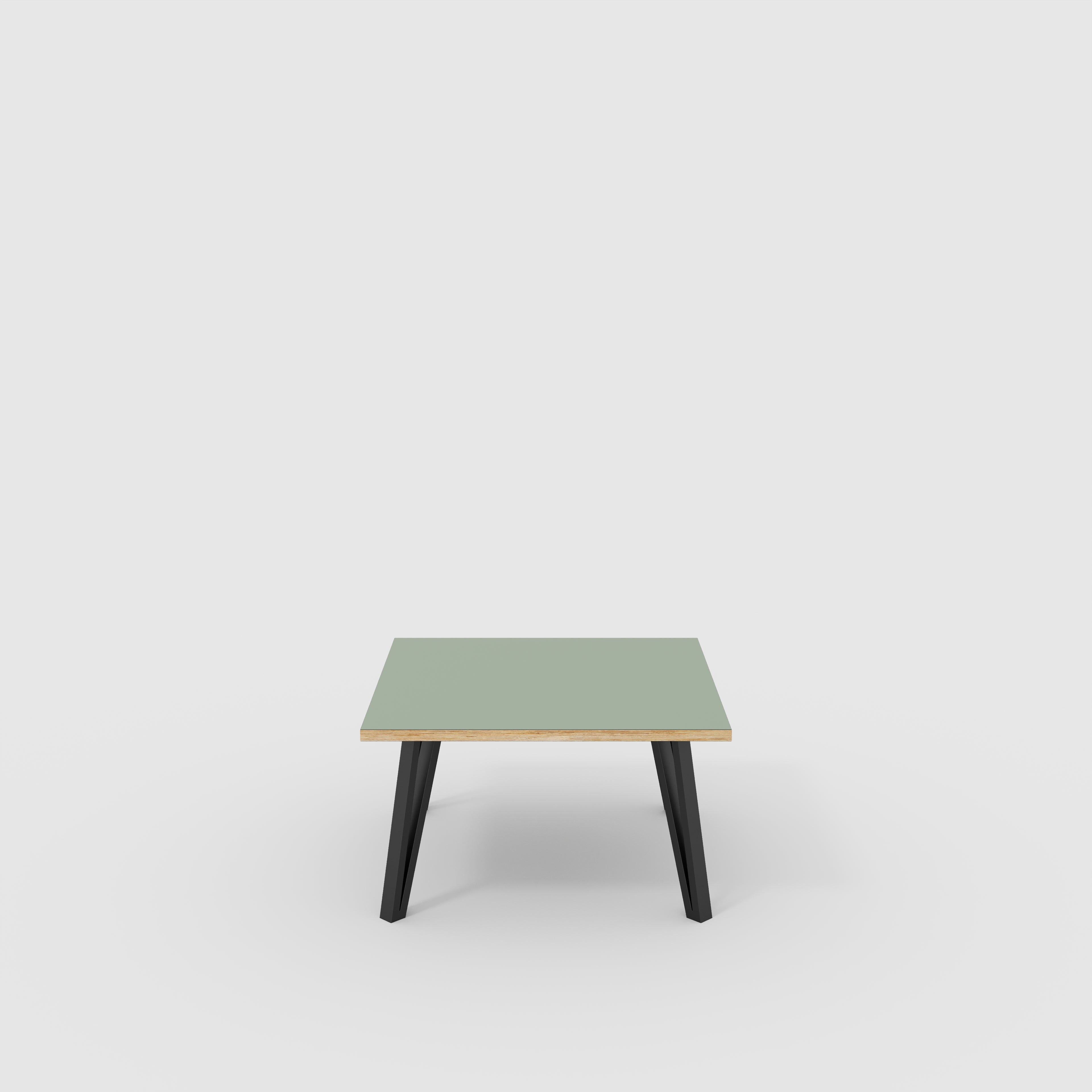 Plywood Coffee Table with Black Box Hairpin Legs - Formica Green Slate - 800(w) x 800(d) x 425(h)