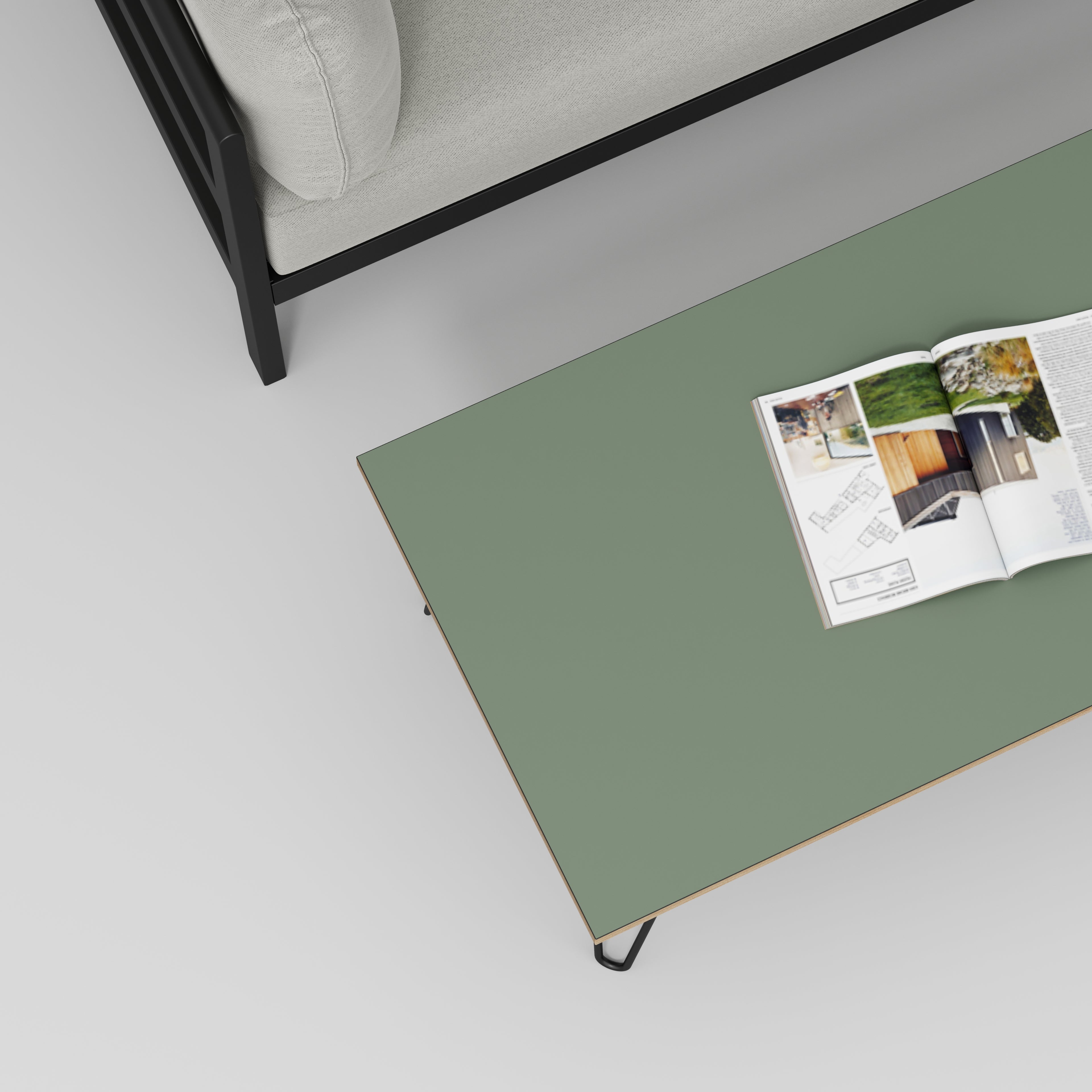 Plywood Coffee Table with Black Hairpin Legs - Formica Green Slate - 1200(w) x 600(d) x 425(h)