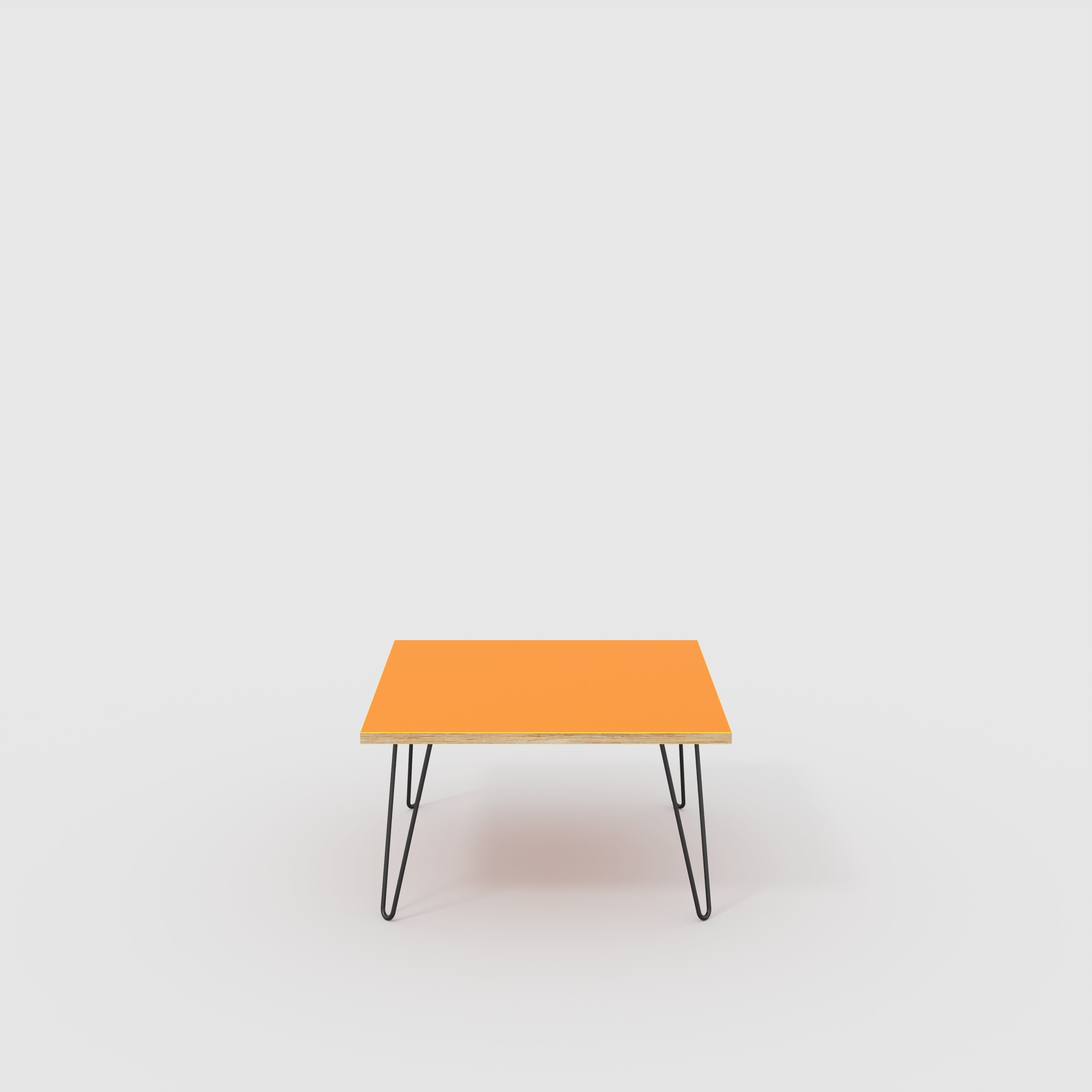 Plywood Coffee Table with Black Hairpin Legs - Formica Levante Orange - 800(w) x 800(d) x 425(h)