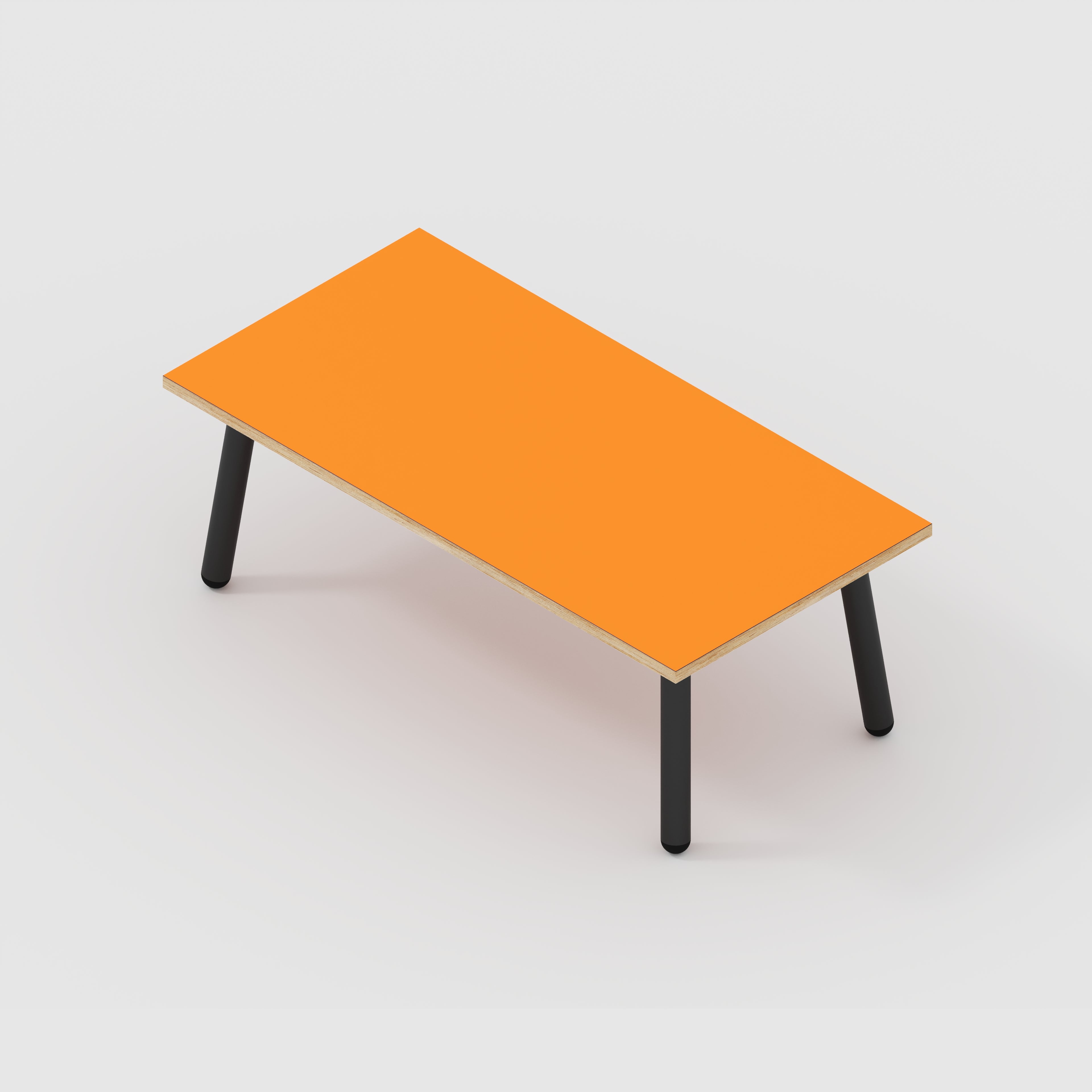 Plywood Coffee Table with Black Round Single Pin Legs - Formica Levante Orange - 1200(w) x 600(d) x 425(h)