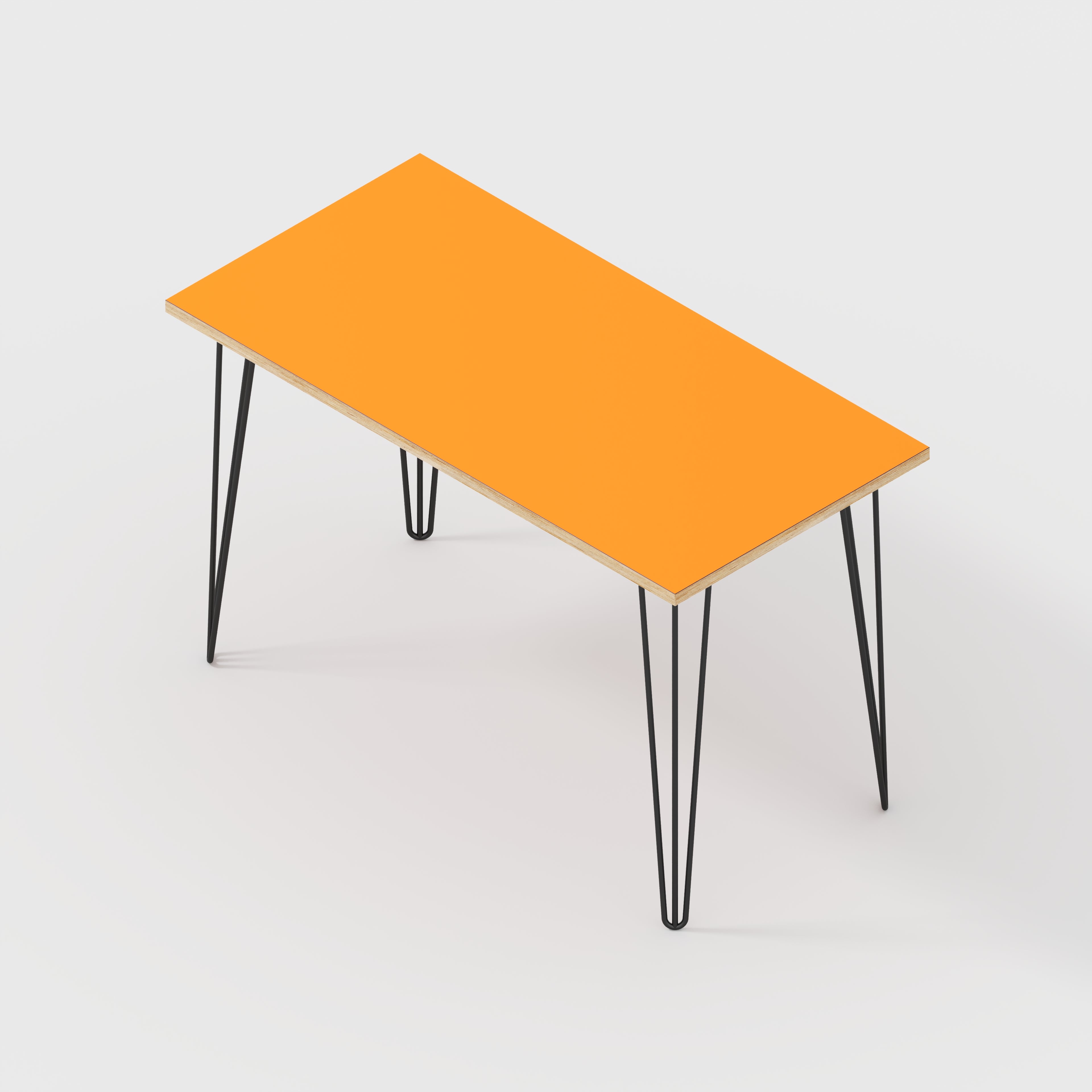 Plywood Desk with Black Hairpin Legs - Formica Levante Orange - 1200(w) x 600(d) x 735(h)
