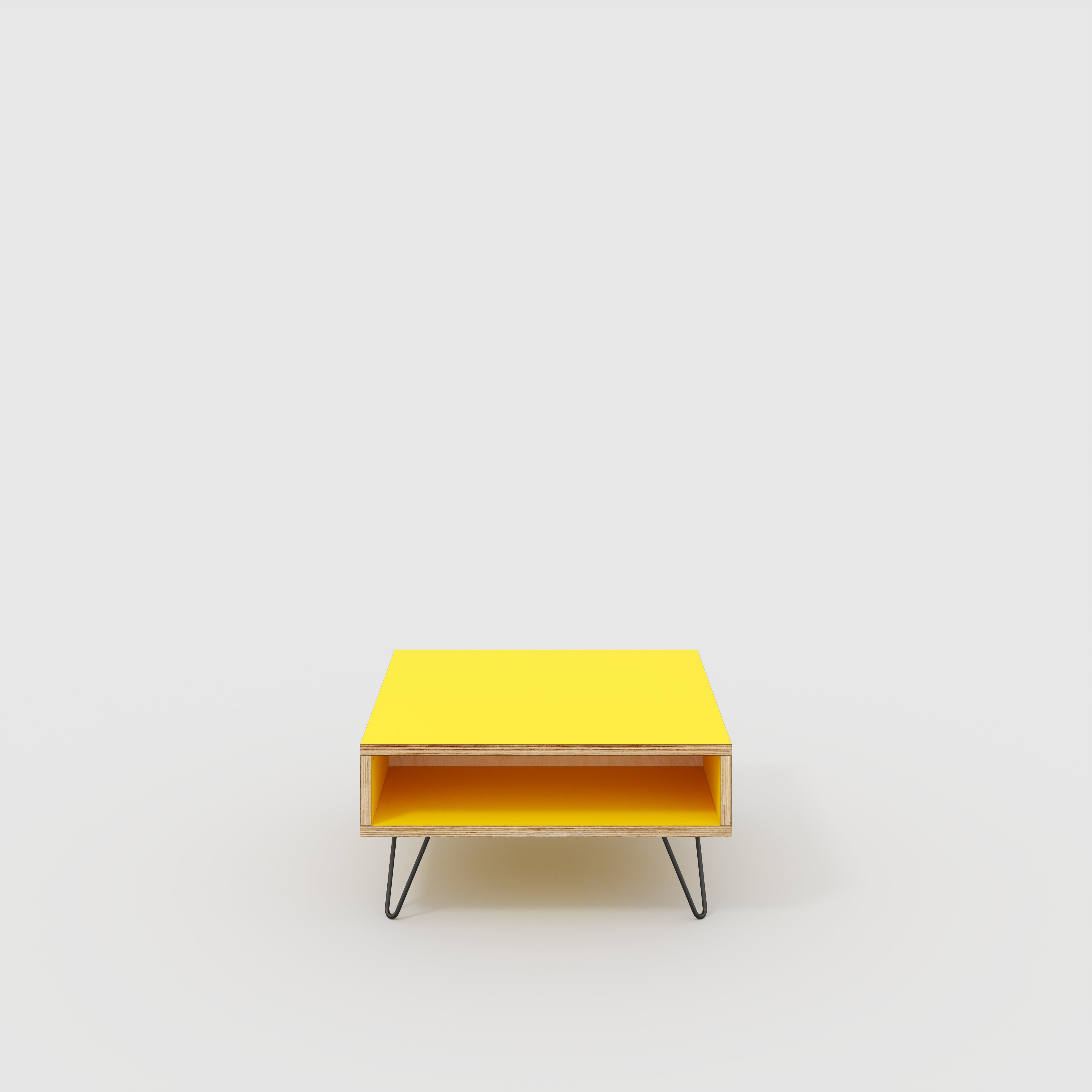 Plywood Bar Stool with Black Hairpin Base - Formica Chrome Yellow