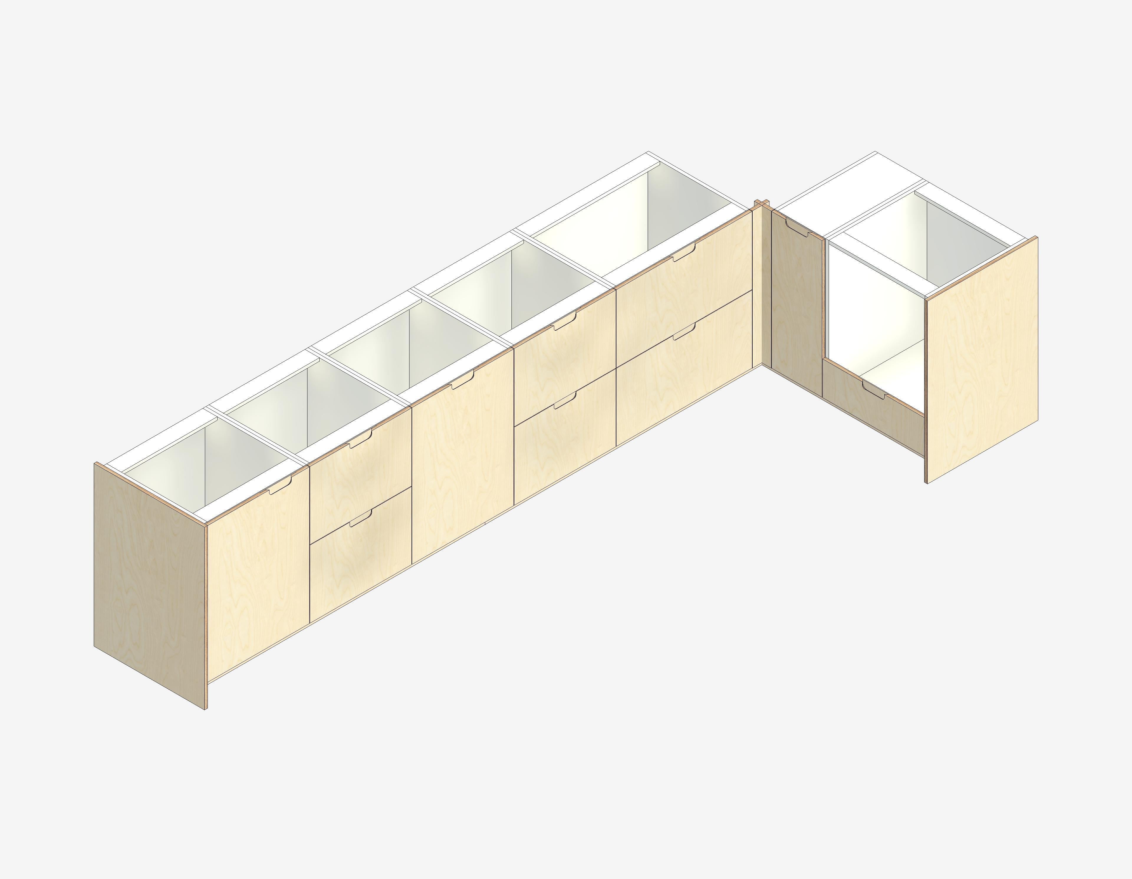 What led you to choose plywood cabinetry fronts for the lower units, and how did you discover Made in Ply?