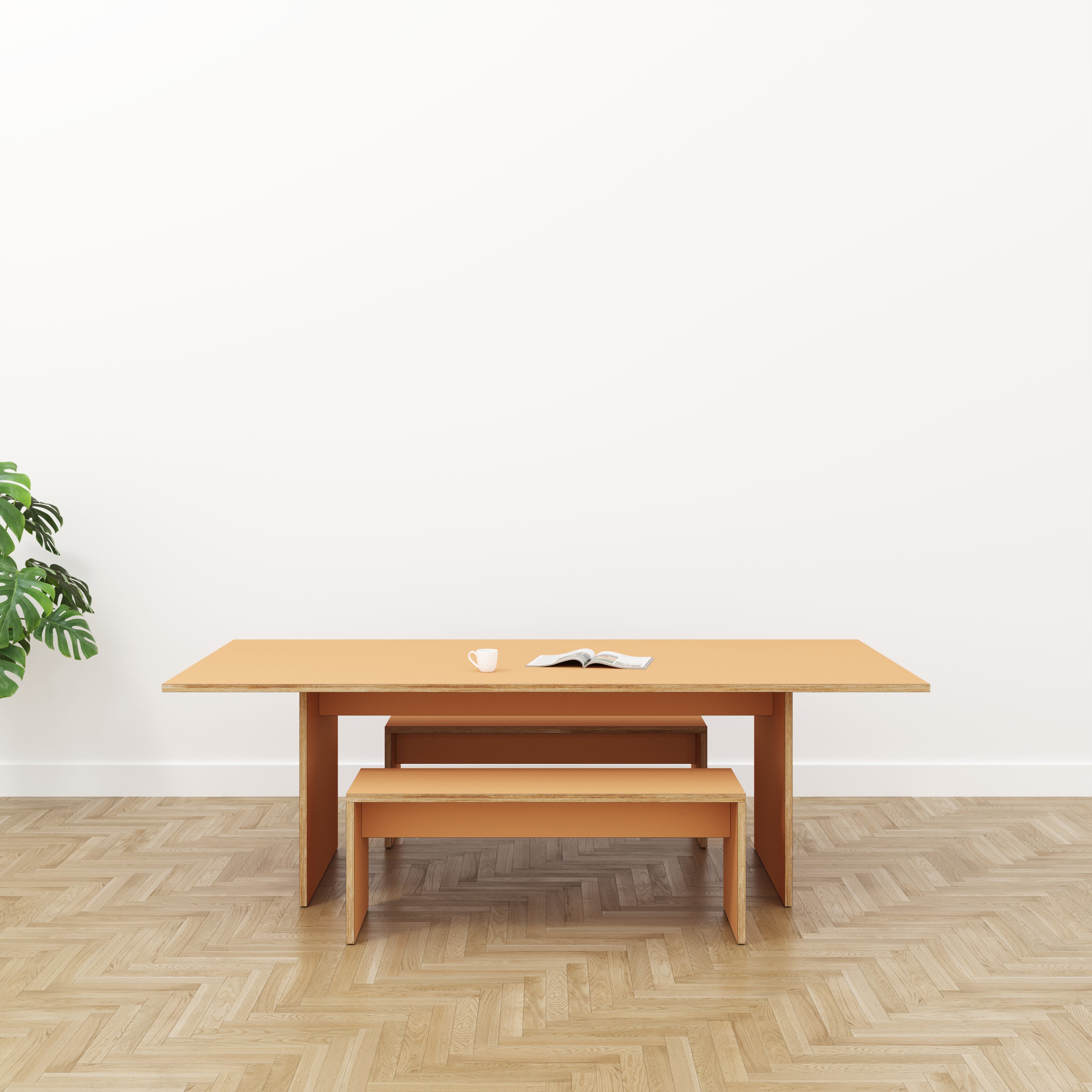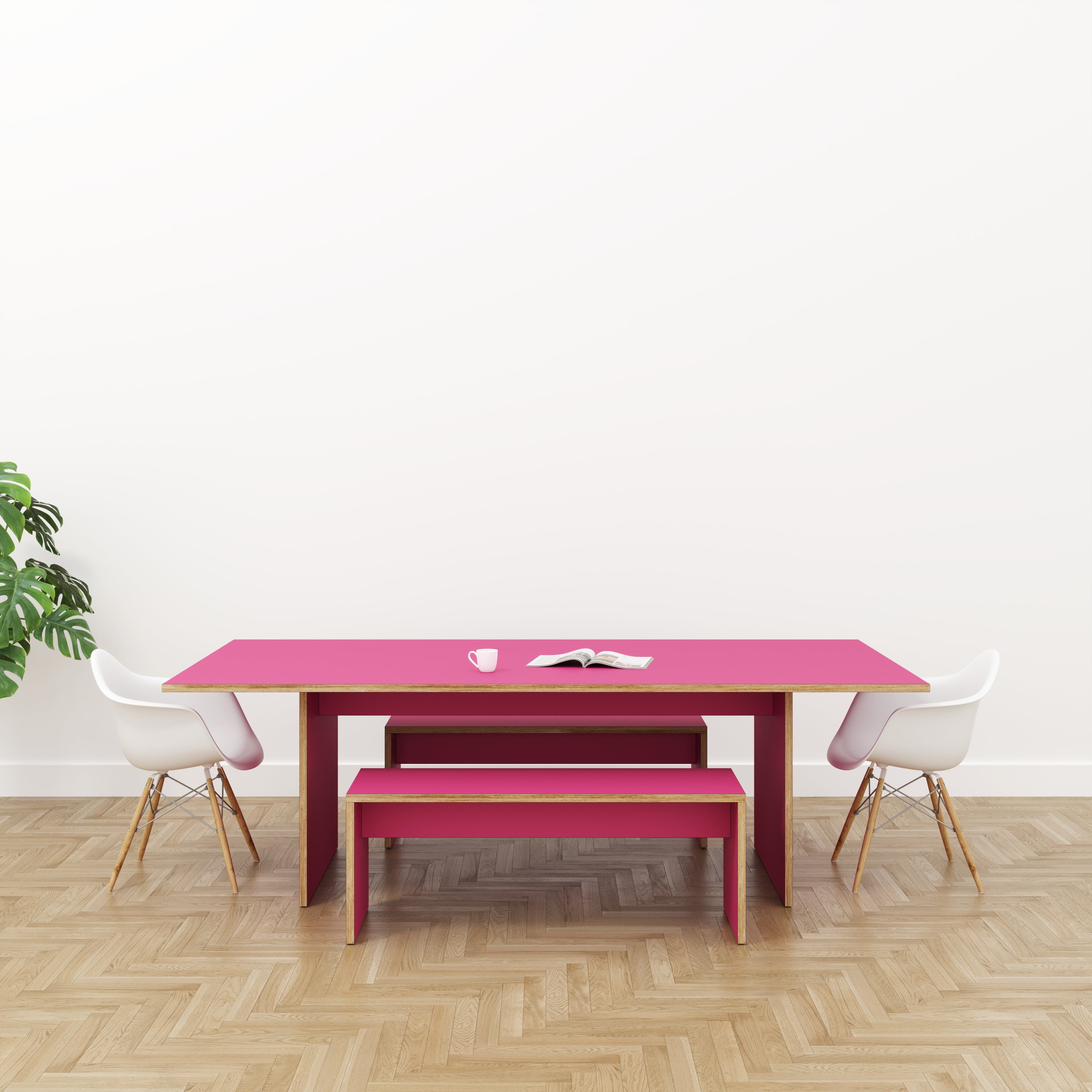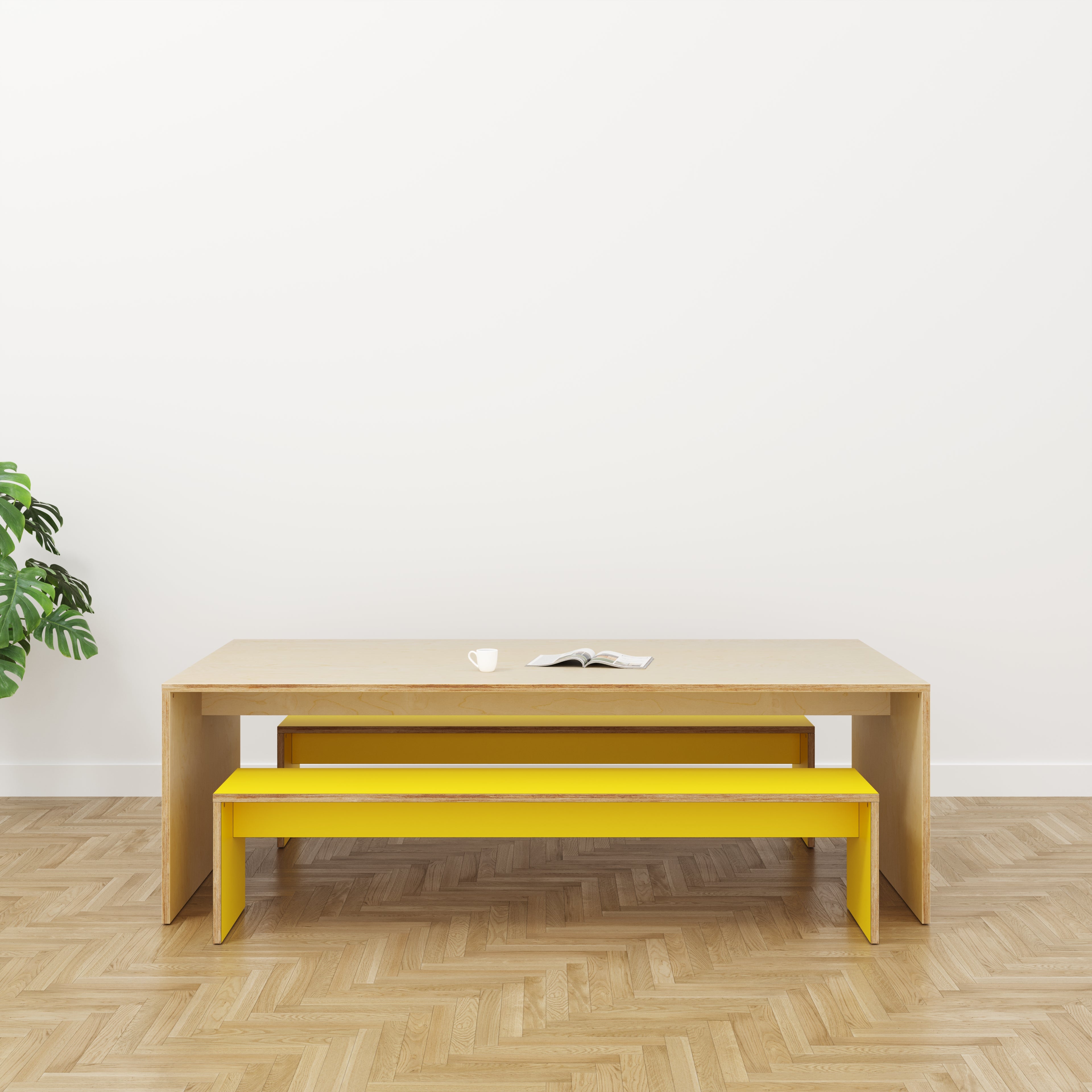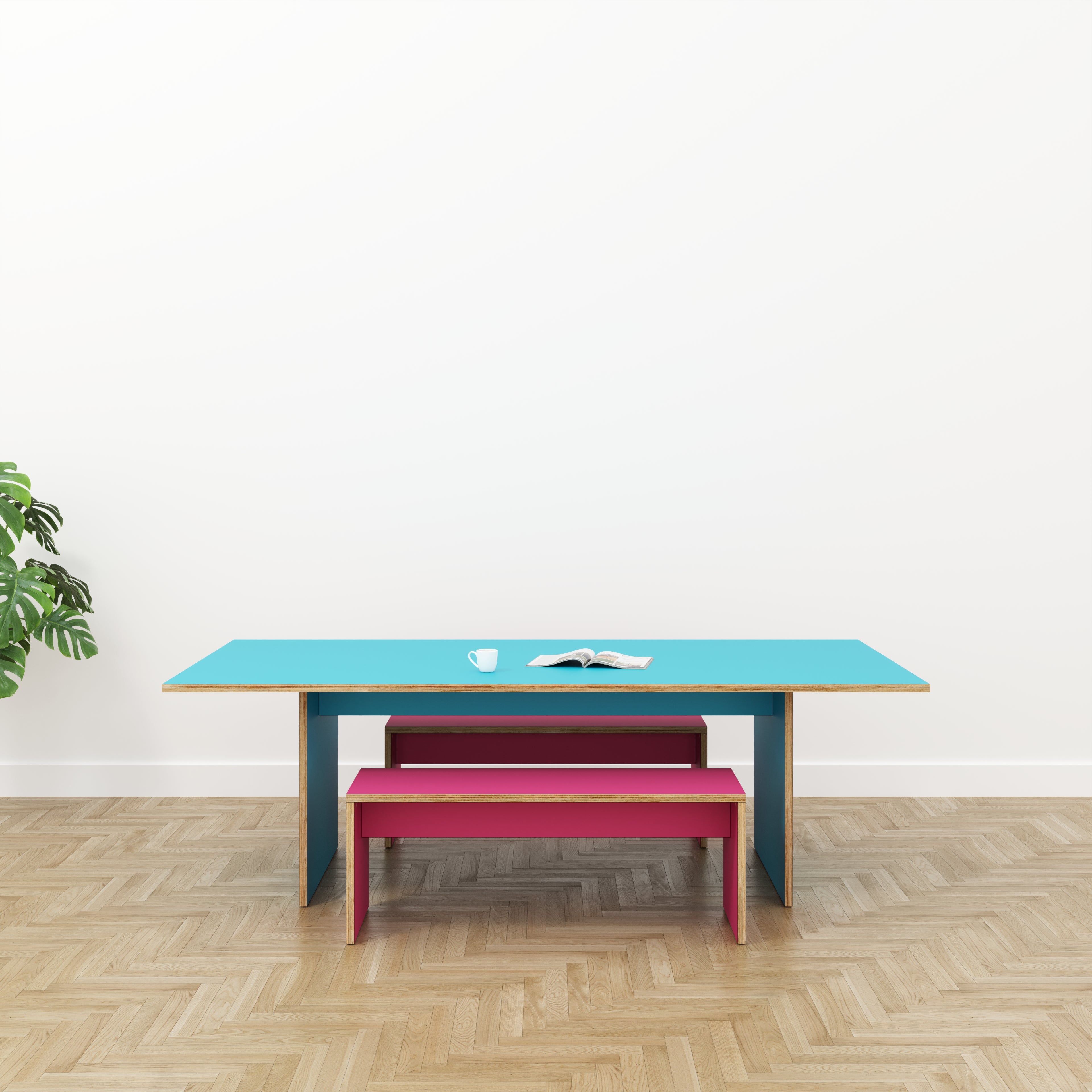 A classic table design with legs, the plywood frame offers a wonderful contrast against a colour top. Pair with a matching or contrasting plywood bench.