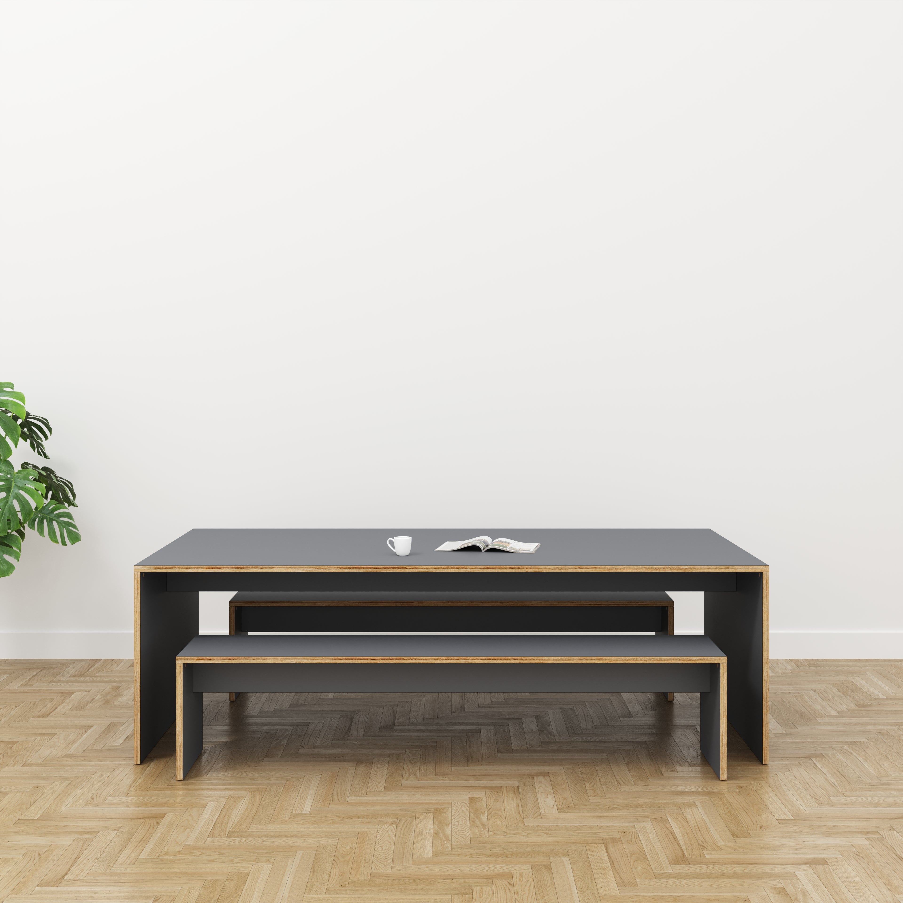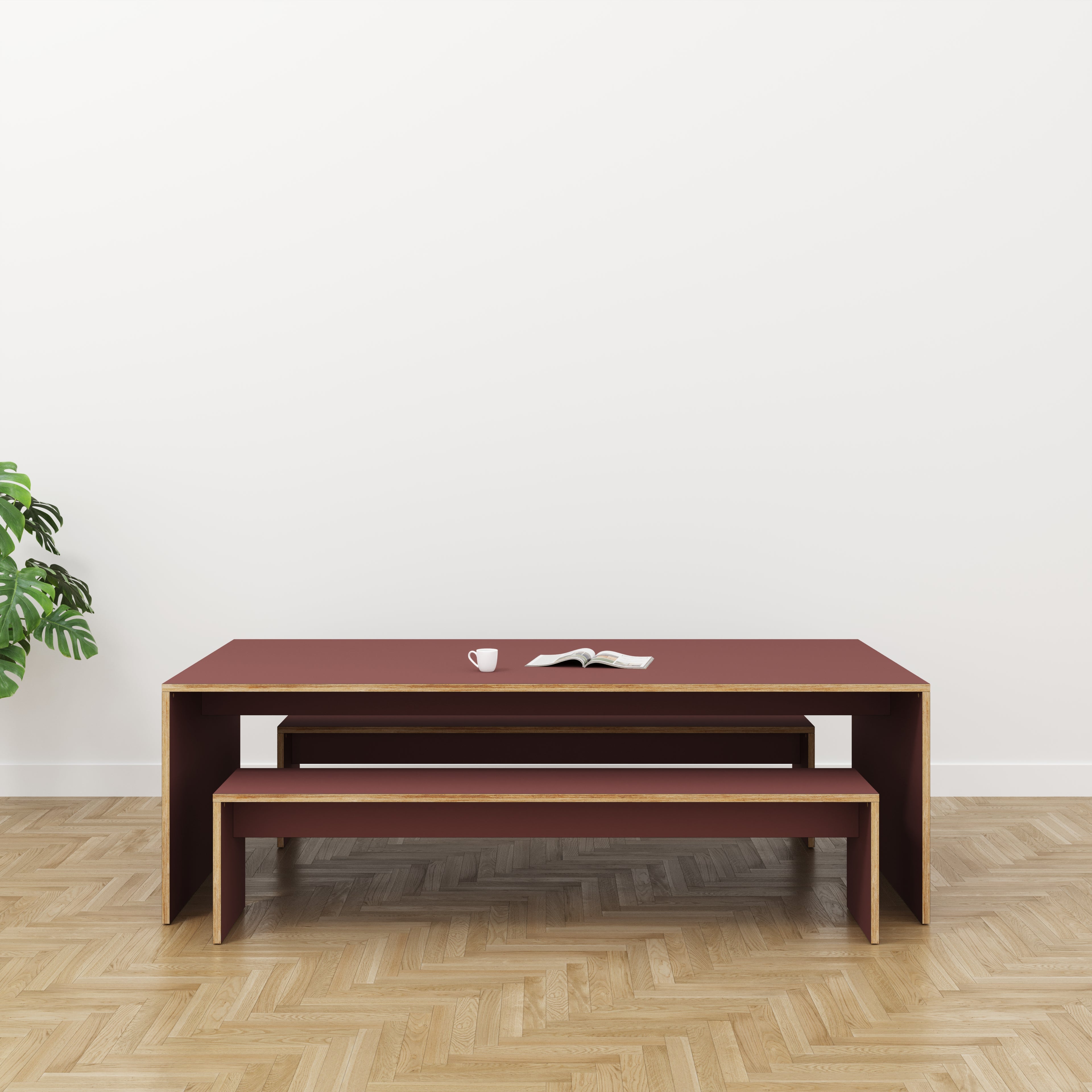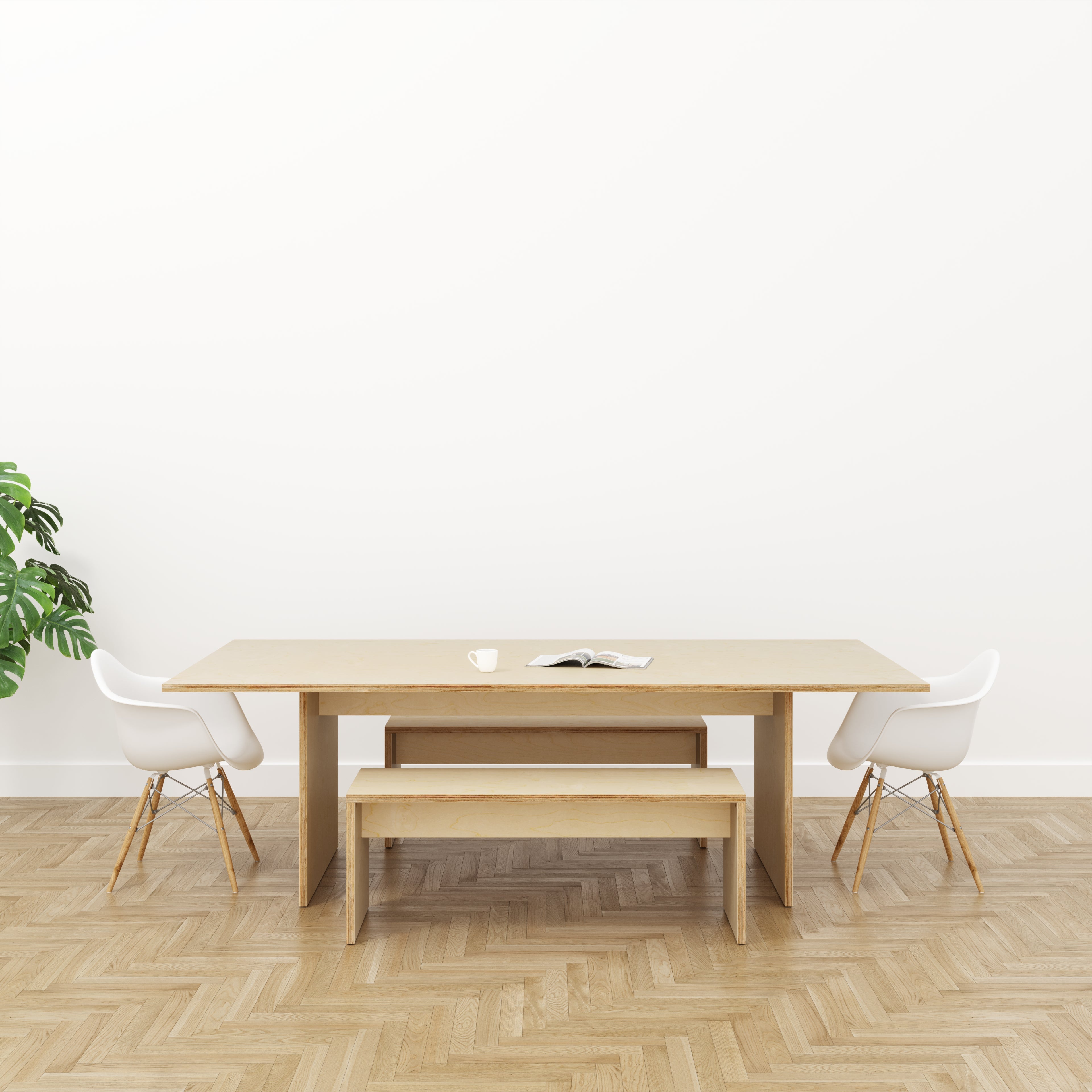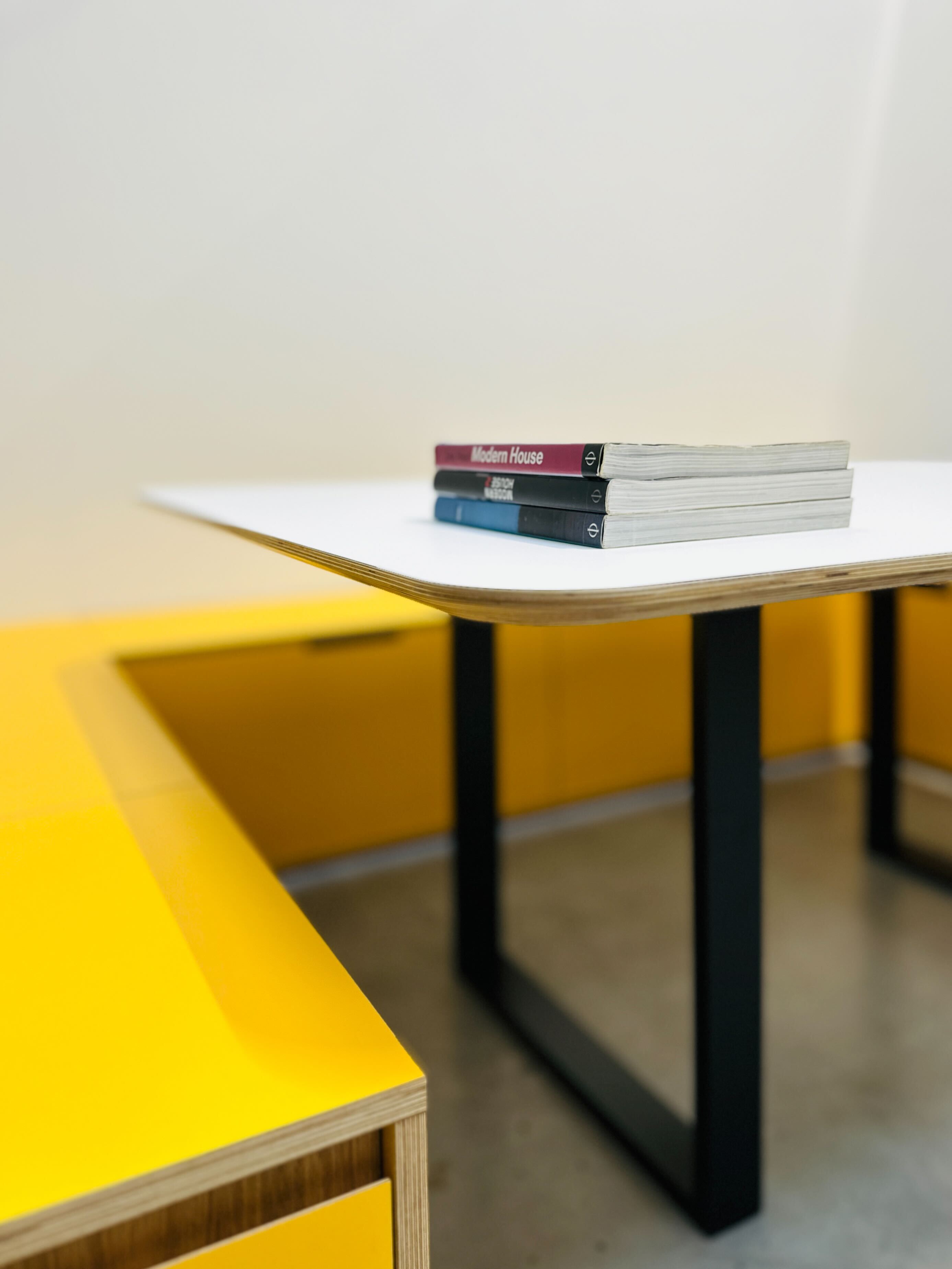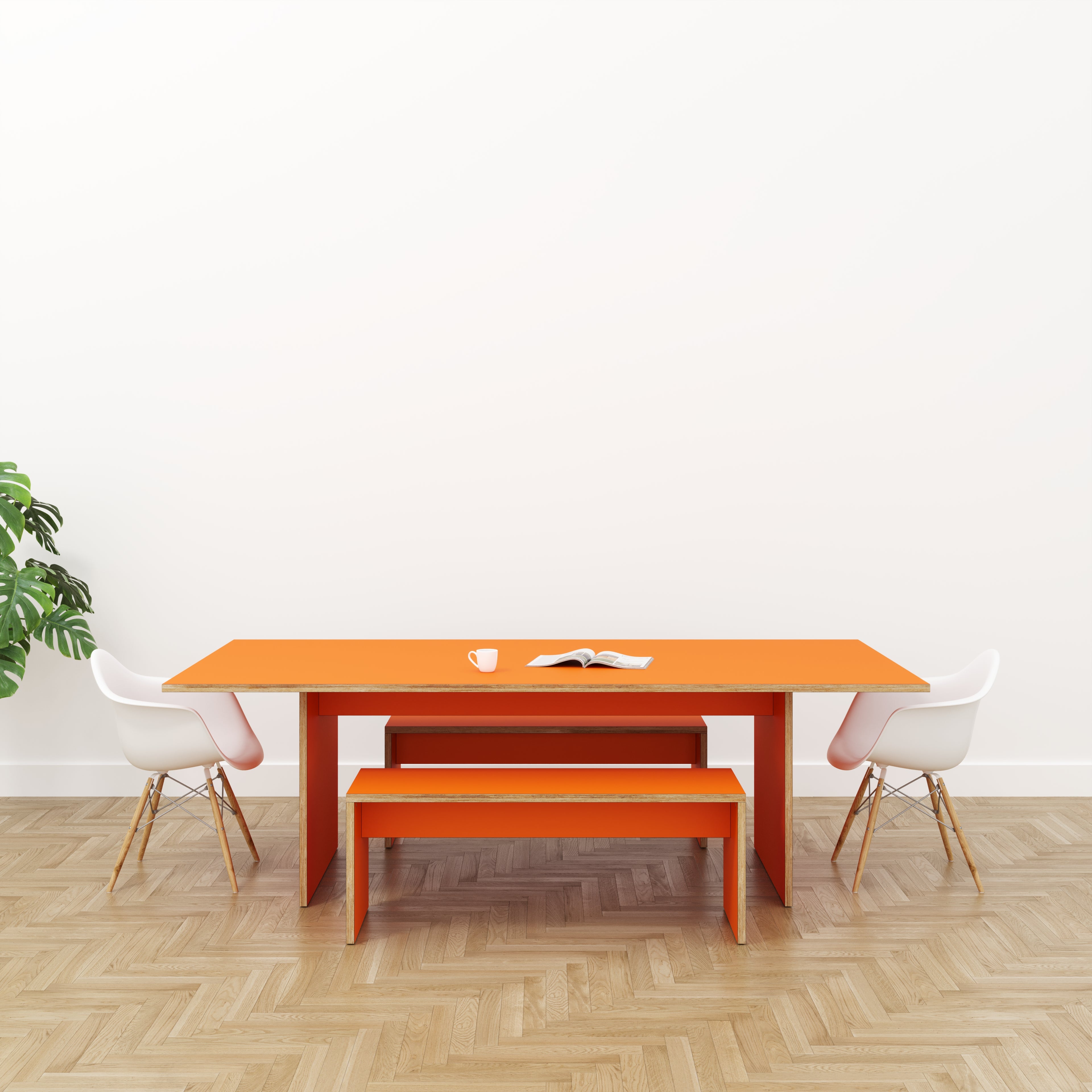 A classic table design with legs, the plywood frame offers a wonderful contrast against a colour top. Pair with a matching or contrasting plywood bench.