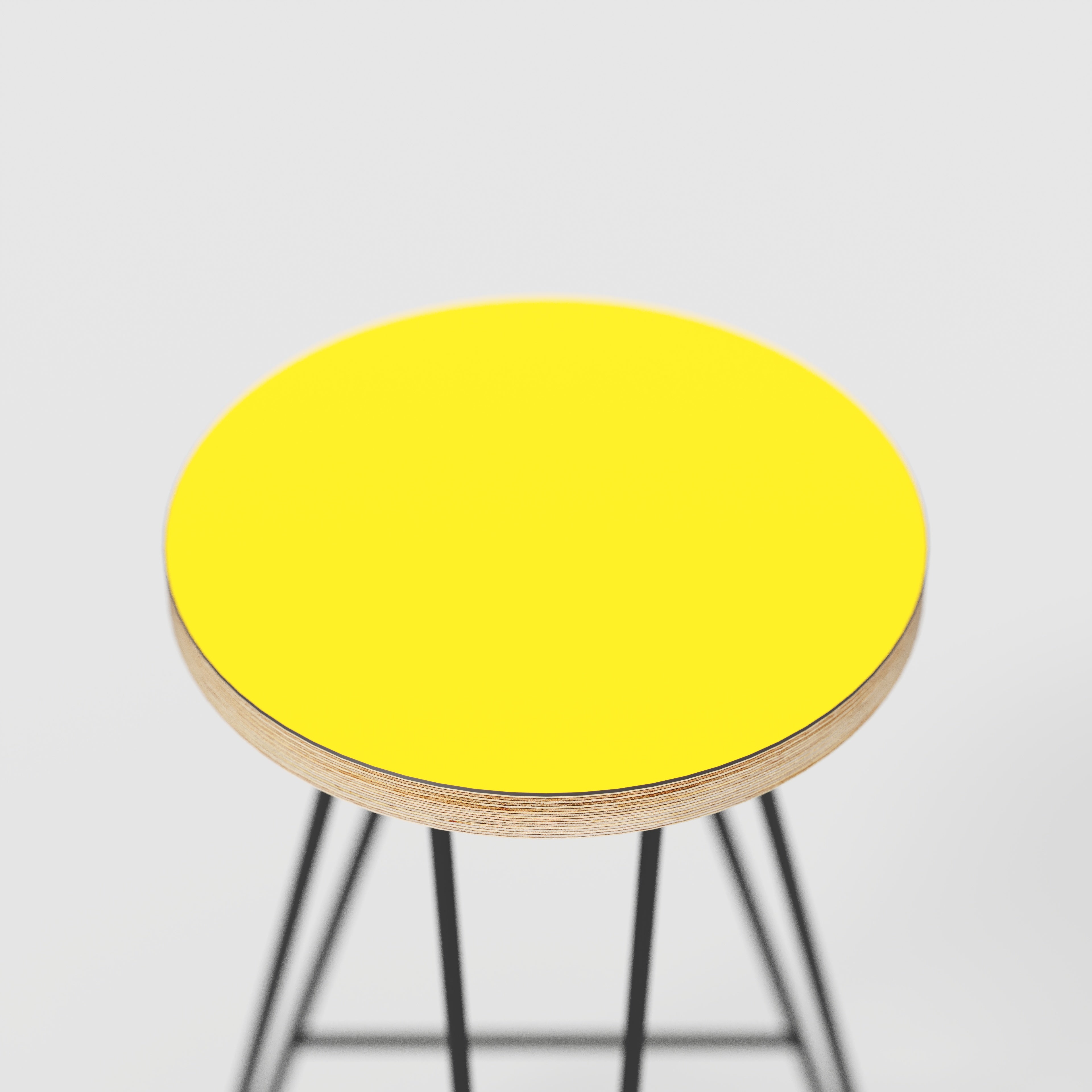 Plywood Bar Stool with Black Hairpin Base - Formica Chrome Yellow