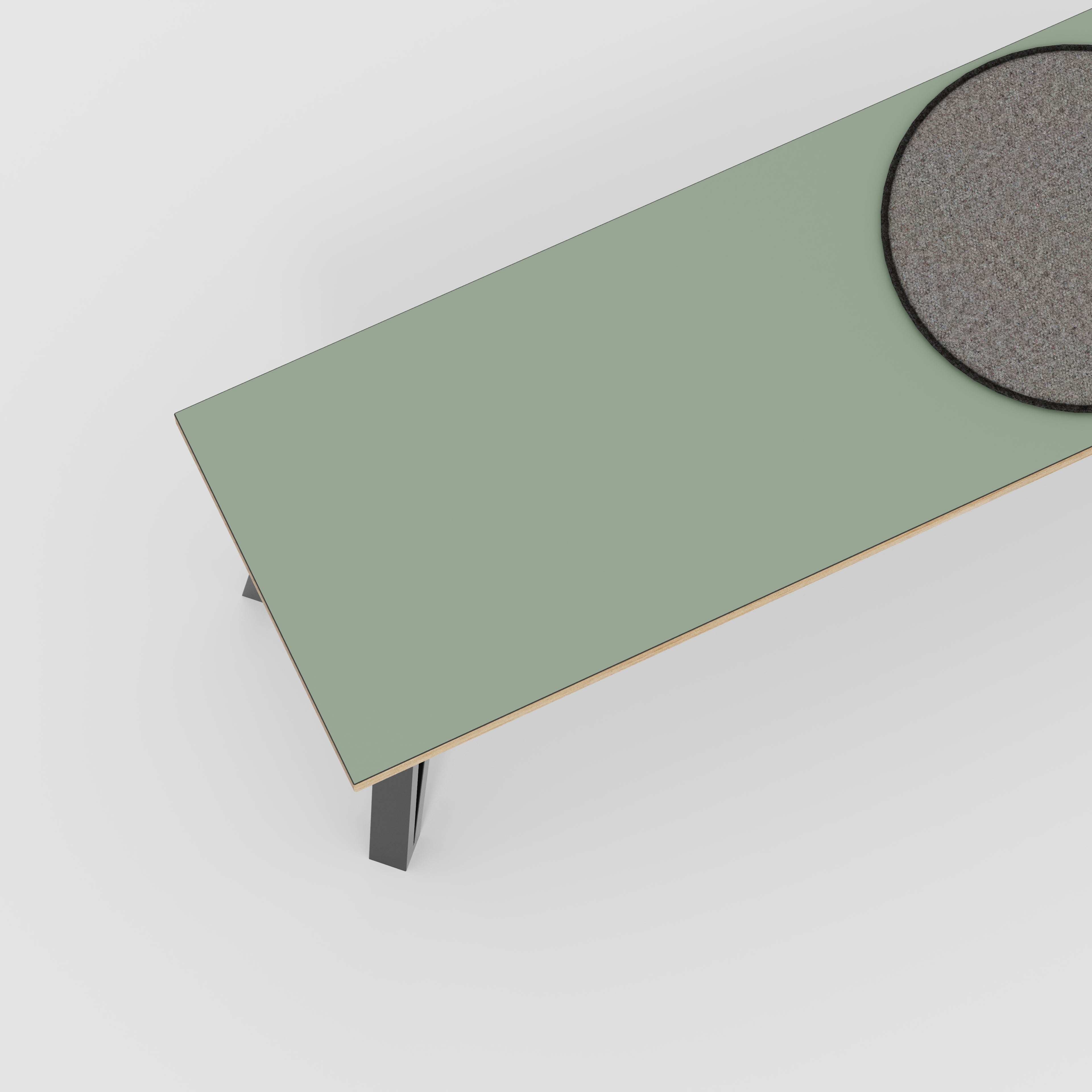 Plywood Bench Seat with Black Box Hairpin Legs - Formica Green Slate - 1200(w) x 400(d) x 450(h)