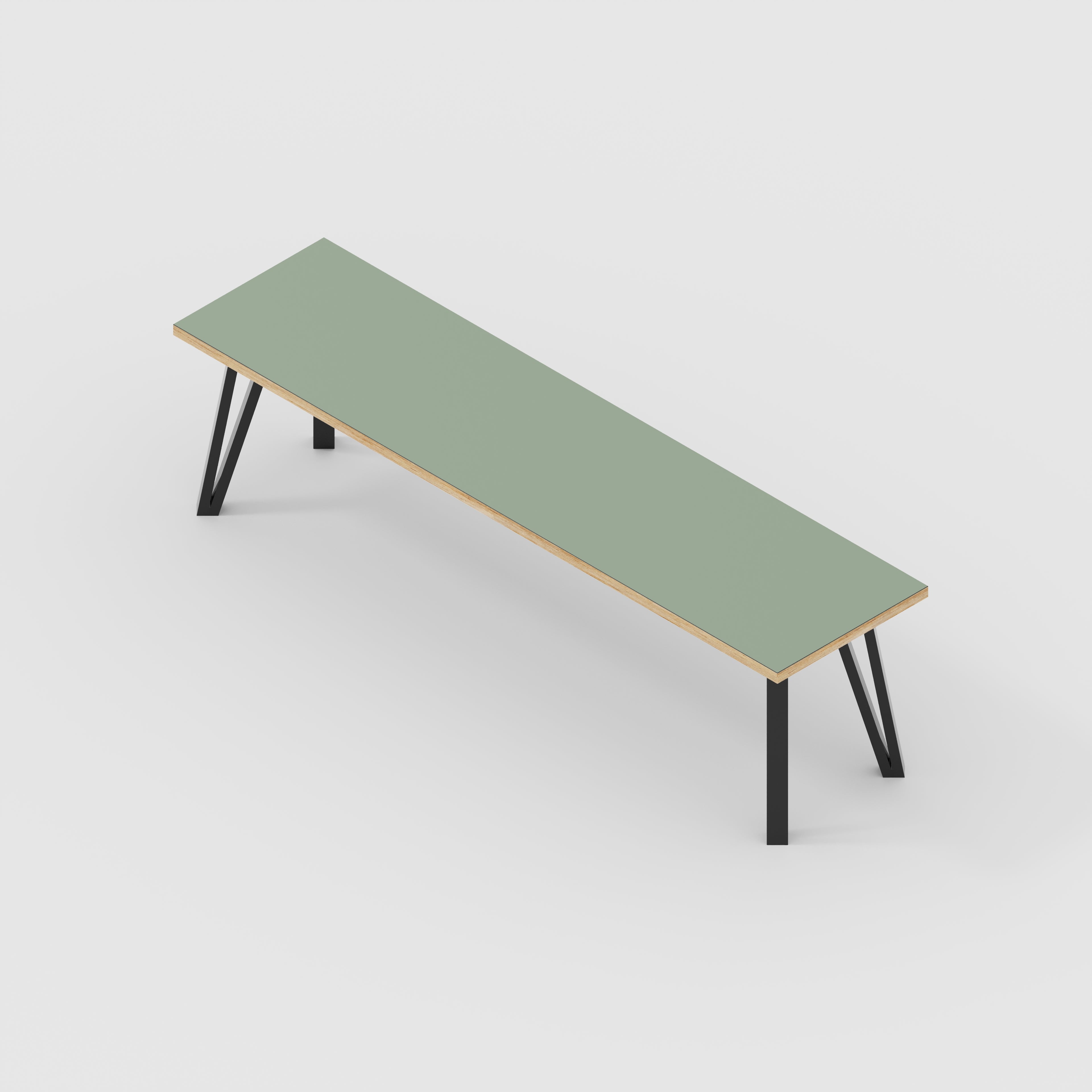 Plywood Bench Seat with Black Box Hairpin Legs - Formica Green Slate - 1600(w) x 400(d) x 450(h)