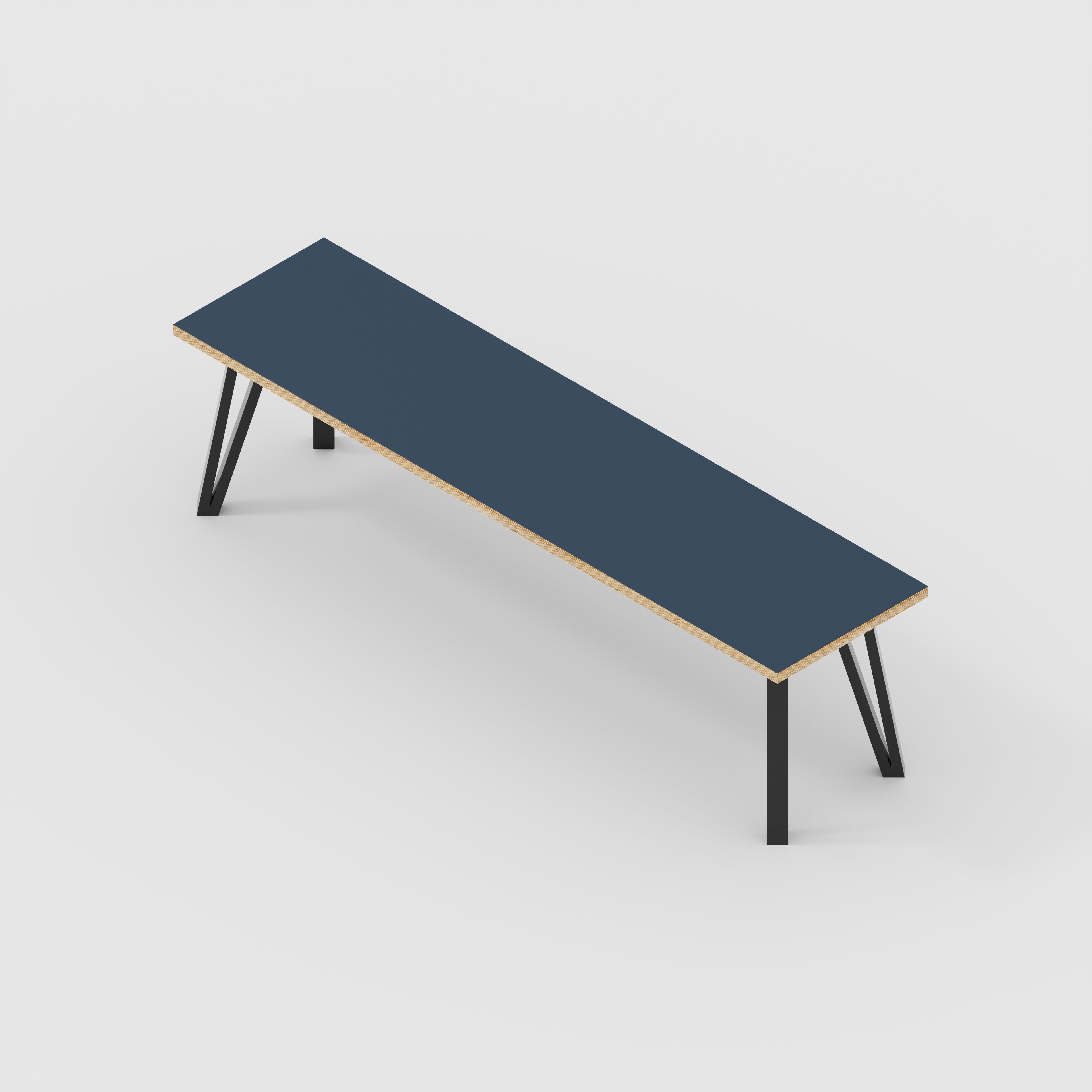 Plywood Bench Seat with Black Box Hairpin Legs - Formica Night Sea Blue - 1600(w) x 400(d) x 450(h)