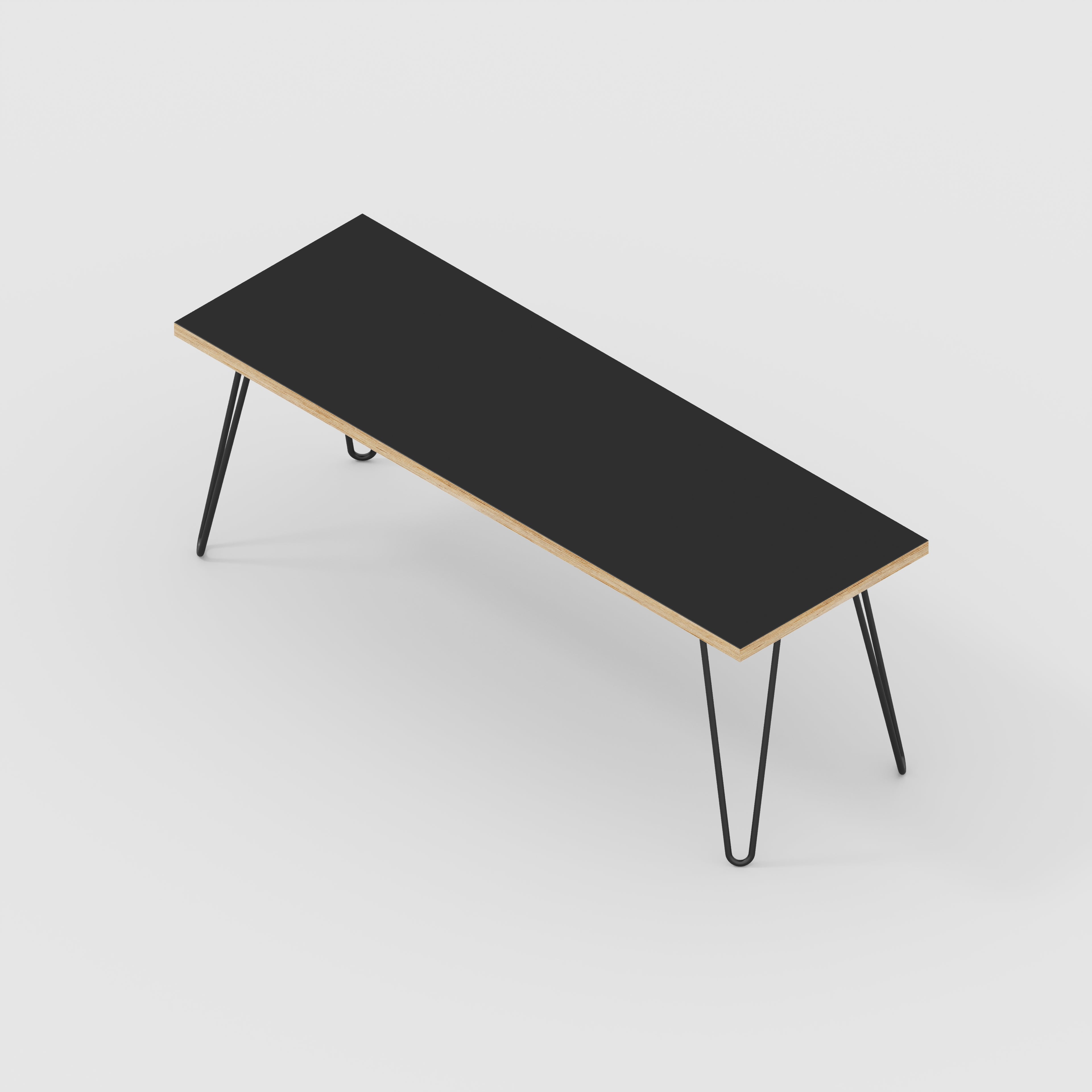Plywood Bench Seat with Black Hairpin Legs - Formica Diamond Black - 1200(w) x 400(d)