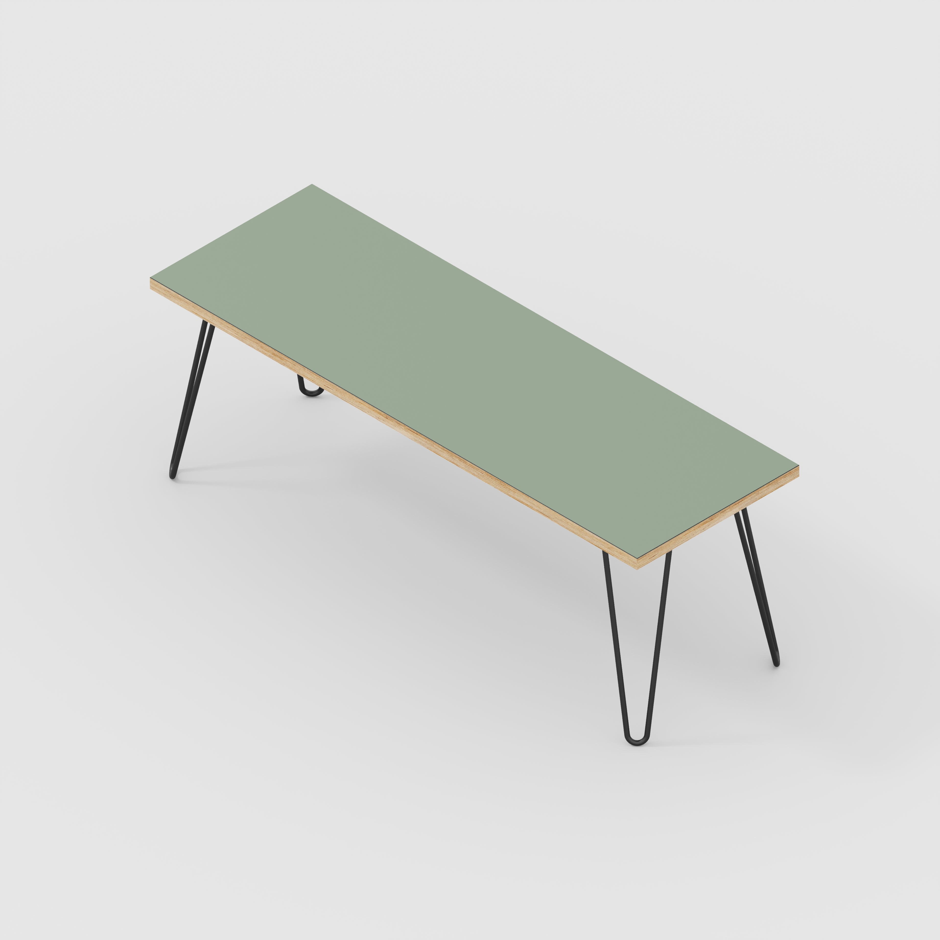 Plywood Bench Seat with Black Hairpin Legs - Formica Green Slate - 1200(w) x 400(d)