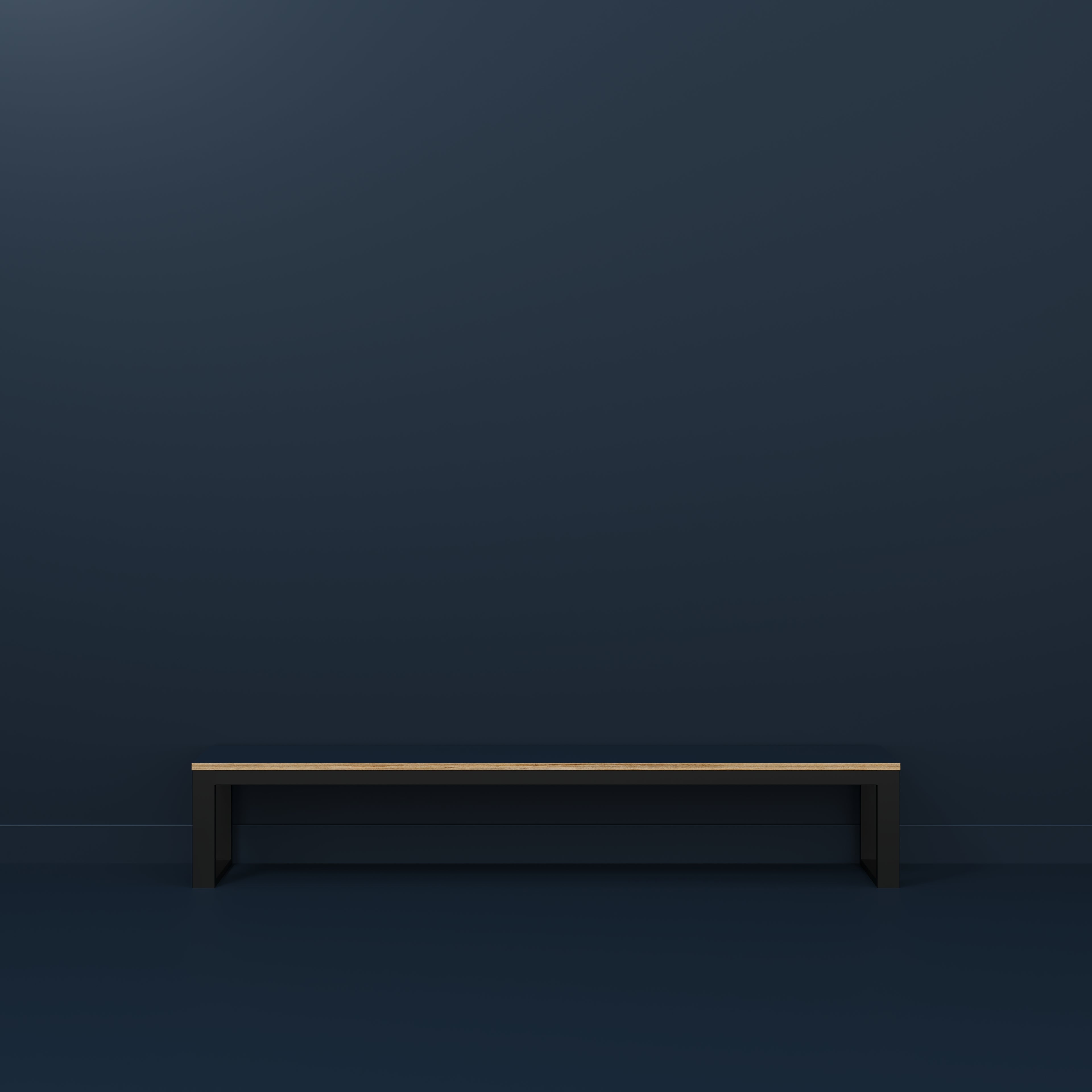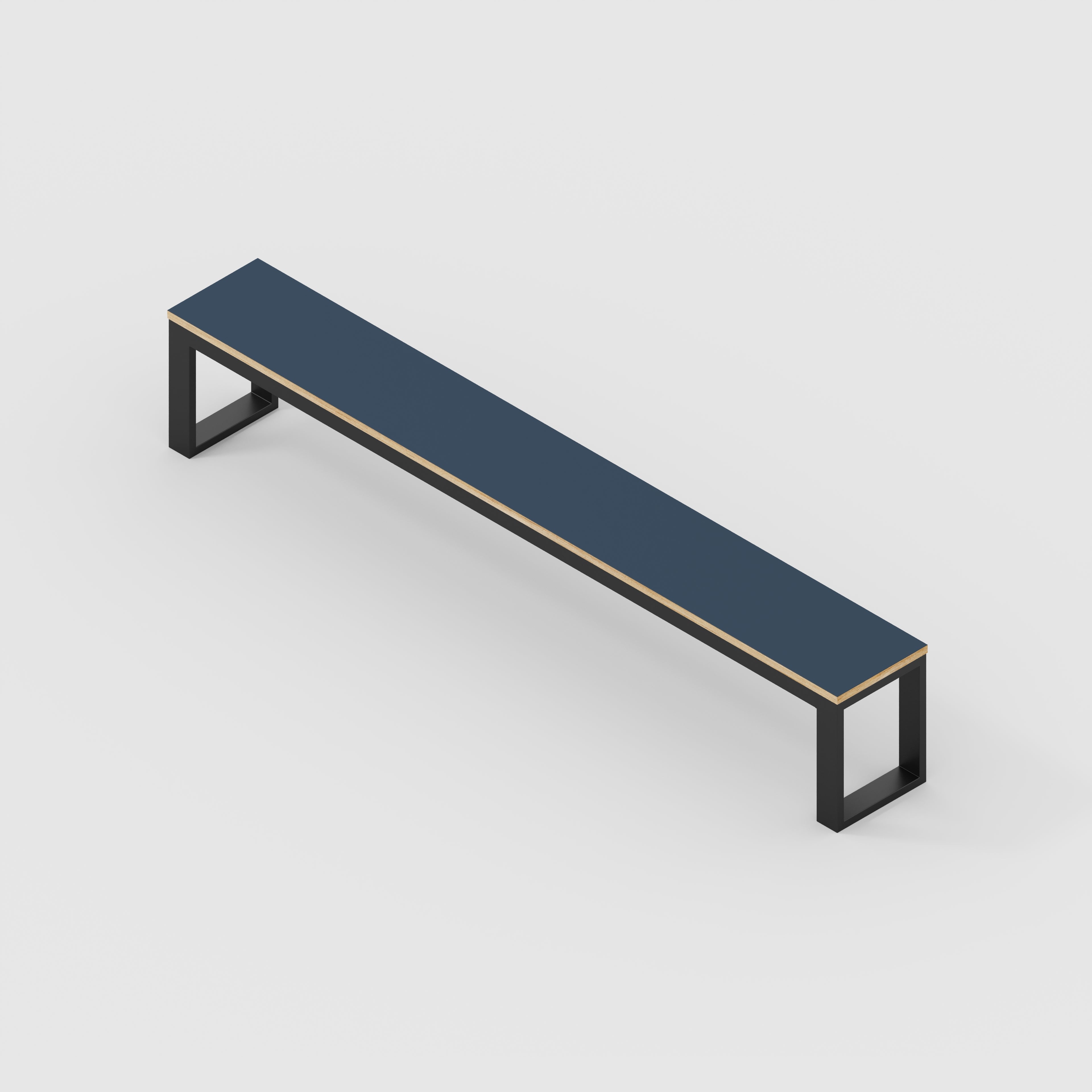 Plywood Bench Seat with Black Industrial Frame - Formica Night Sea Blue - 2400(w) x 325(d)