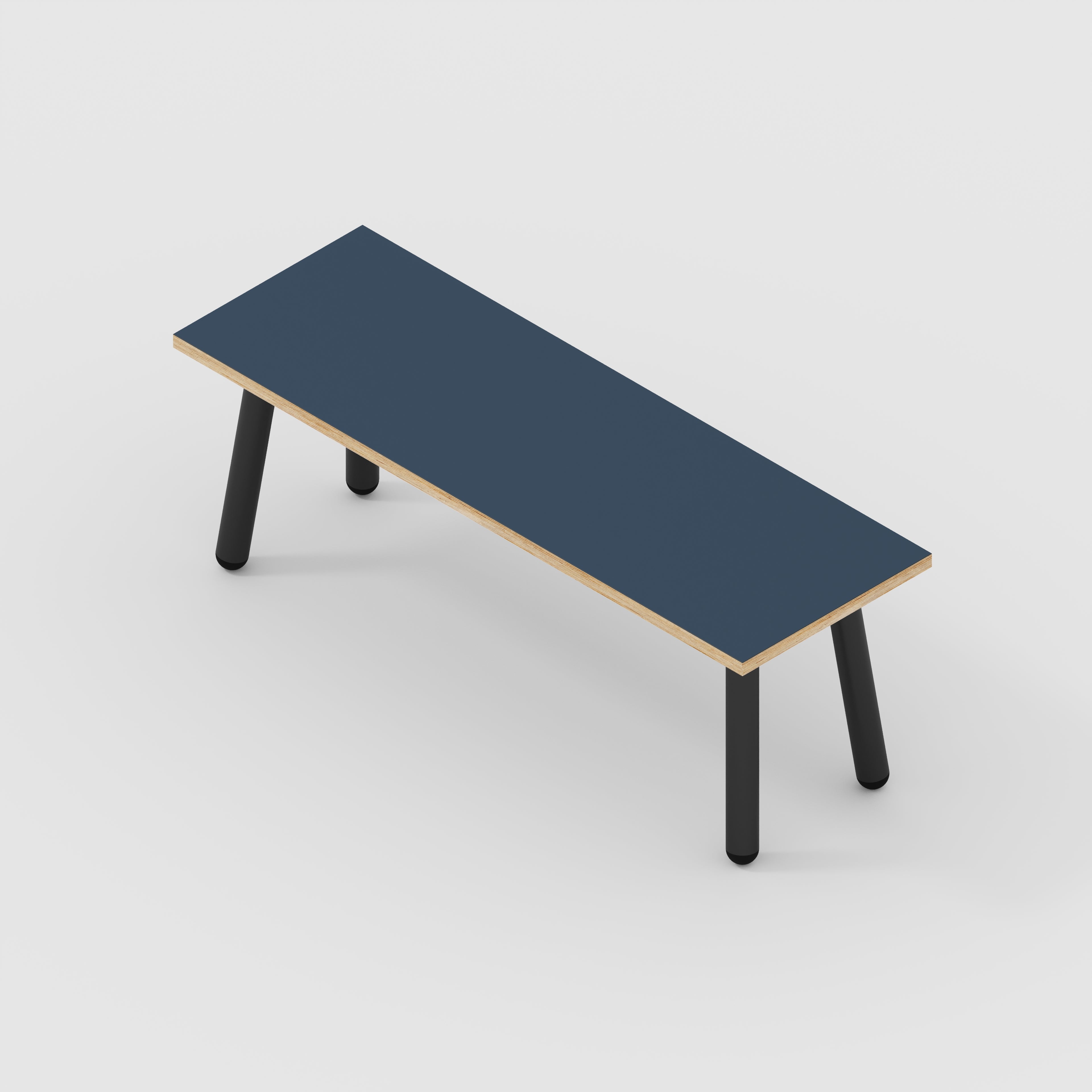 Plywood Bench Seat with Black Round Single Pin Legs - Formica Night Sea Blue - 1200(w) x 400(d)