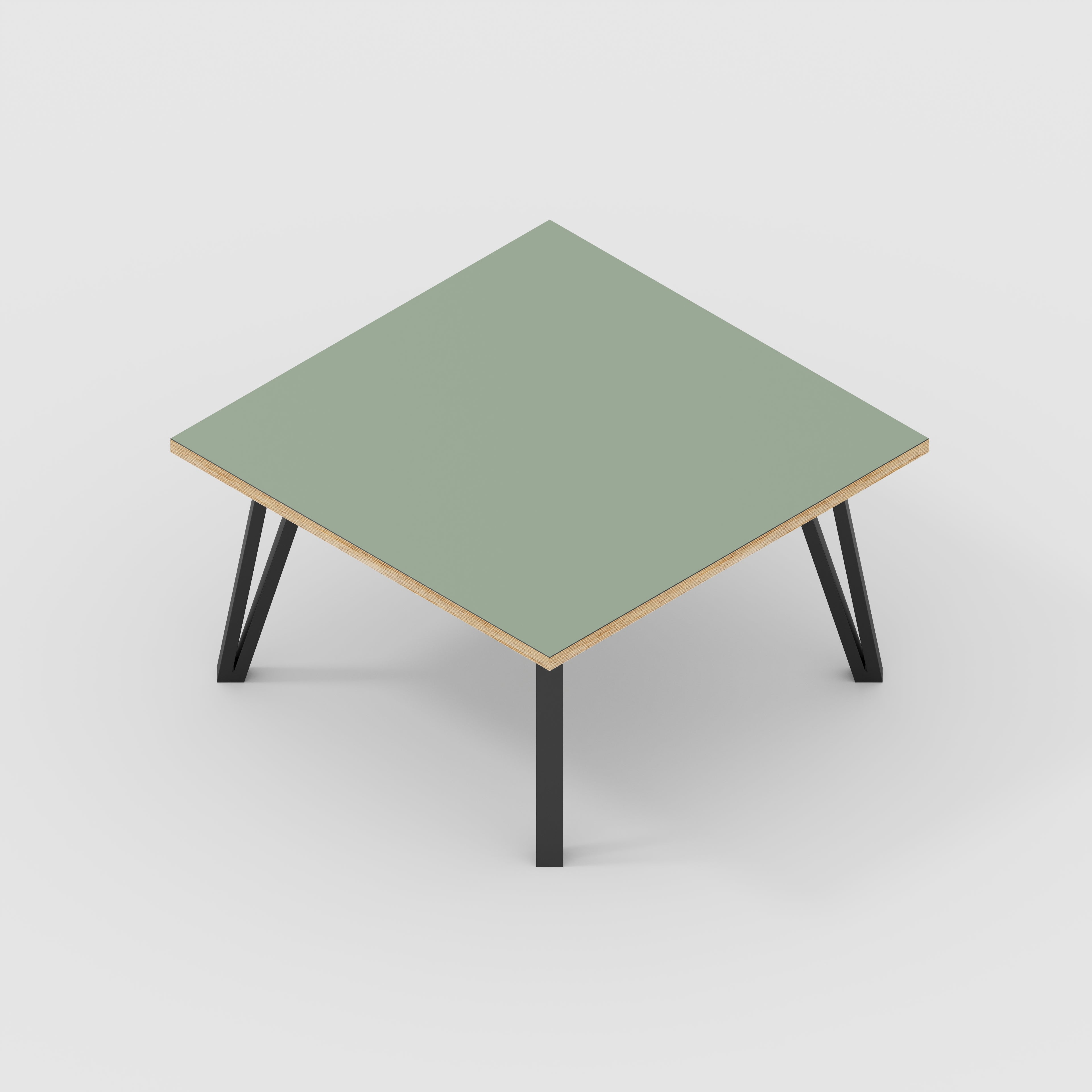 Plywood Coffee Table with Black Box Hairpin Legs - Formica Green Slate - 800(w) x 800(d) x 425(h)
