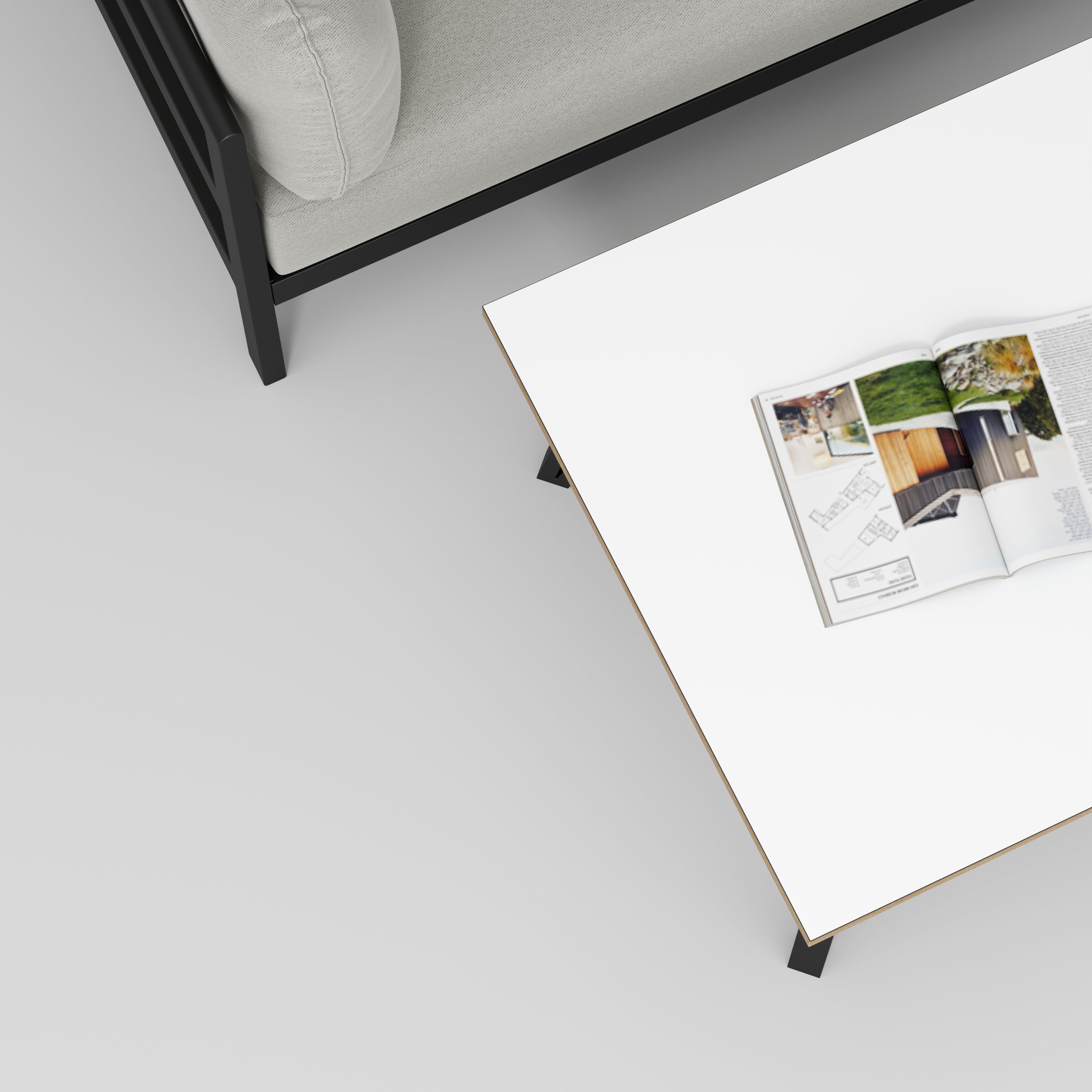Plywood Coffee Table with Black Box Hairpin Legs - Formica White - 800(w) x 800(d) x 425(h)