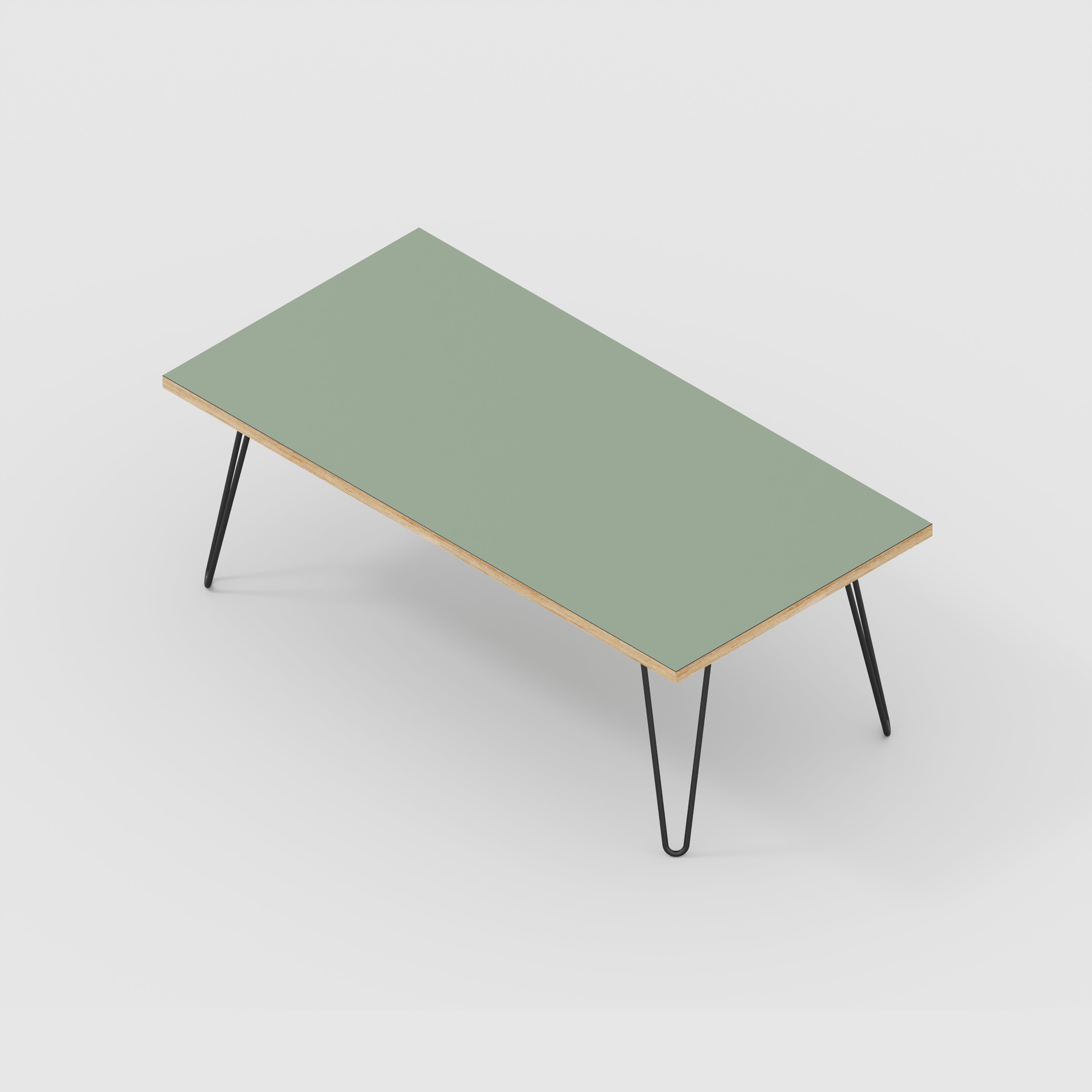 Plywood Coffee Table with Black Hairpin Legs - Formica Green Slate - 1200(w) x 600(d) x 425(h)