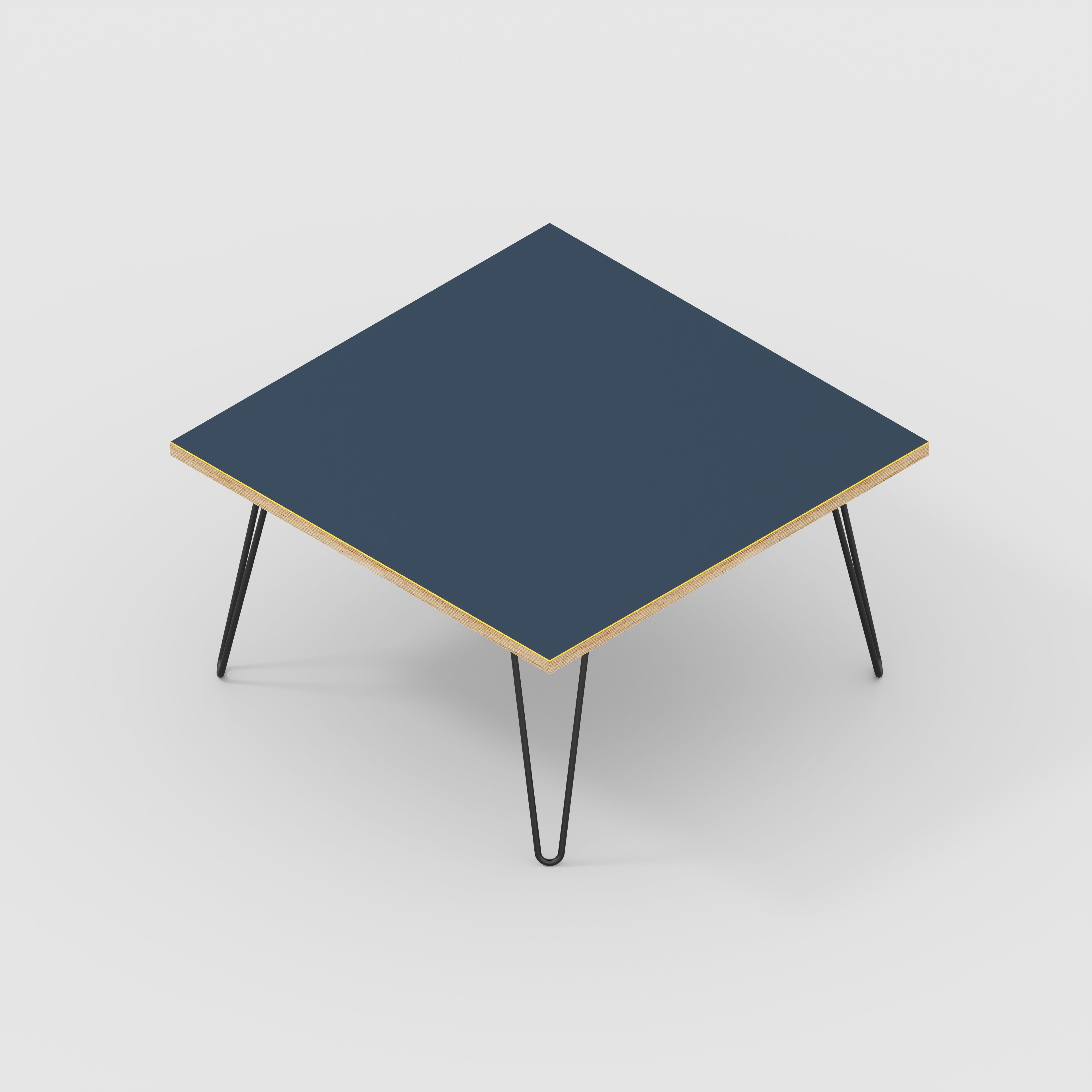 Plywood Coffee Table with Black Hairpin Legs - Formica Night Sea Blue - 800(w) x 800(d) x 425(h)