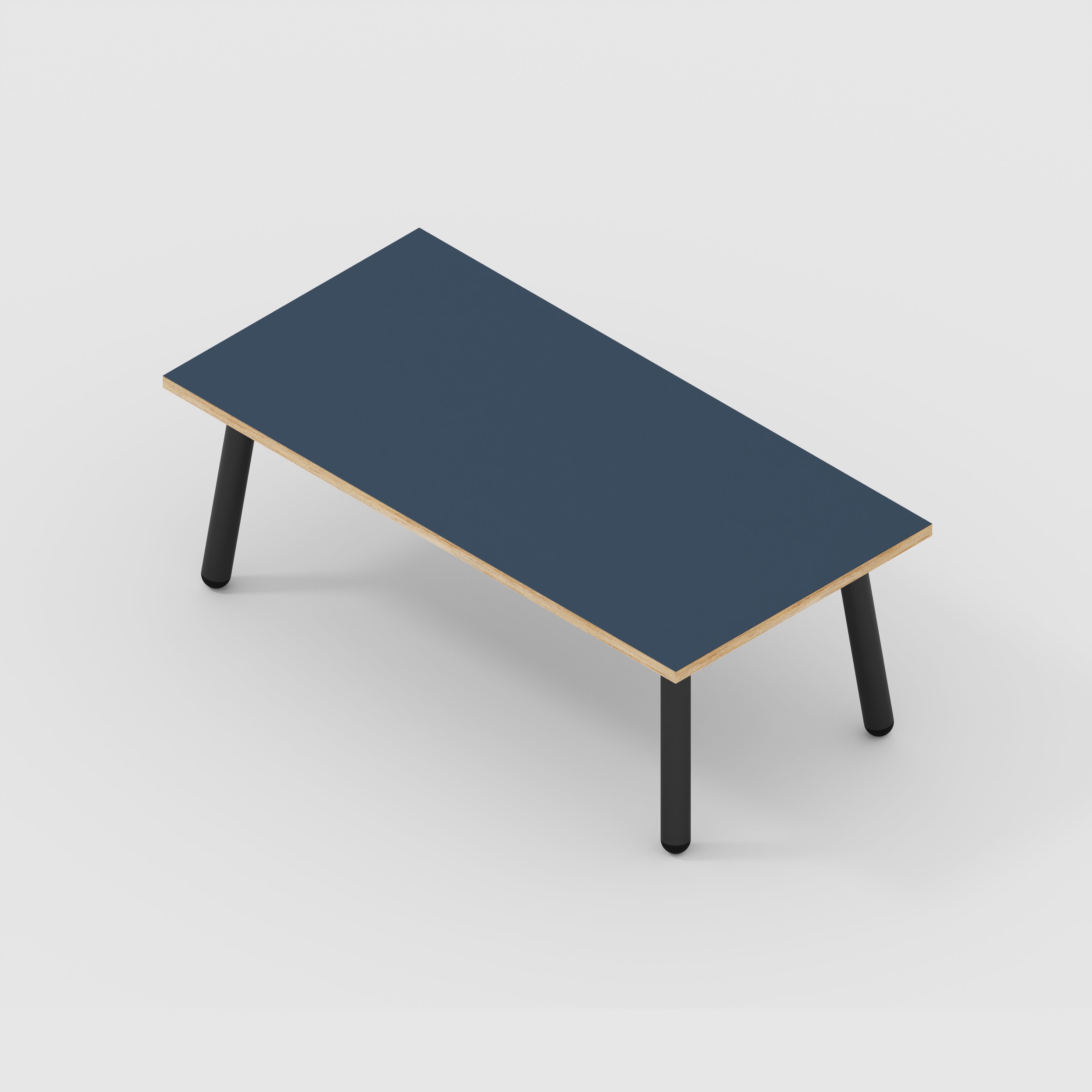 Plywood Coffee Table with Black Round Single Pin Legs - Formica Night Sea Blue - 1200(w) x 600(d) x 425(h)
