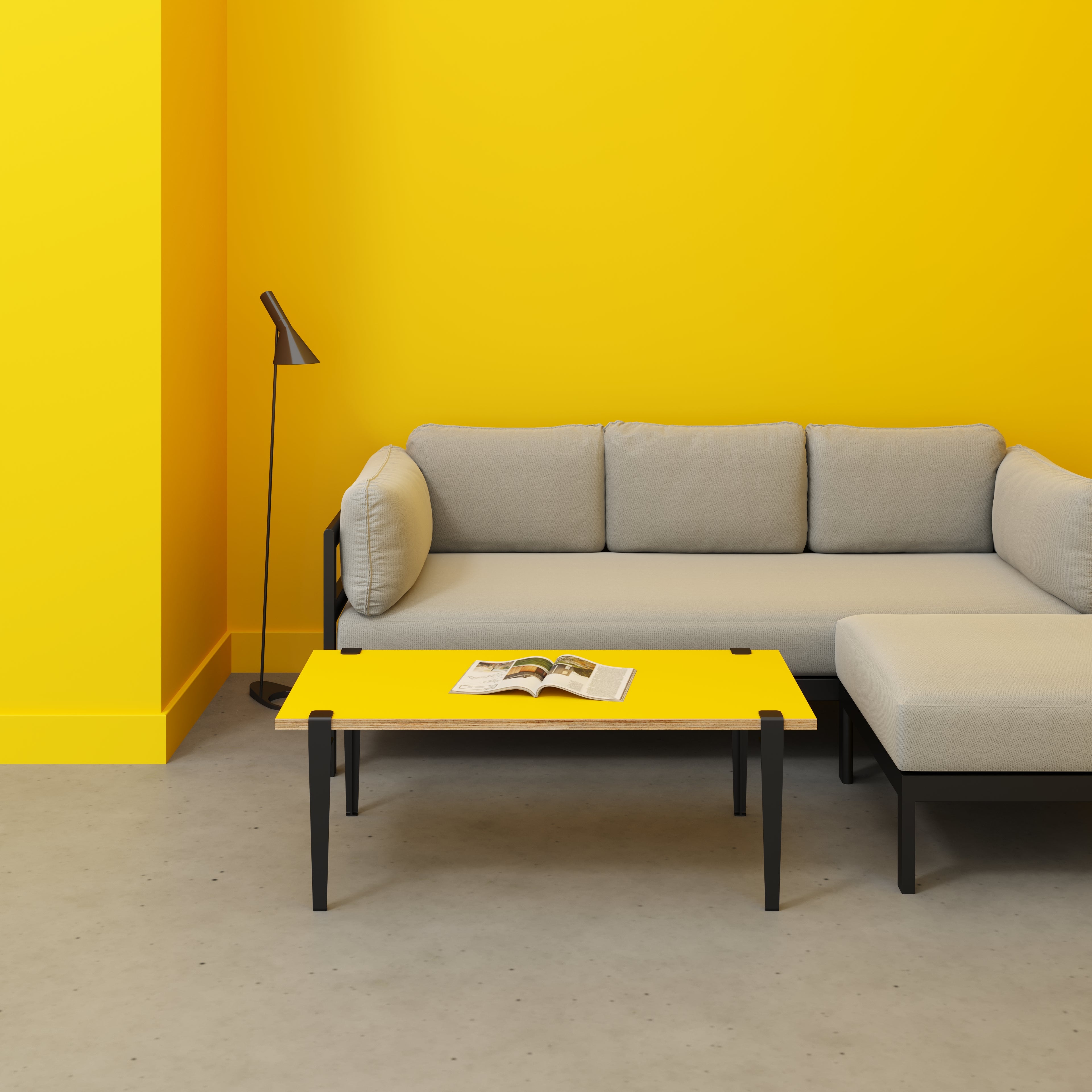 Plywood Coffee Table with Black Tiptoe Legs - Formica Chrome Yellow - 1200(w) x 600(d) x 430(h)