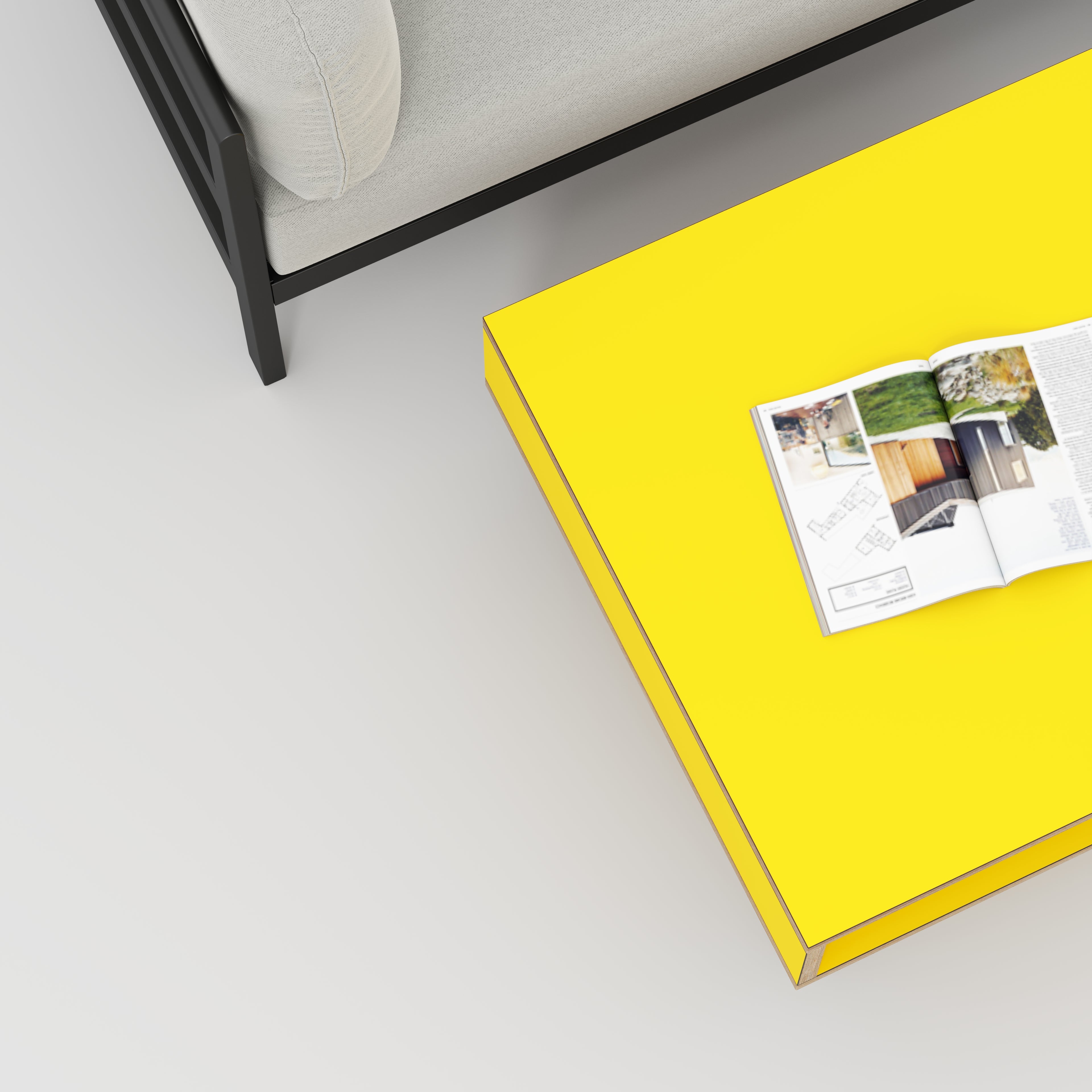 Plywood Coffee Table with Box Storage and Black Hairpin Legs - Formica Chrome Yellow - 800(w) x 800(d) x 400(h)