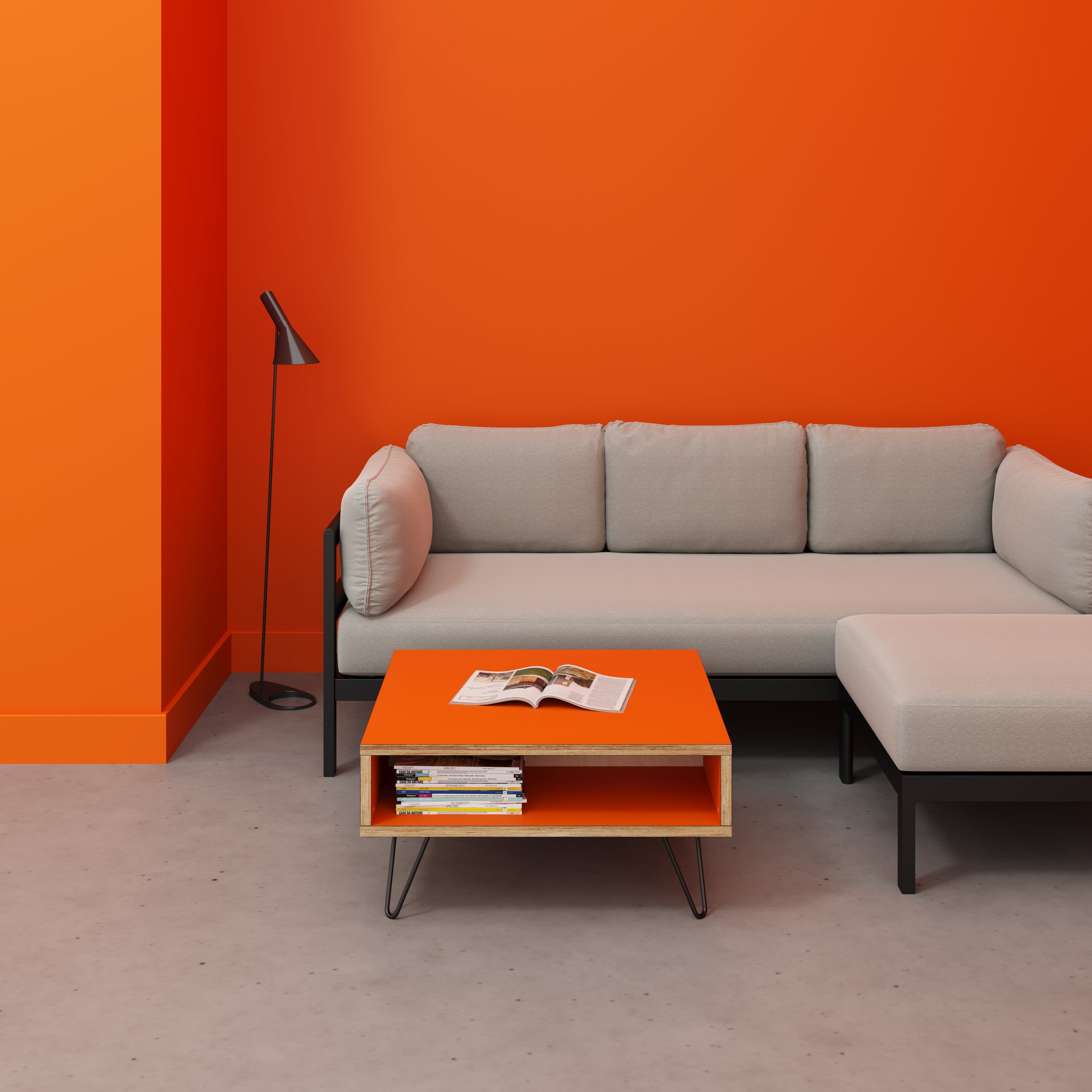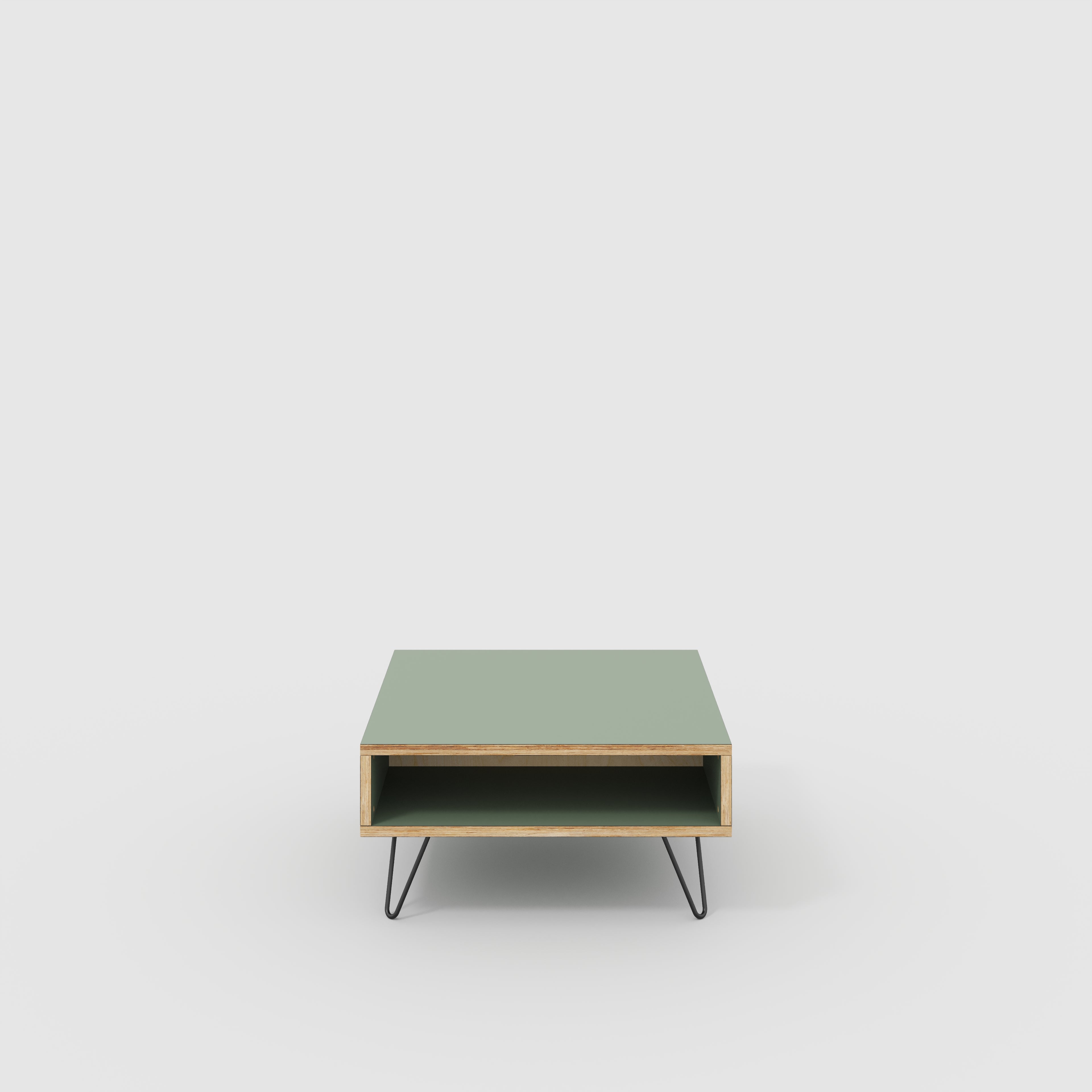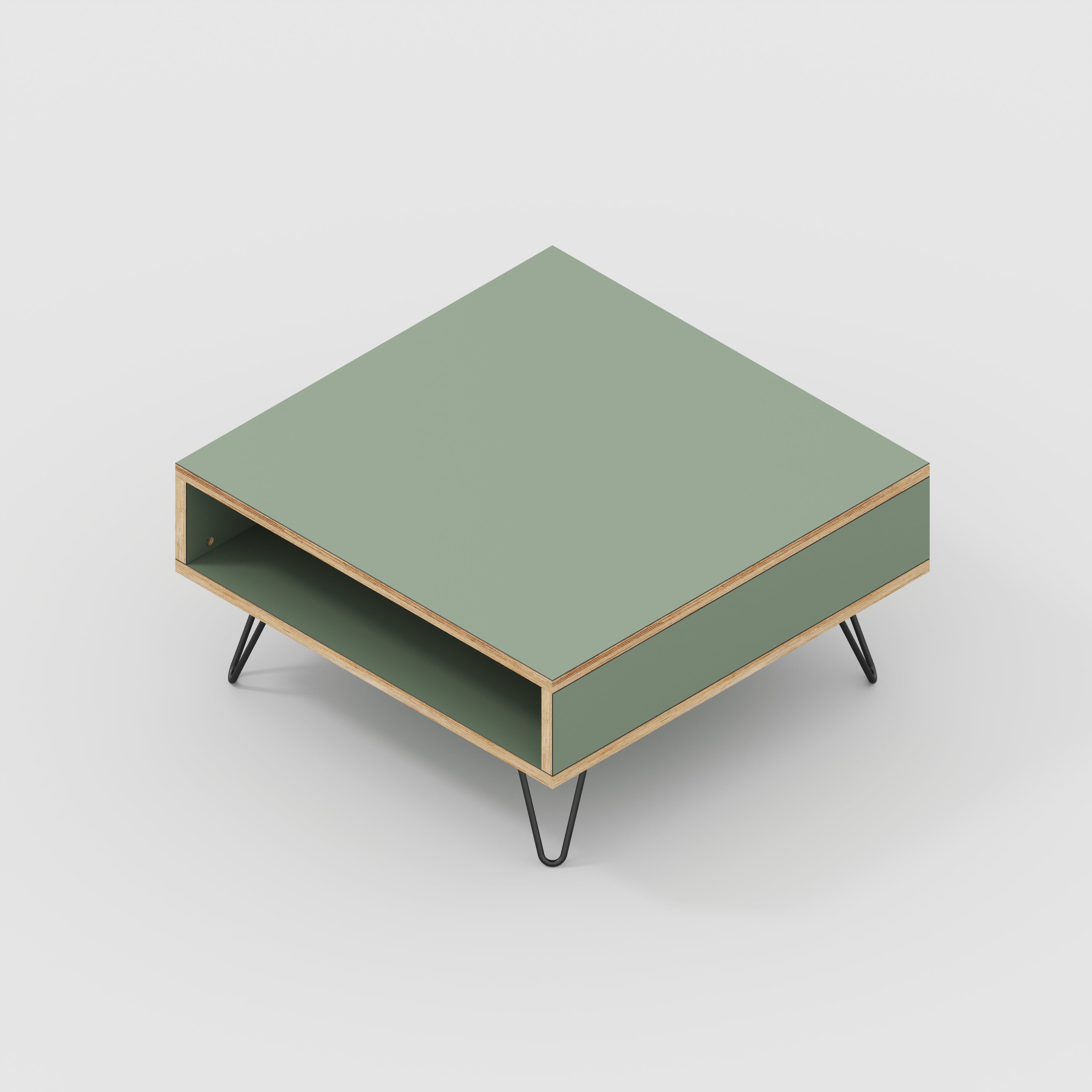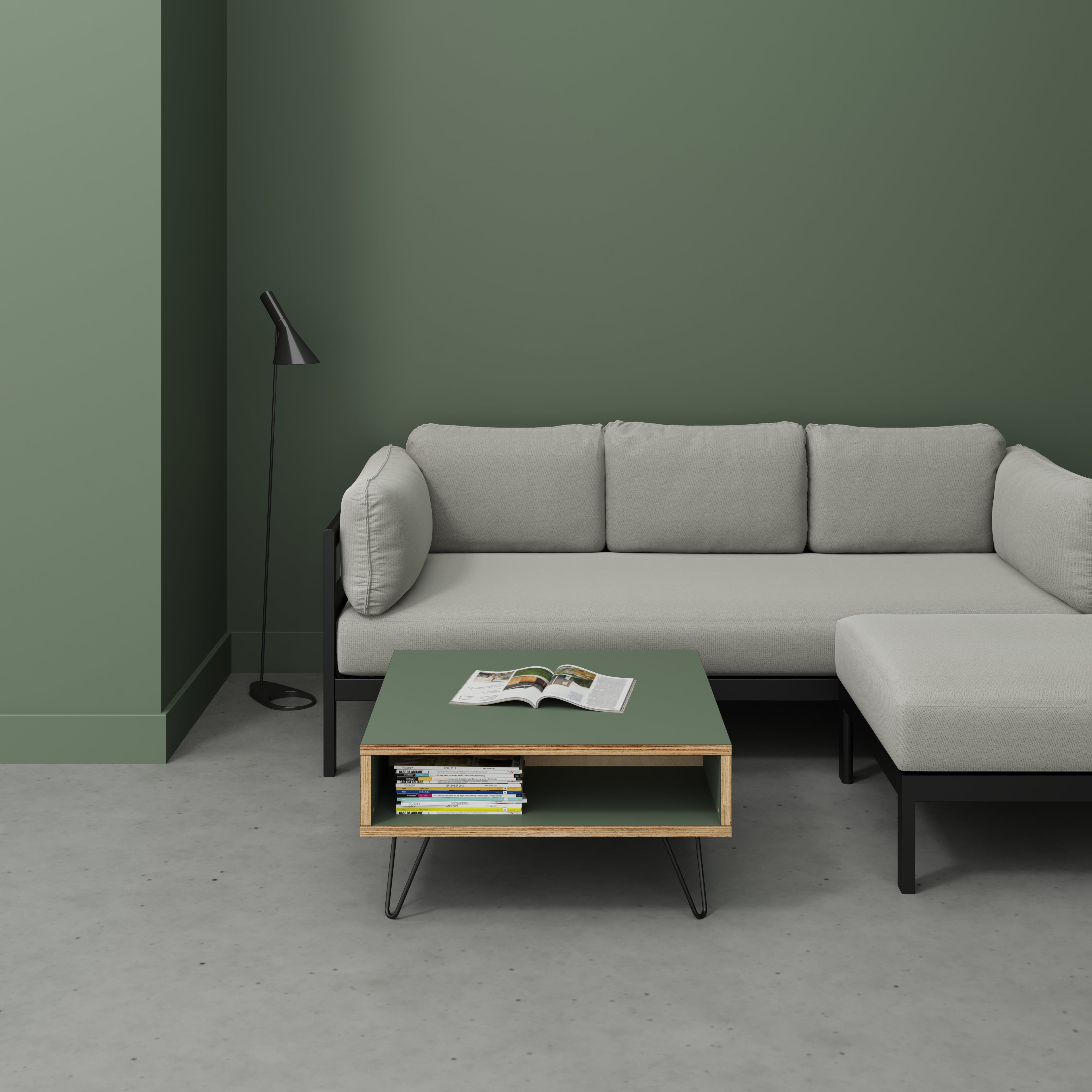 Plywood Coffee Table with Box Storage and Black Hairpin Legs - Formica Green Slate - 800(w) x 800(d) x 400(h)