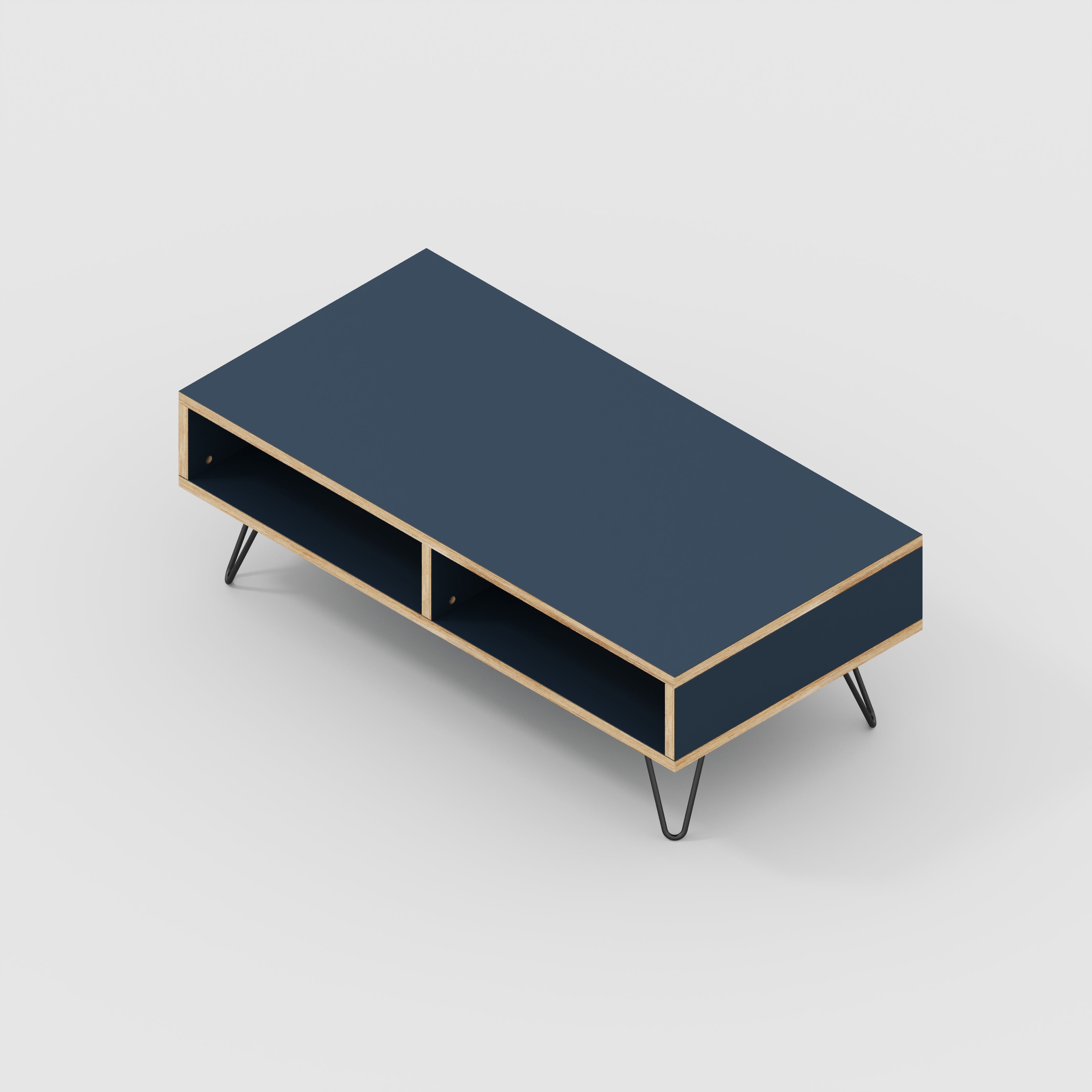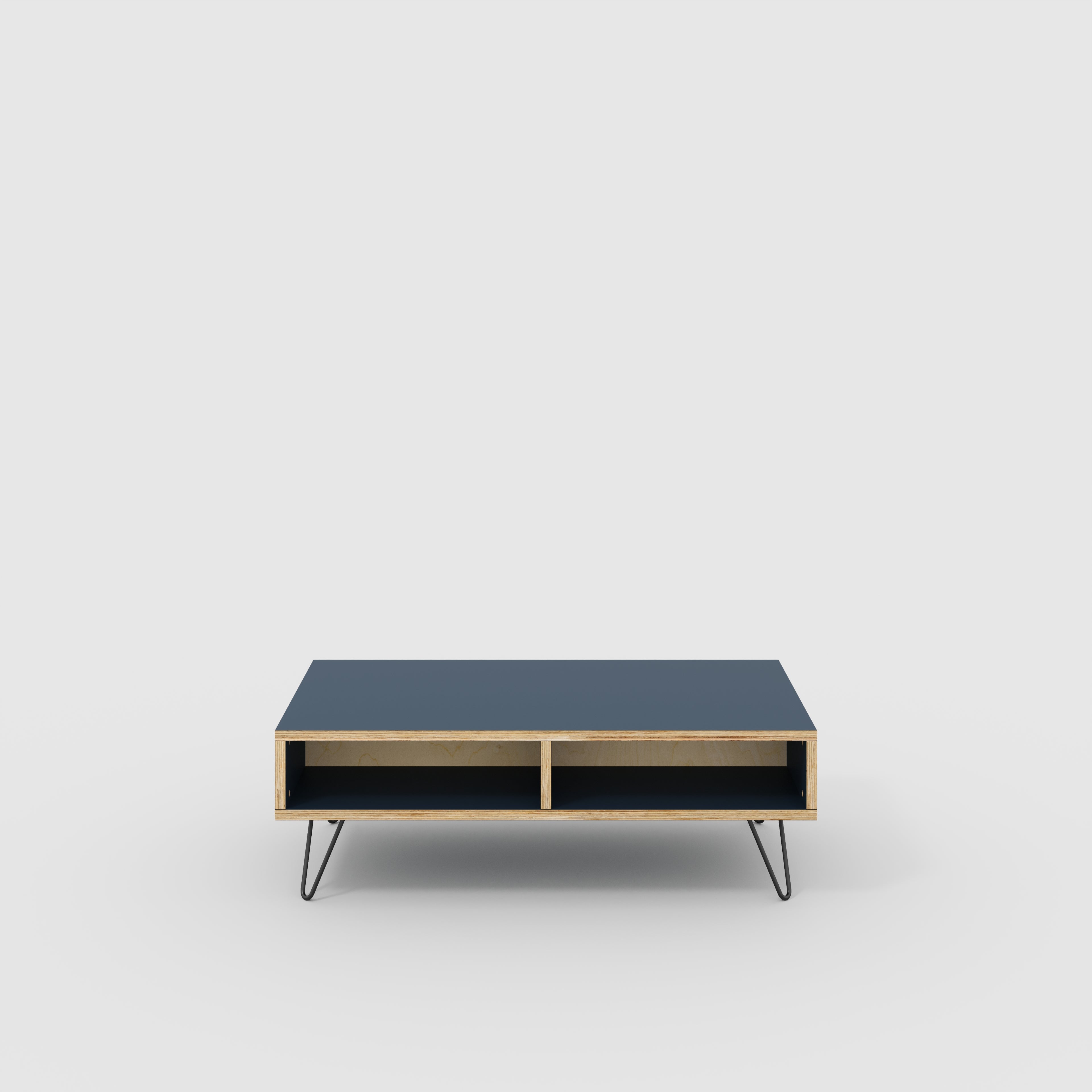 Plywood Coffee Table with Box Storage and Black Hairpin Legs - Formica Night Sea Blue - 1200(w) x 600(d) x 400(h)