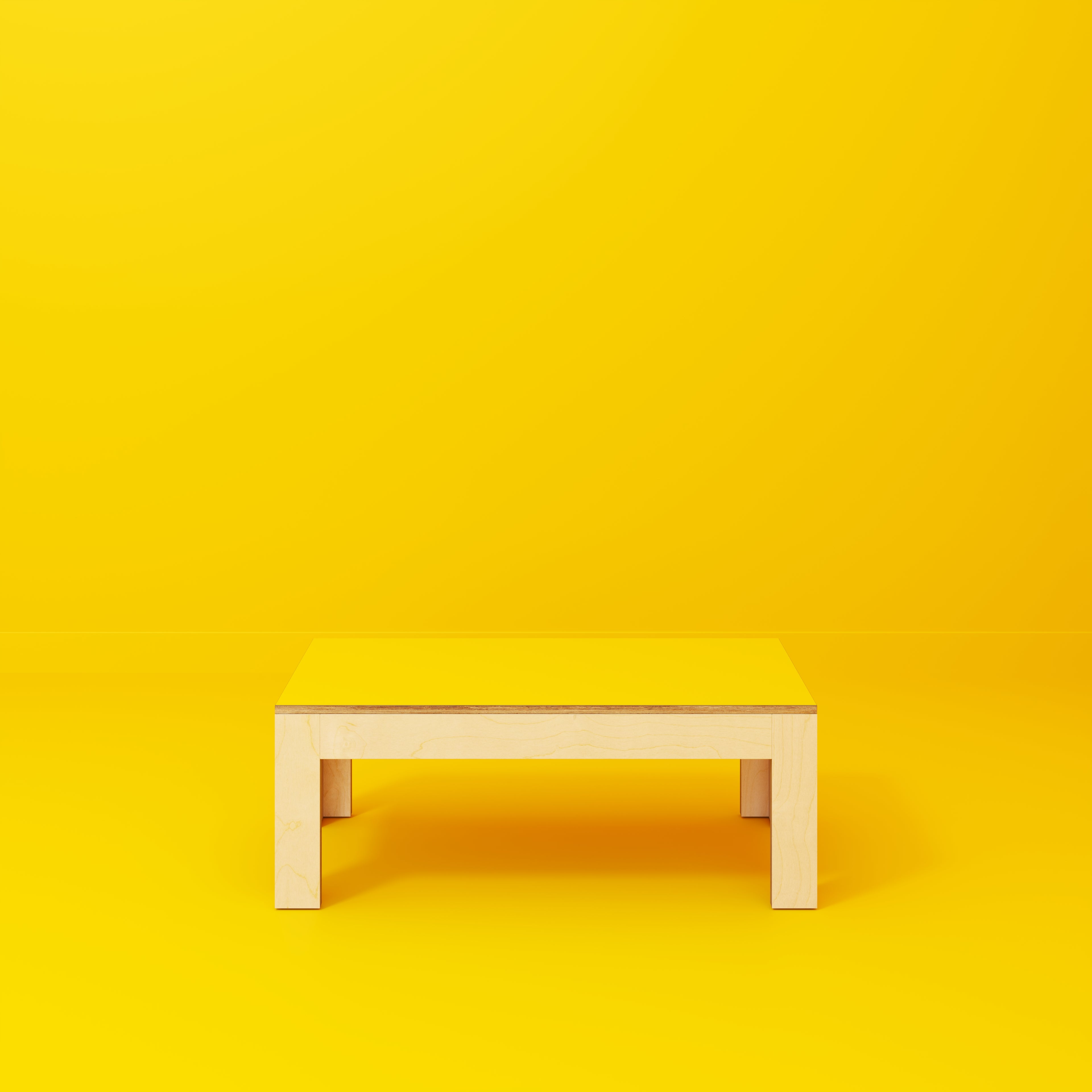 Plywood Coffee Table with Solid Frame - Formica Chrome Yellow - 1200(w) x 600(d) x 450(h)