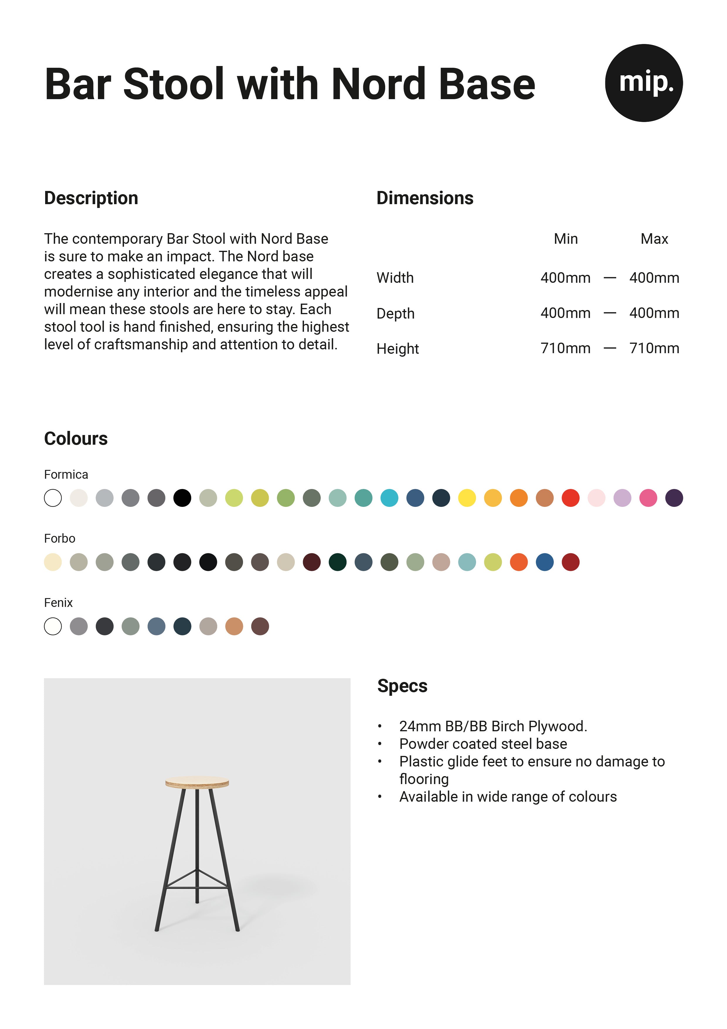 The contemporary Bar Stool with Nord Base is sure to make an impact. The Nord base creates a sophisticated elegance that will modernise any interior and the timeless appeal will mean these stools are here to stay. Each stool tool is hand finished, ensuring the highest level of craftsmanship and attention to detail.
