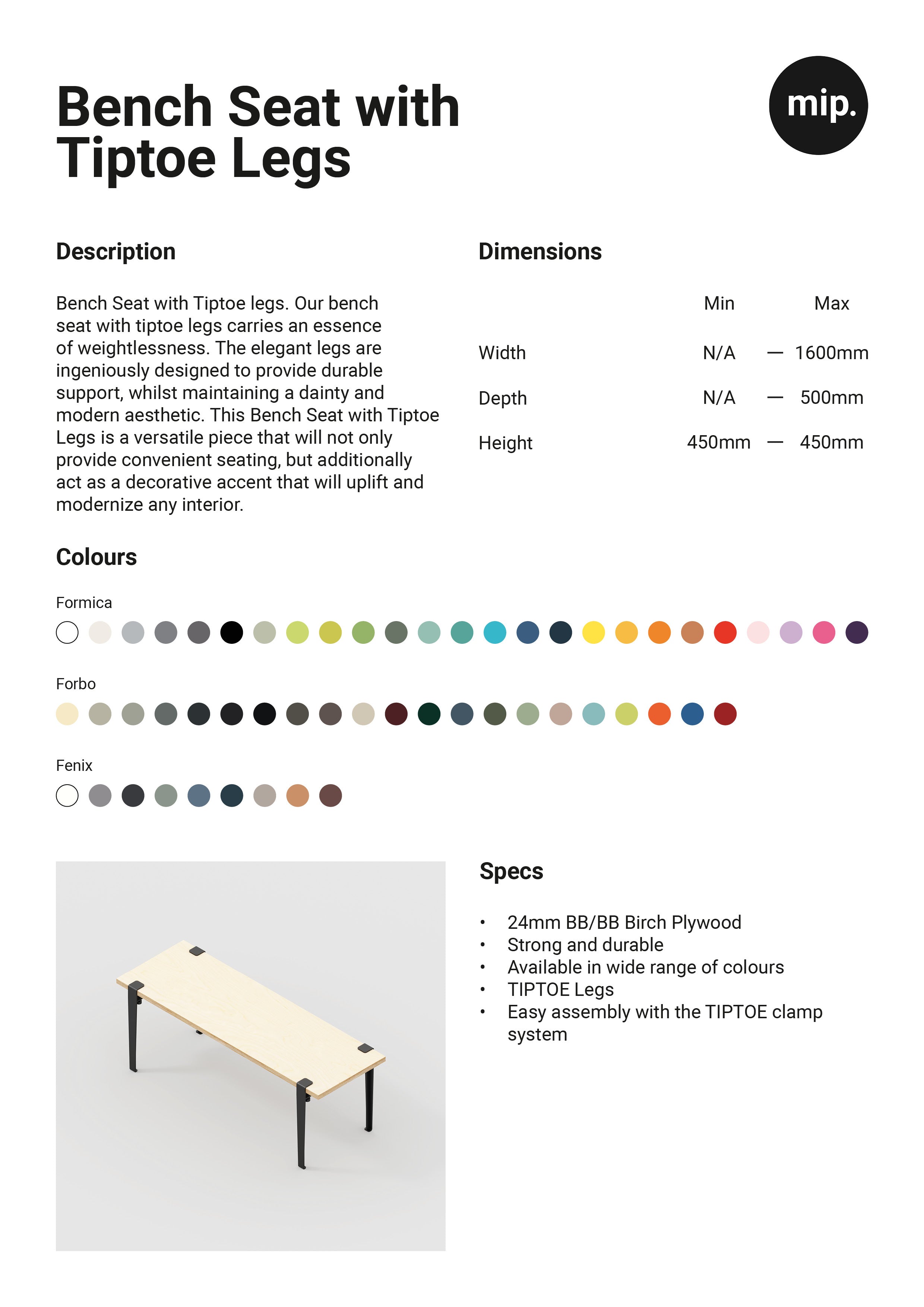 Bench Seat with Tiptoe legs. Our bench seat with tiptoe legs carries an essence of weightlessness. The elegant legs are ingeniously designed to provide durable support, whilst maintaining a dainty and modern aesthetic. This Bench Seat with Tiptoe Legs is a versatile piece that will not only provide convenient seating, but additionally act as a decorative accent that will uplift and modernize any interior.