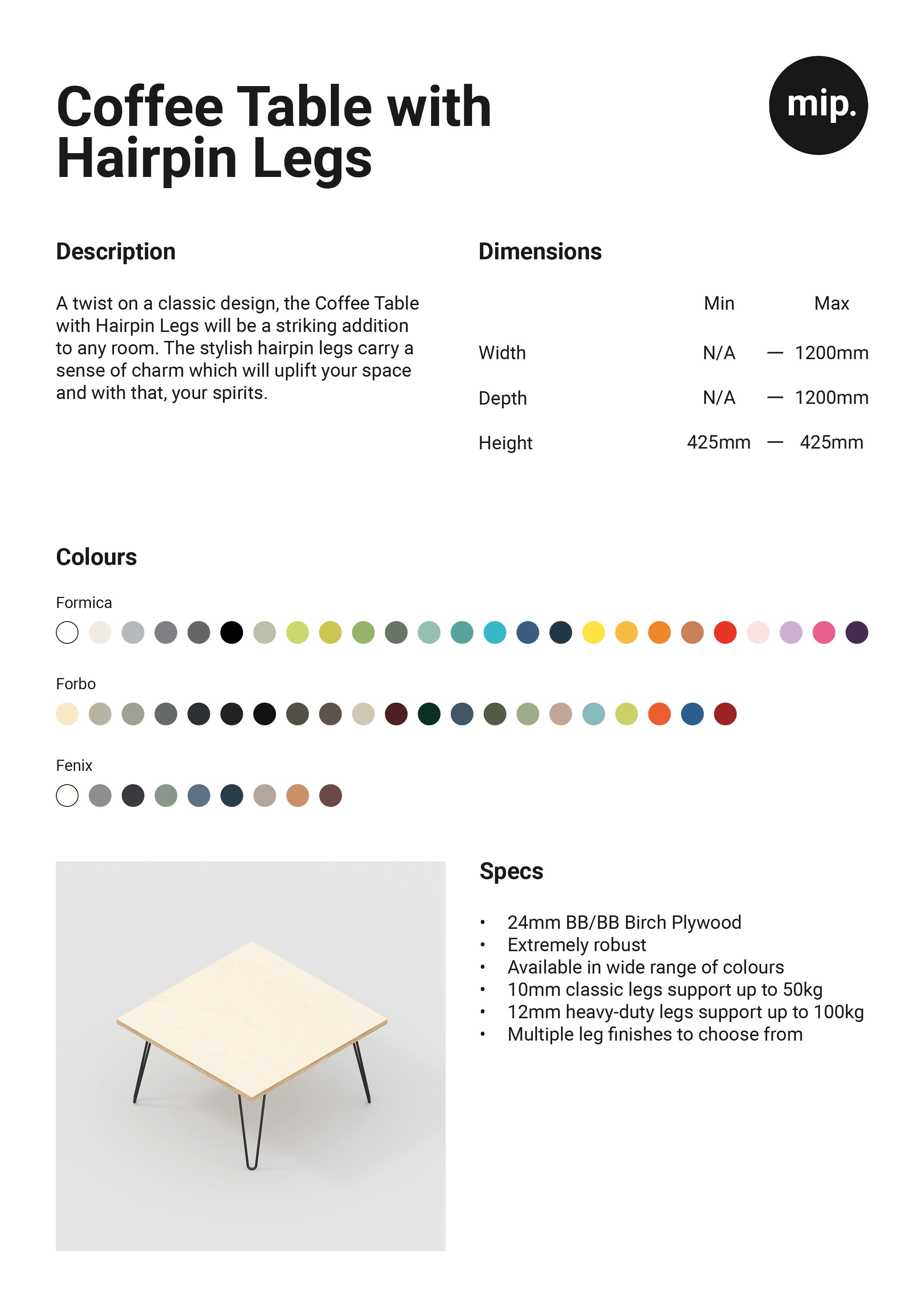 A twist on a classic design, the Coffee Table with Hairpin Legs will be a striking addition to any room. The stylish hairpin legs carry a sense of charm which will uplift your space and with that, your spirits.