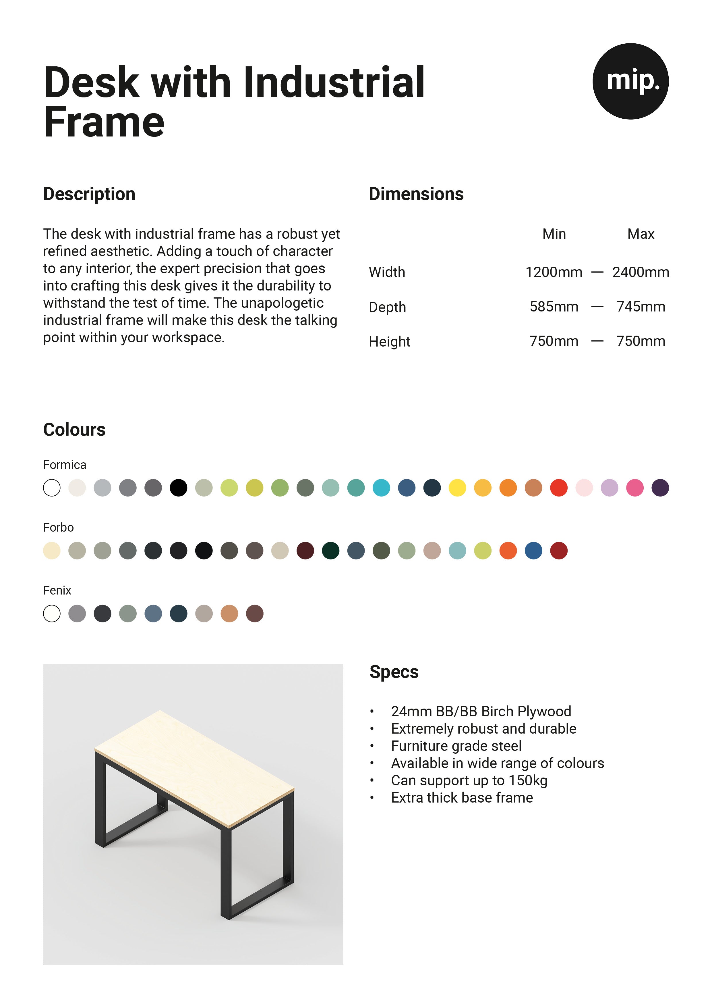 The desk with industrial frame has a robust yet refined aesthetic. Adding a touch of character to any interior, the expert precision that goes into crafting this desk gives it the durability to withstand the test of time. The unapologetic industrial frame will make this desk the talking point within your workspace.