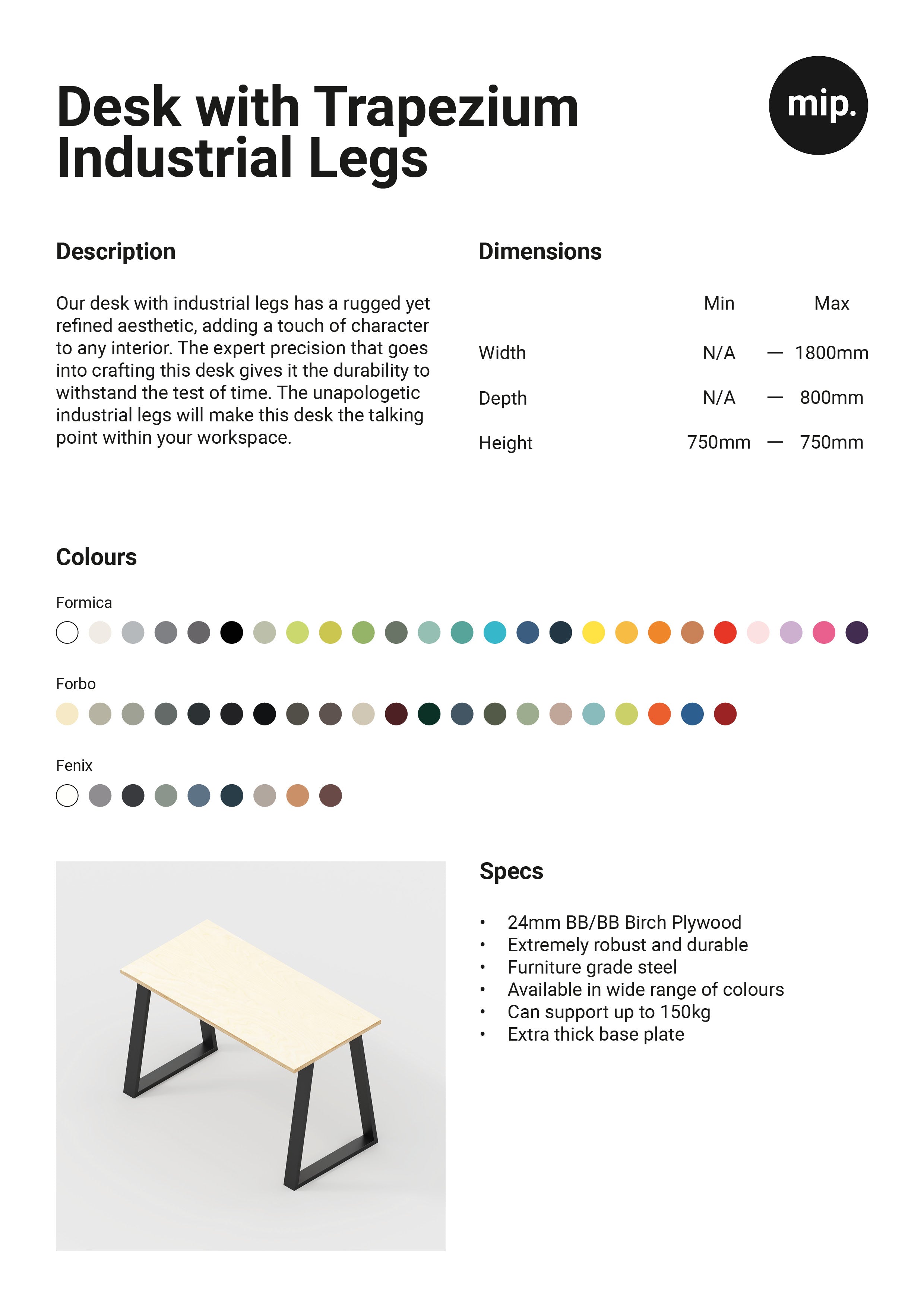 Our desk with industrial legs has a rugged yet refined aesthetic, adding a touch of character to any interior. The expert precision that goes into crafting this desk gives it the durability to withstand the test of time. The unapologetic industrial legs will make this desk the talking point within your workspace.