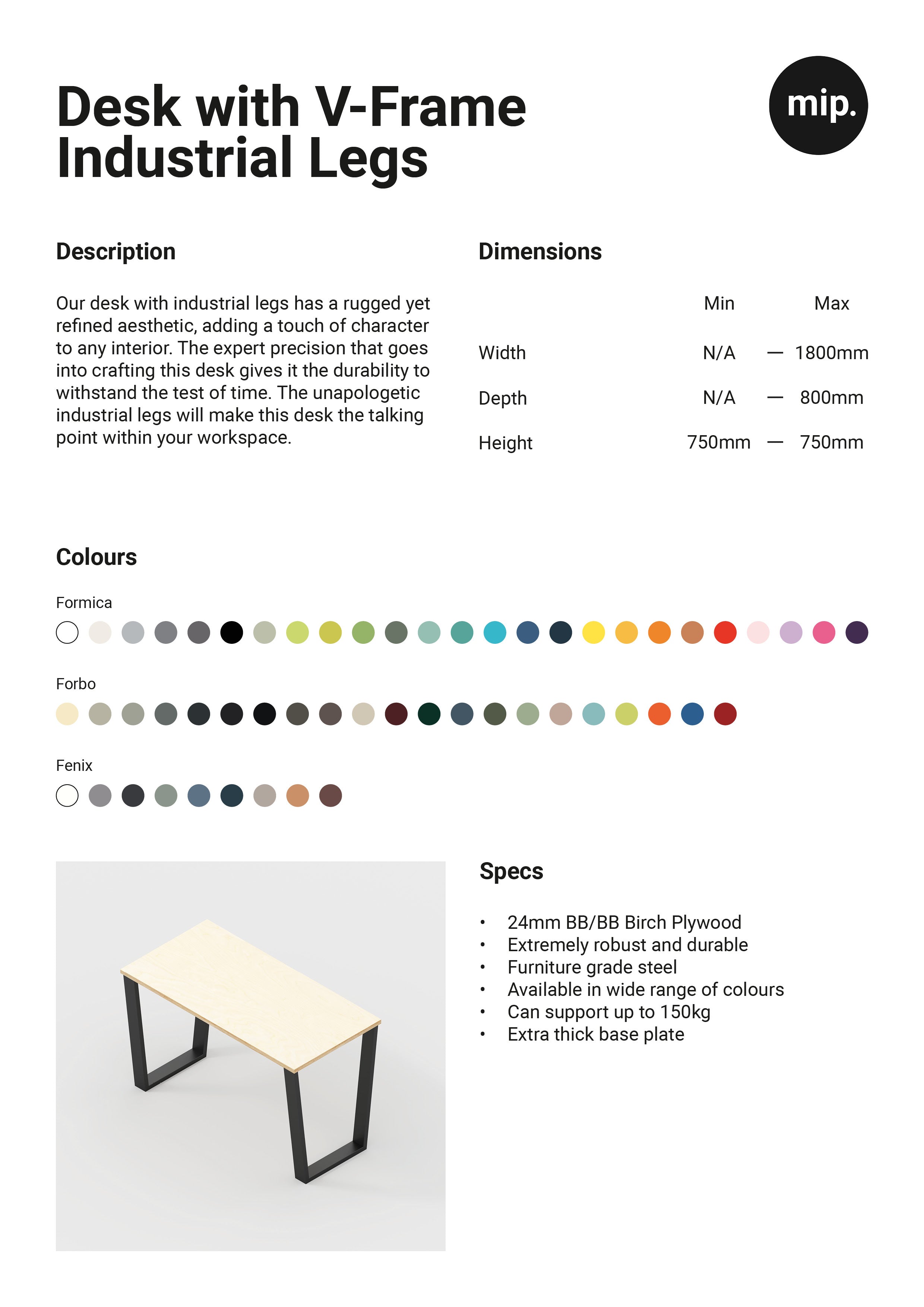 Our desk with industrial legs has a rugged yet refined aesthetic, adding a touch of character to any interior. The expert precision that goes into crafting this desk gives it the durability to withstand the test of time. The unapologetic industrial legs will make this desk the talking point within your workspace.