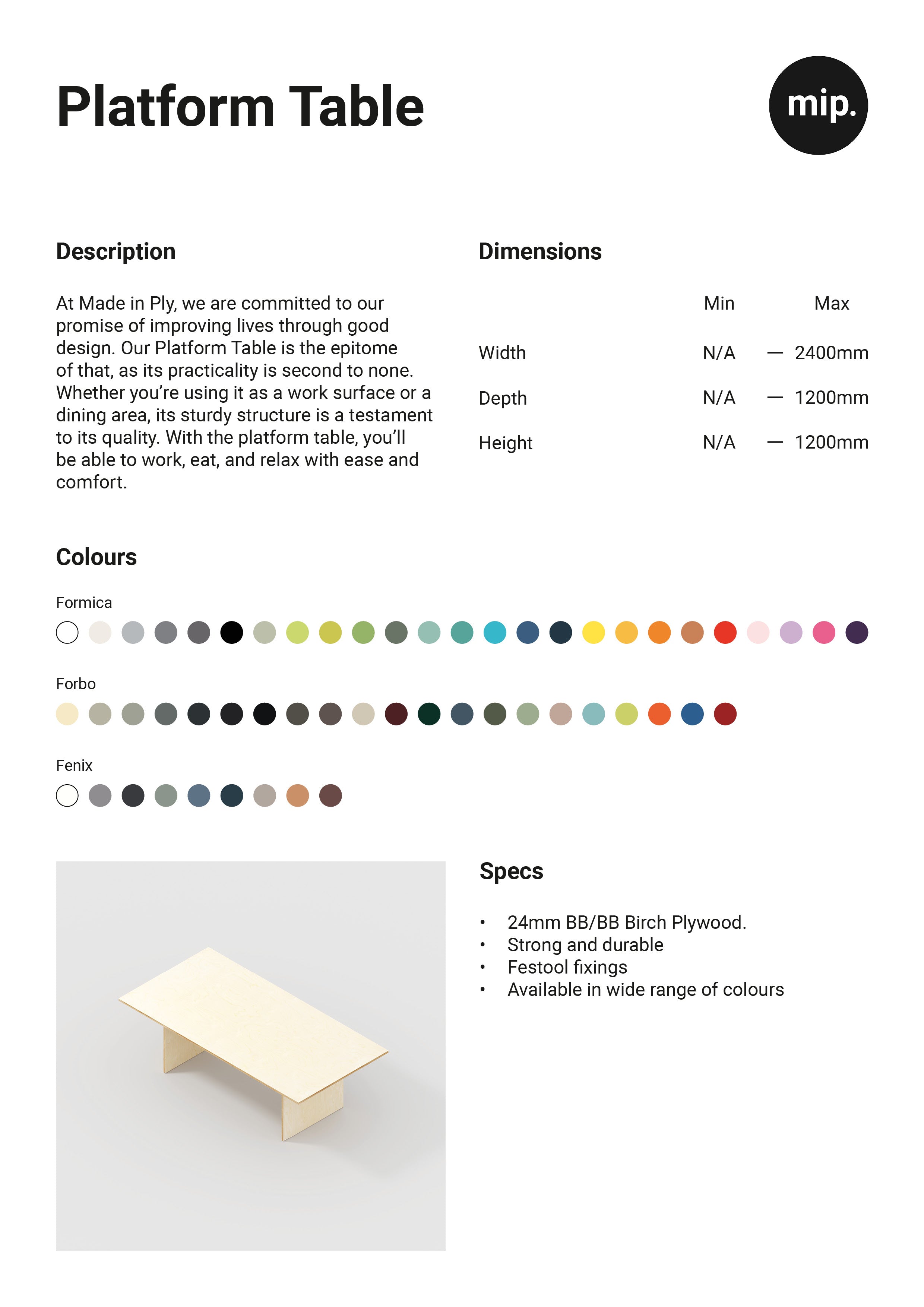 At Made in Ply, we are committed to our promise of improving lives through good design. Our platform table is the epitome of that, as its practicality is second to none. Whether you're using it as a work surface or a dining area, its sturdy structure is a testament to its quality. With the platform table, you'll be able to work, eat, and relax with ease and comfort.