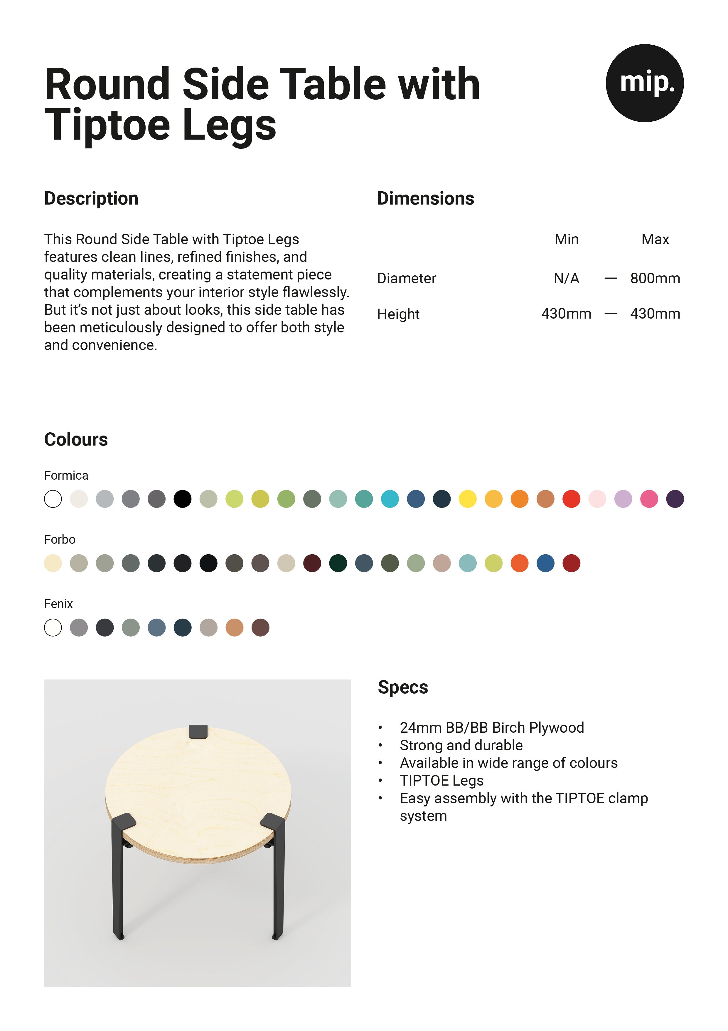 Custom Plywood Round Side Table with Tiptoe Legs