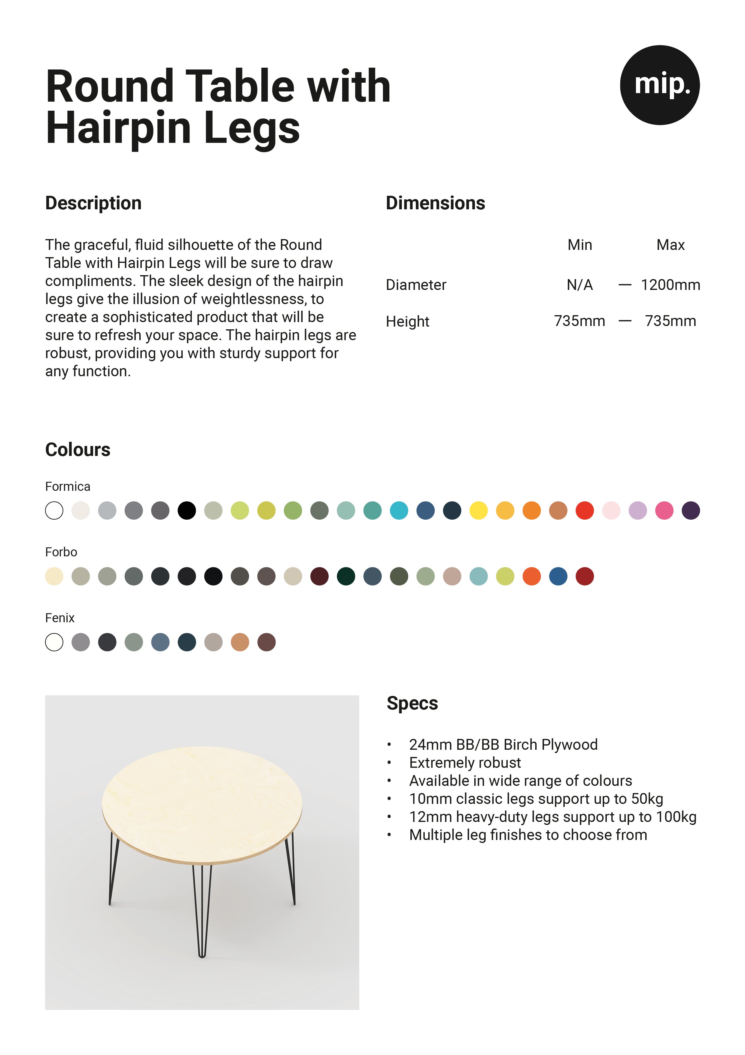 The graceful, fluid silhouette of the Round Table with Hairpin Legs will be sure to draw compliments. The sleek design of the hairpin legs give the illusion of weightlessness, to create a sophisticated product that will be sure to refresh your space. The hairpin legs are robust, providing you with sturdy support for any function.