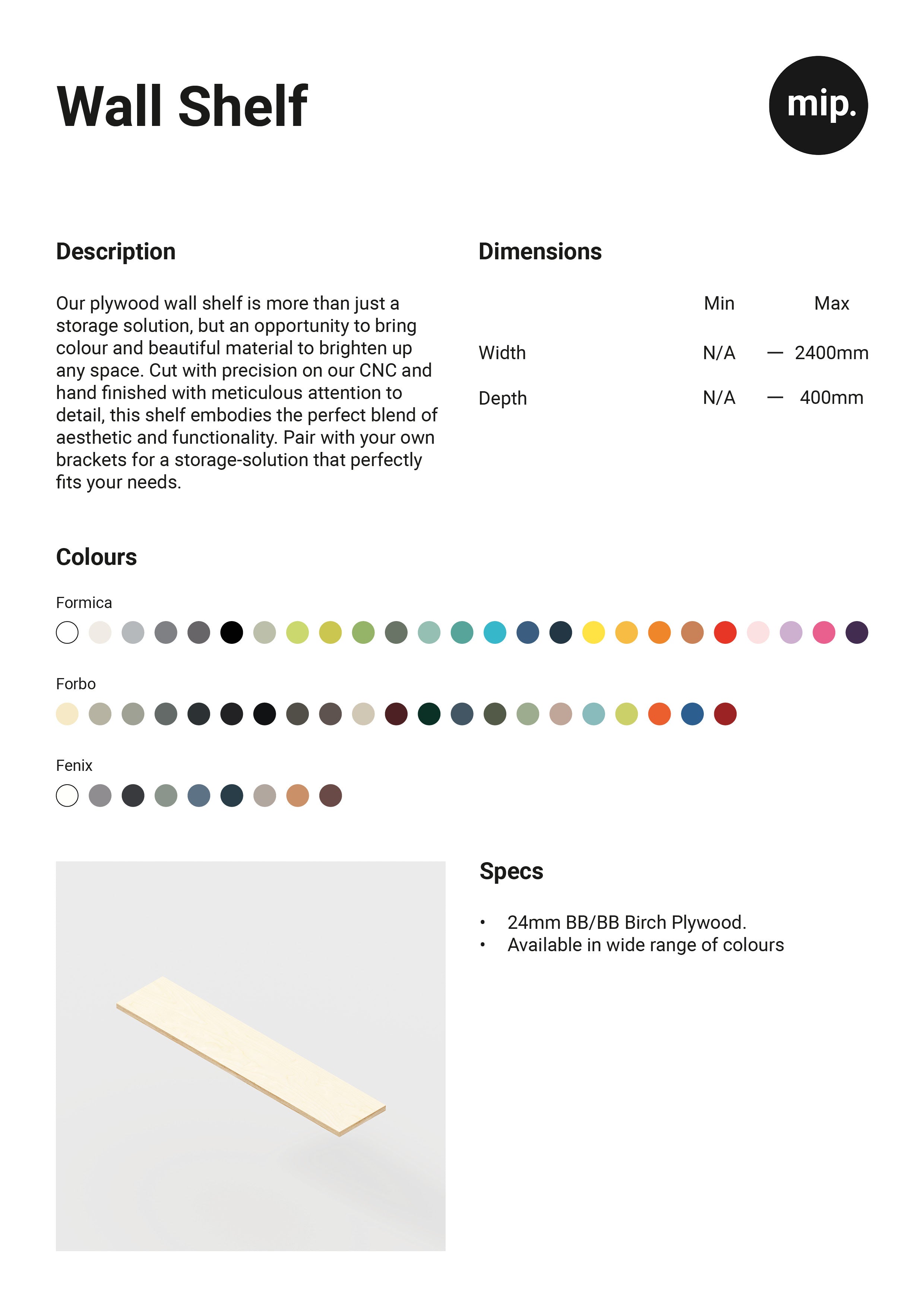 Our plywood wall shelf is more than just a storage solution, but an opportunity to bring colour and beautiful material to brighten up any space. Cut with precision on our CNC and hand finished with meticulous attention to detail, this shelf embodies the perfect blend of aesthetic and functionality. Pair with your own brackets for a storage-solution that perfectly fits your needs.