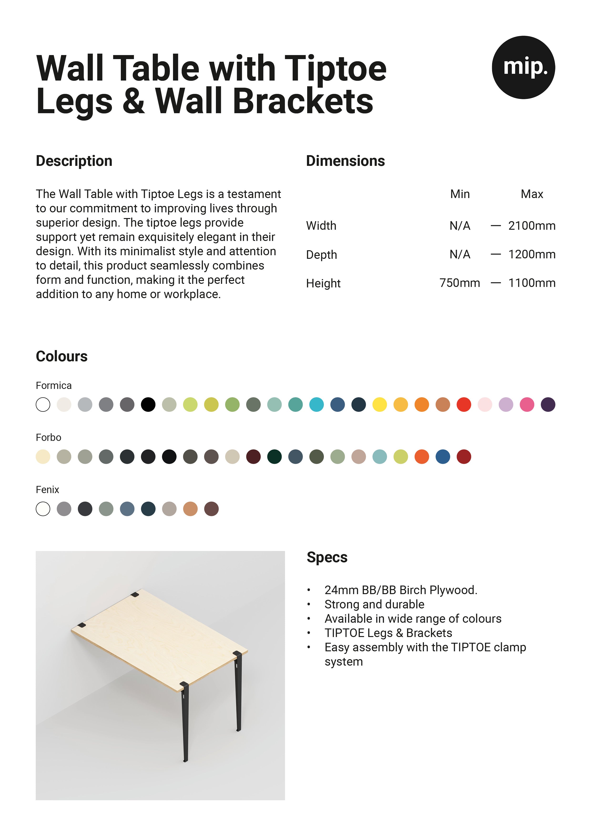 Custom Plywood Wall Table with Tiptoe Legs and Tiptoe Wall Brackets