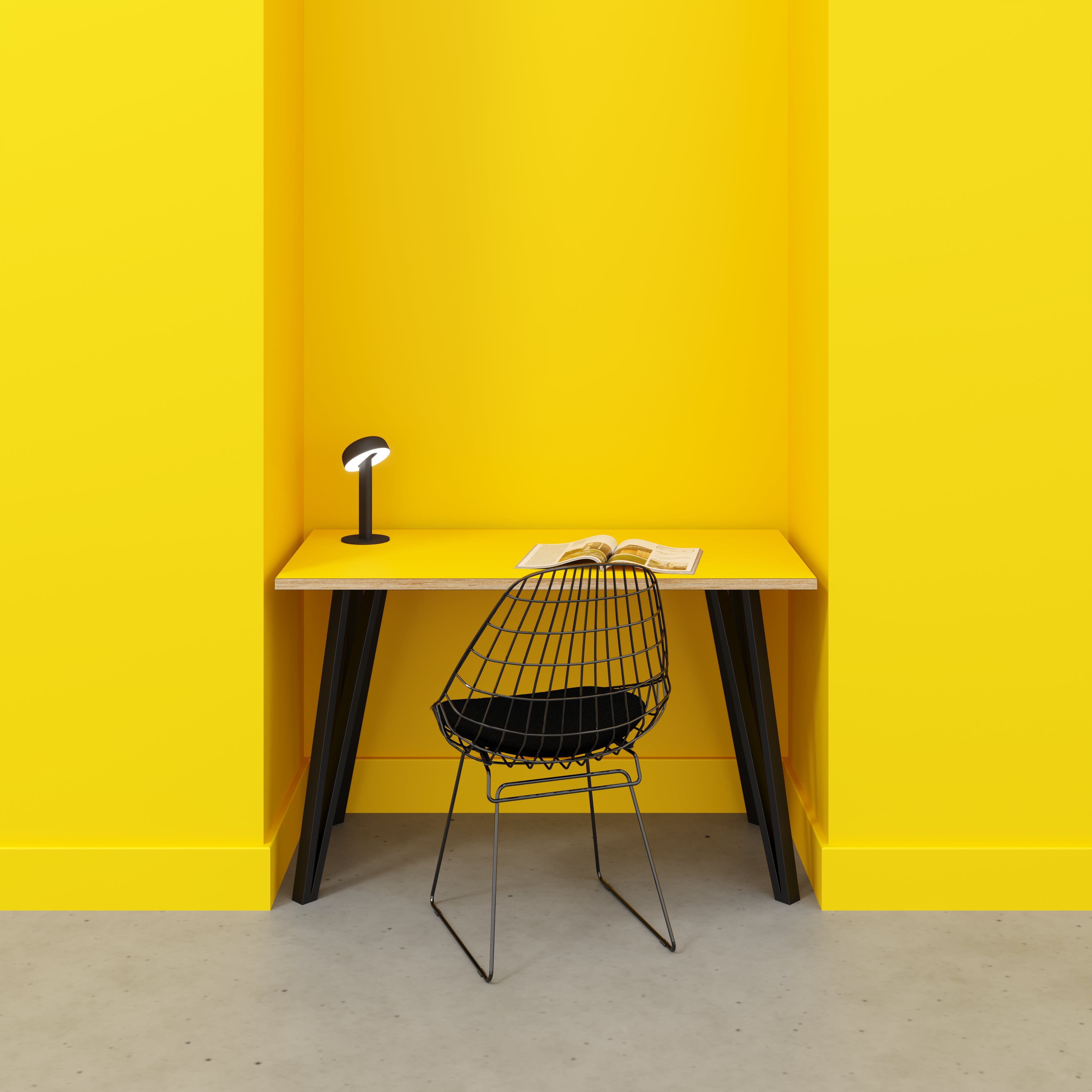 Plywood Desk with Black Box Hairpin Legs - Formica Chrome Yellow - 1200(w) x 600(d) x 735(h)
