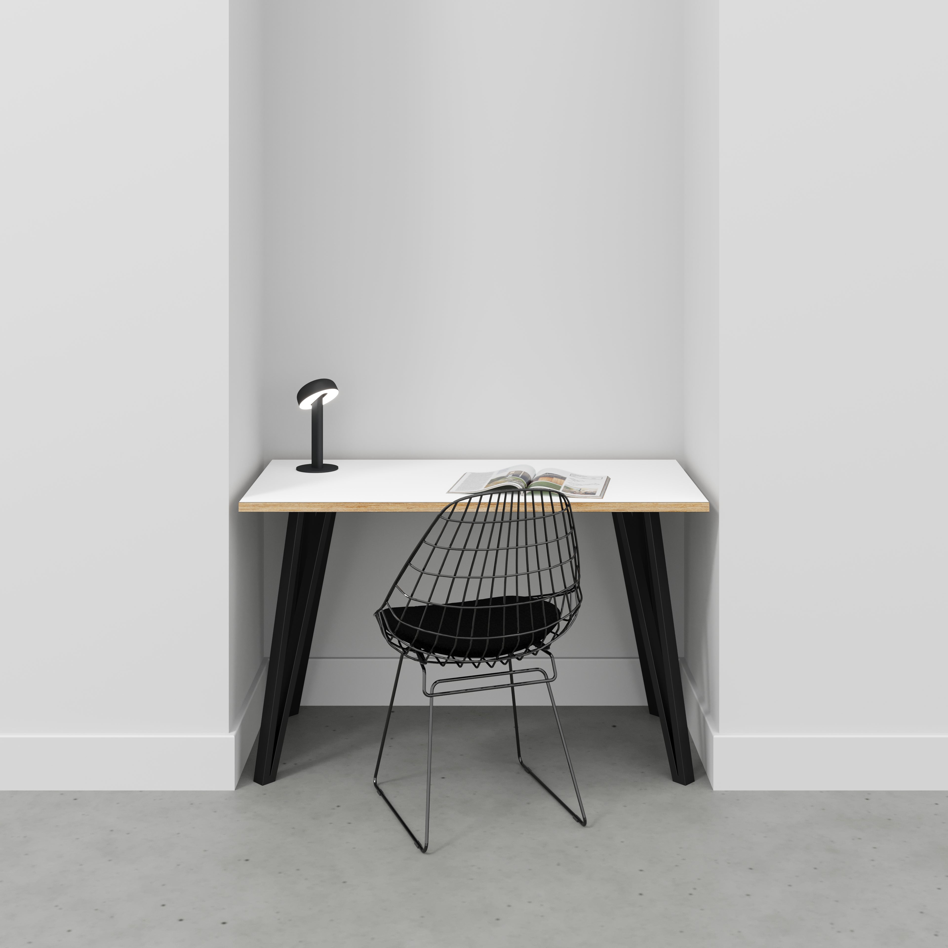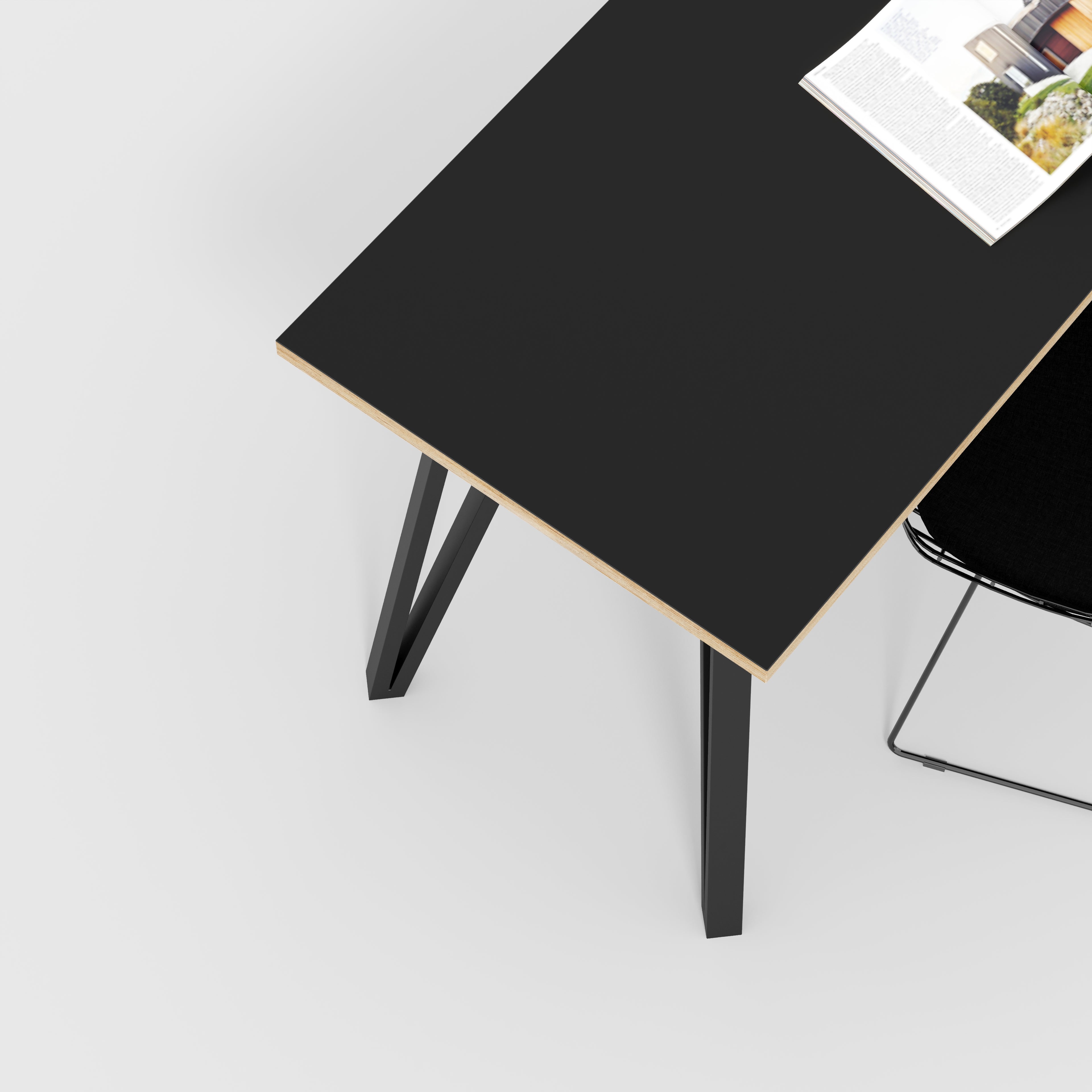 Plywood Desk with Black Box Hairpin Legs - Formica Diamond Black - 1200(w) x 600(d) x 735(h)