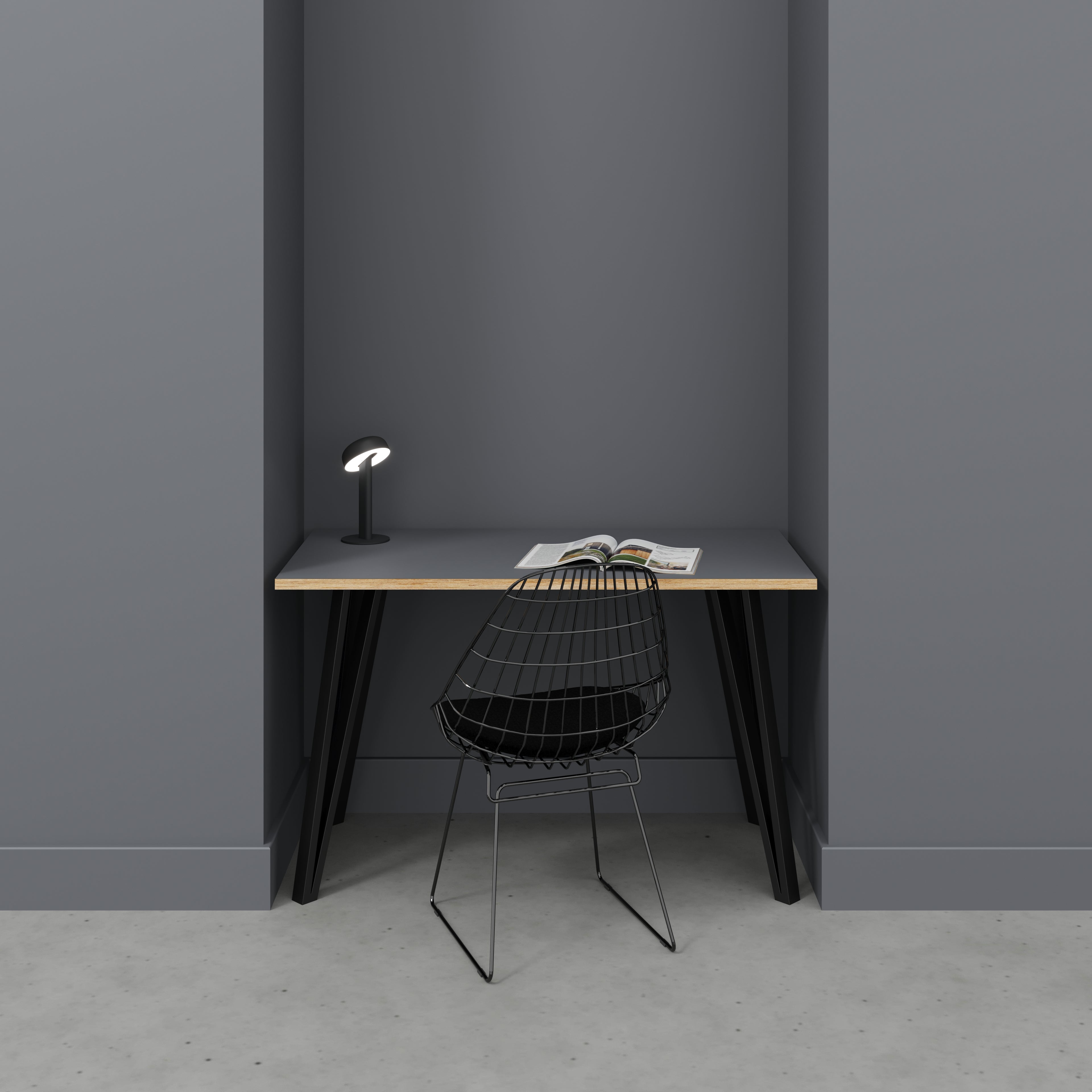 Plywood Desk with Black Box Hairpin Legs - Formica Tornado Grey - 1200(w) x 600(d) x 735(h)
