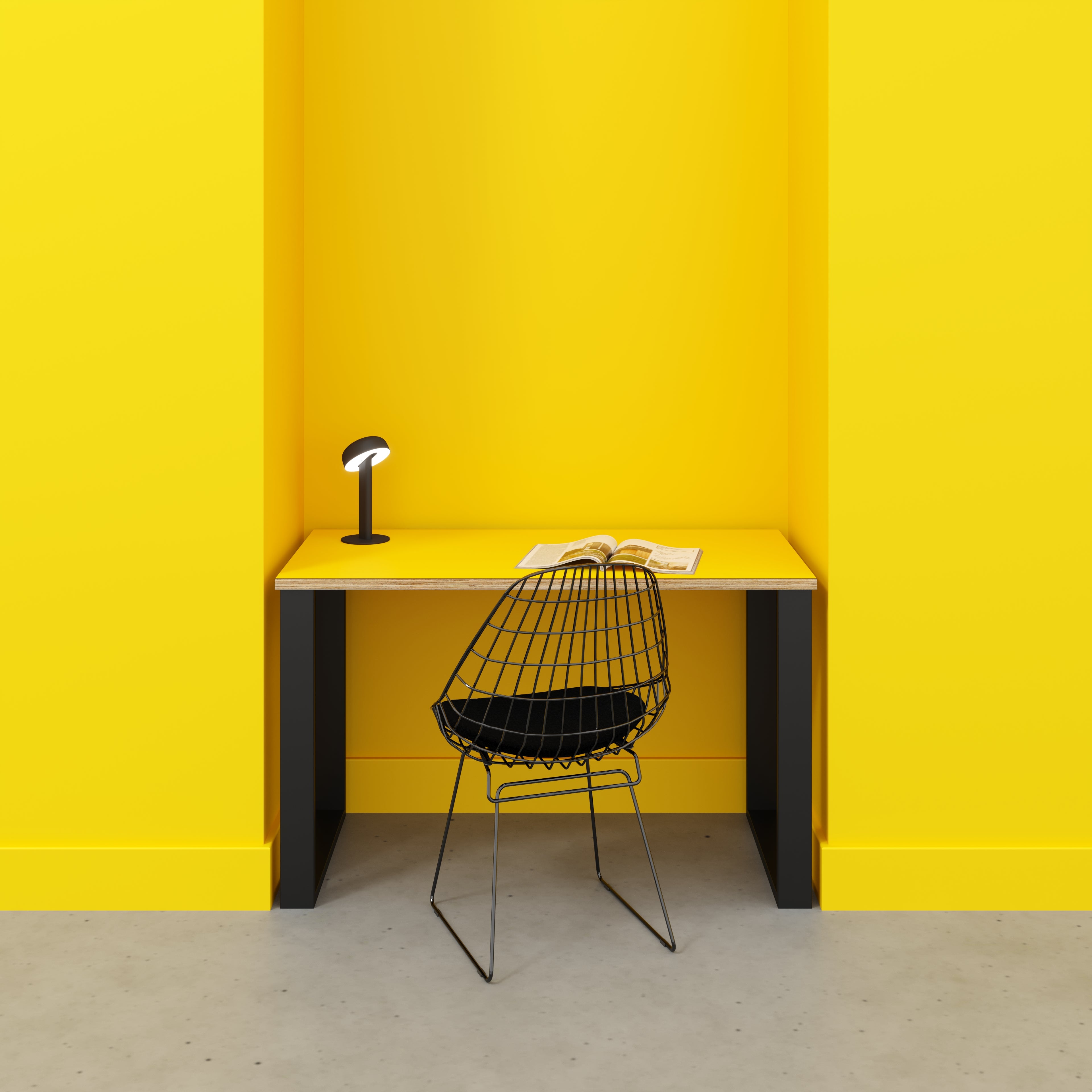 Plywood Desk with Black Industrial Legs - Formica Chrome Yellow - 1200(w) x 600(d) x 735(h)