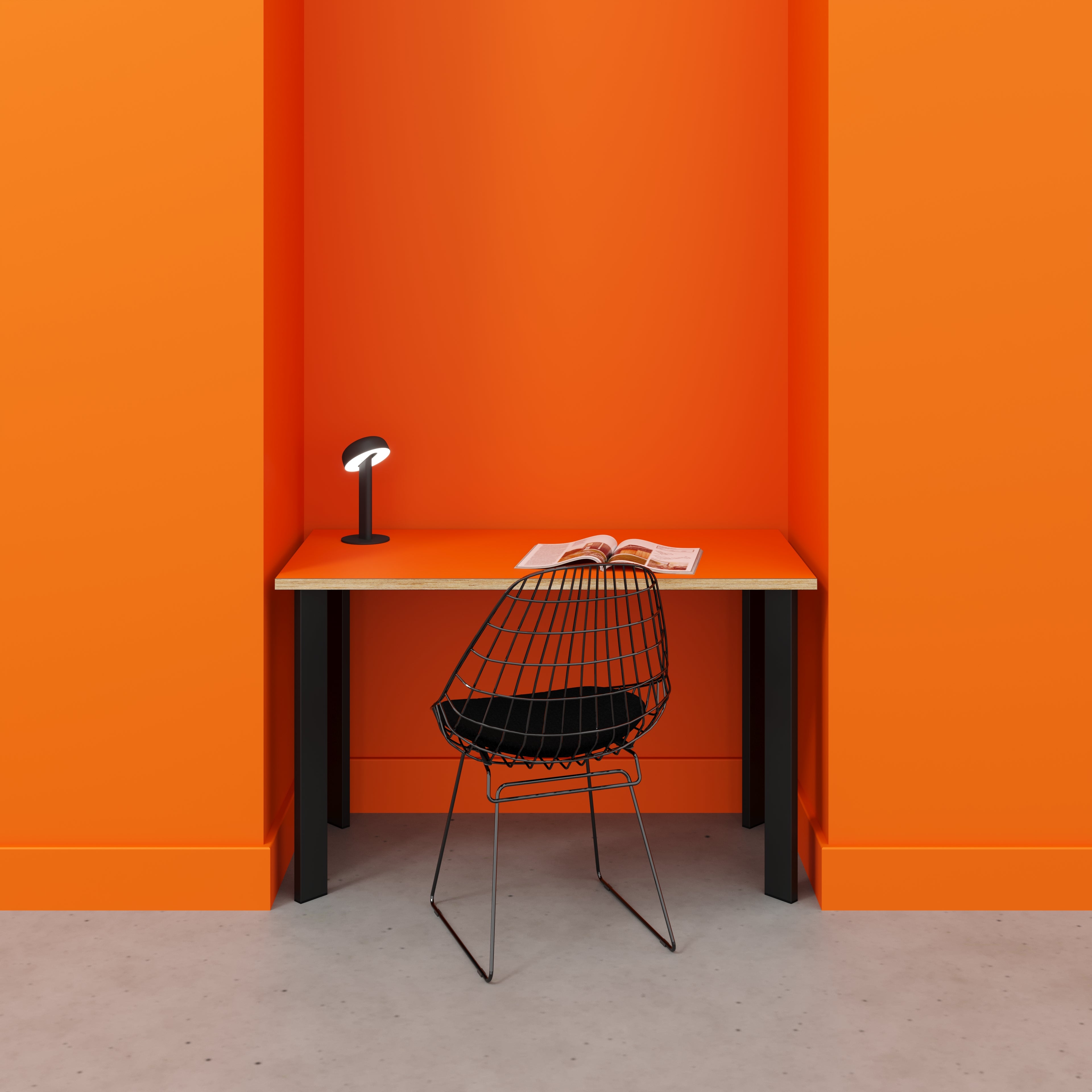Plywood Desk with Black Rectangular Single Pin Legs - Formica Levante Orange - 1200(w) x 600(d) x 735(h)