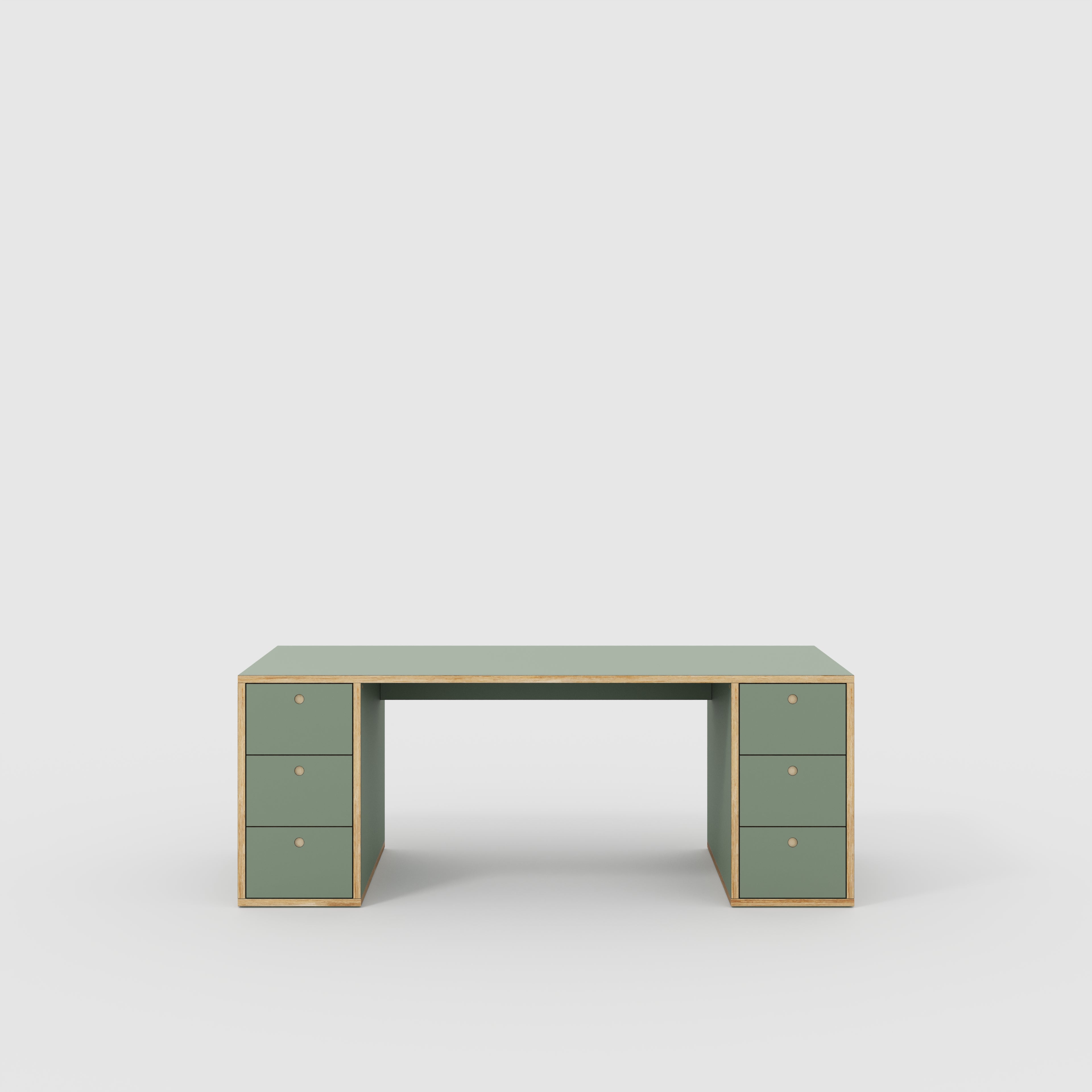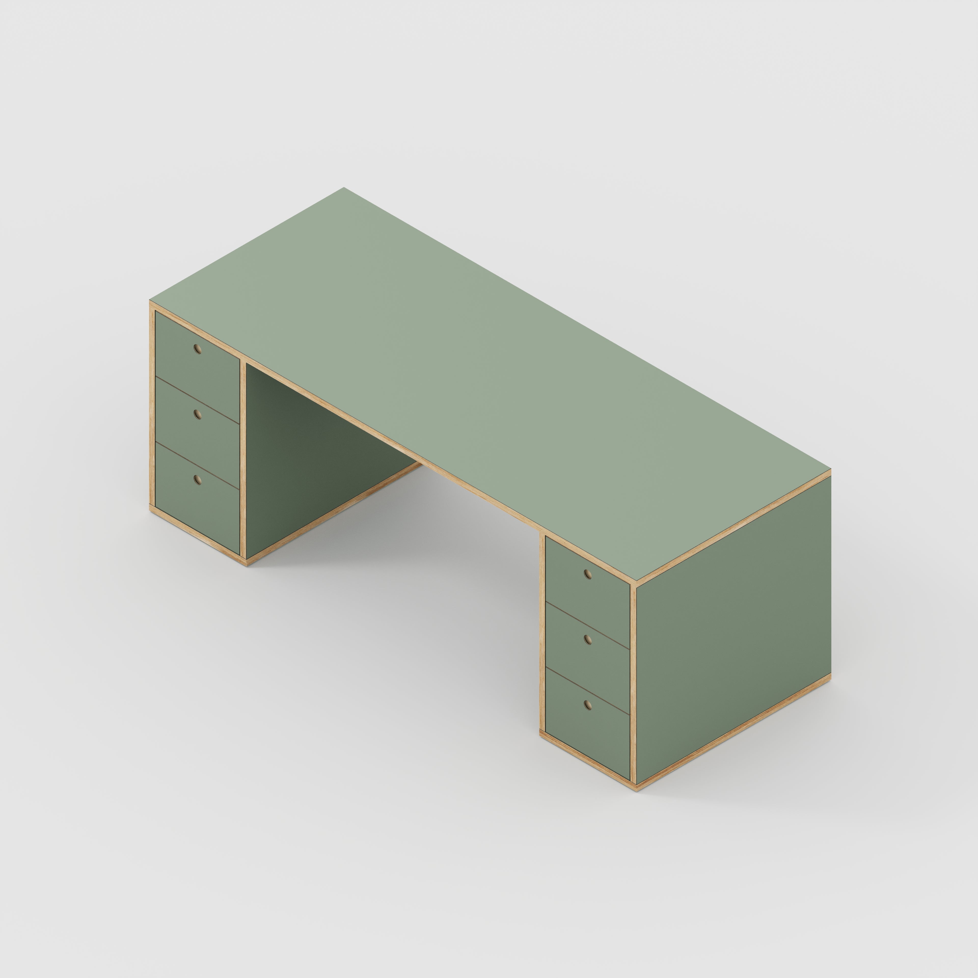 Plywood Desk with Storage Type 2 - Drawers - Formica Green Slate - 2000(w) x 800(d) x 750(h)