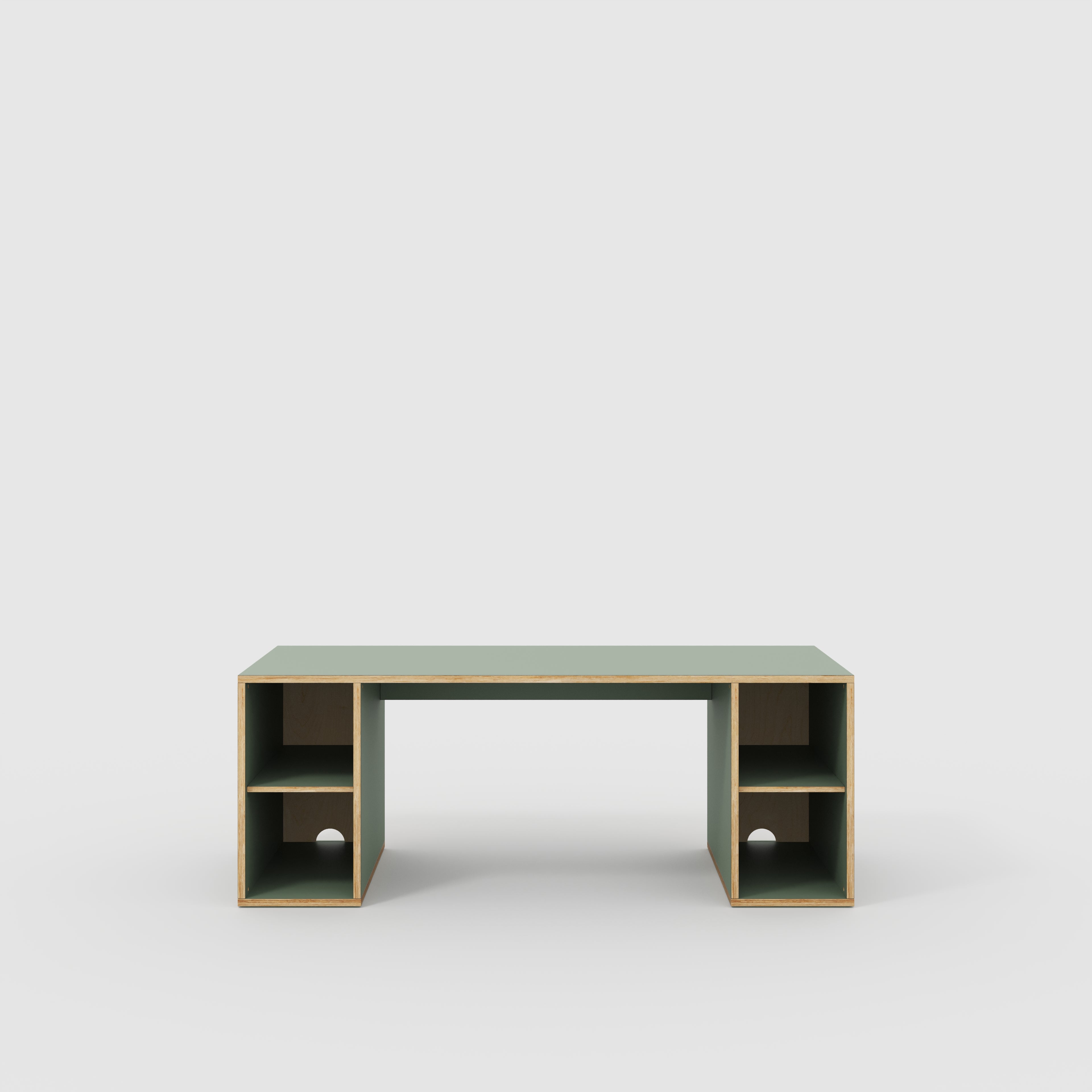 Plywood Desk with Storage Type 2 - Open Shelves - Formica Green Slate - 2000(w) x 800(d) x 750(h)