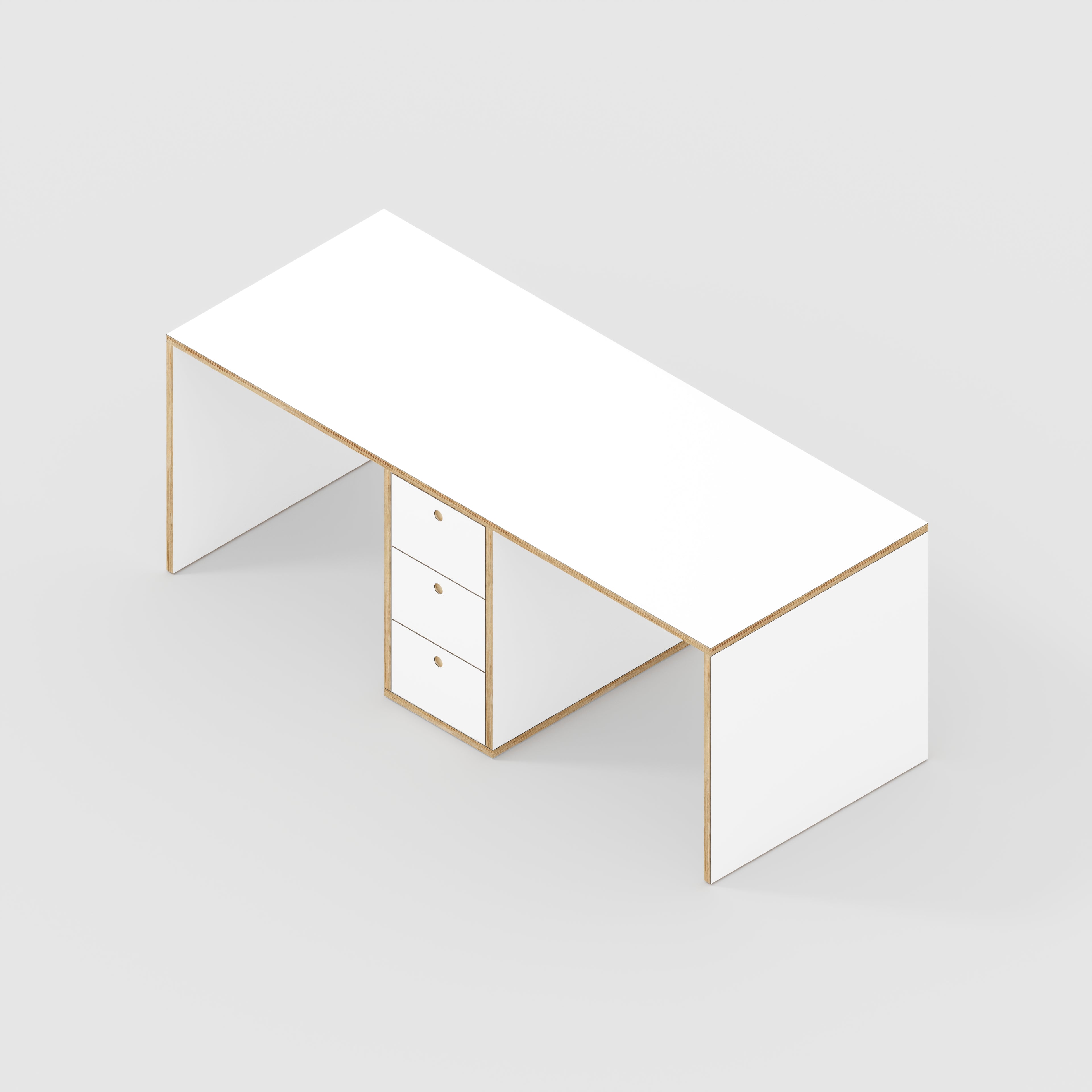 Plywood Desk with Storage Type 3 - Drawers - Formica White - 2000(w) x 800(d)
