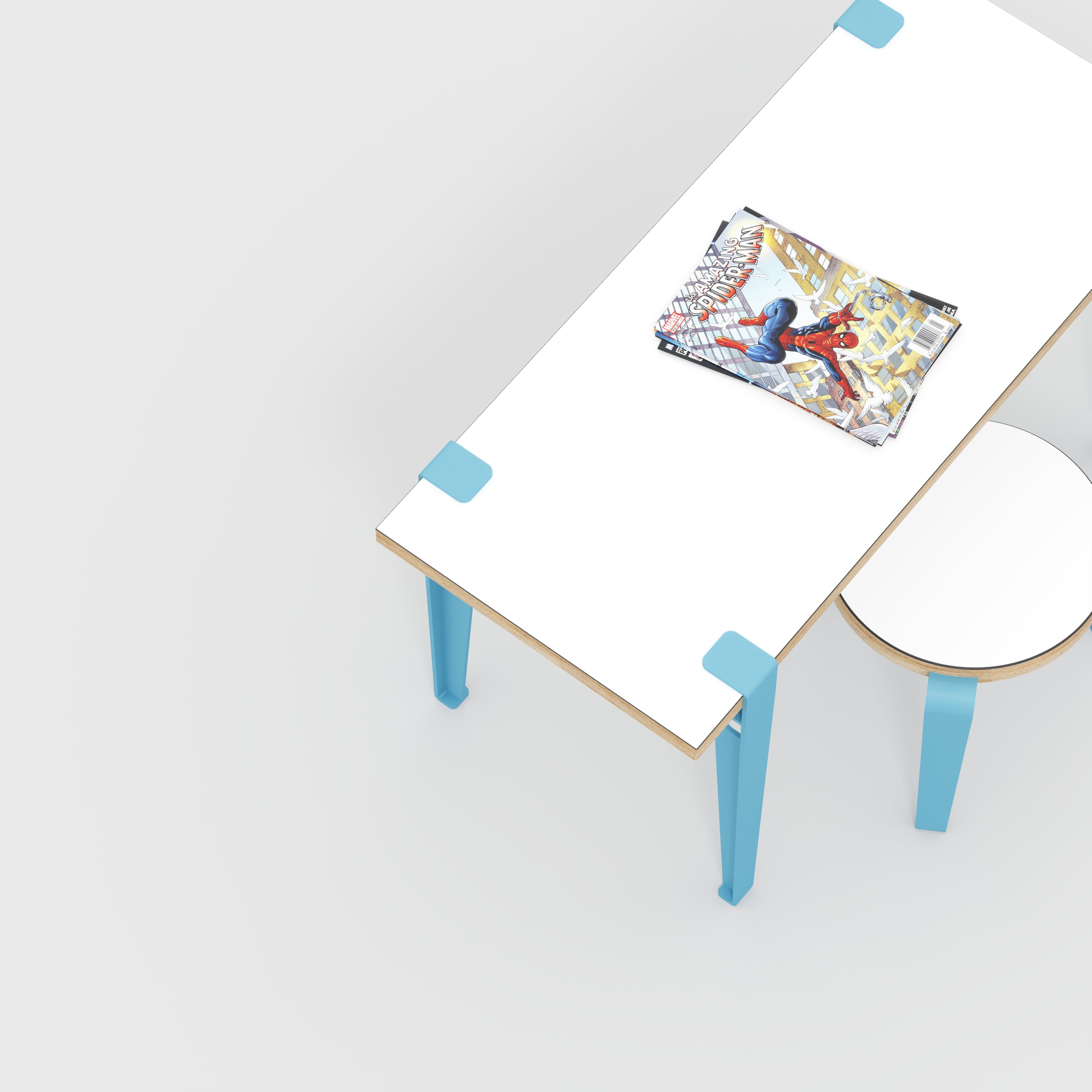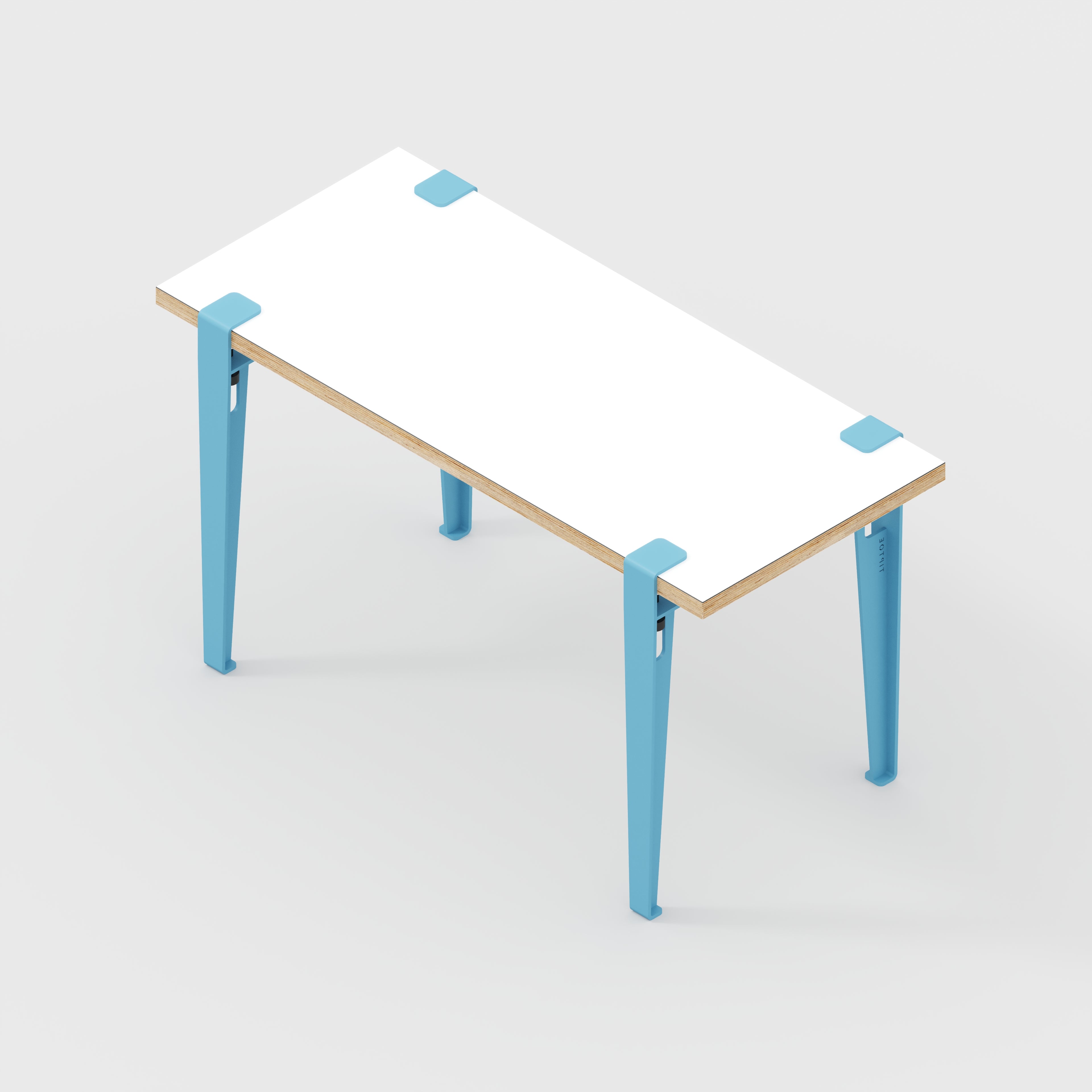 Plywood Kids Desk with Whale Blue Tiptoe Legs - Formica White - 800(w) x 400(d) x 500(h)
