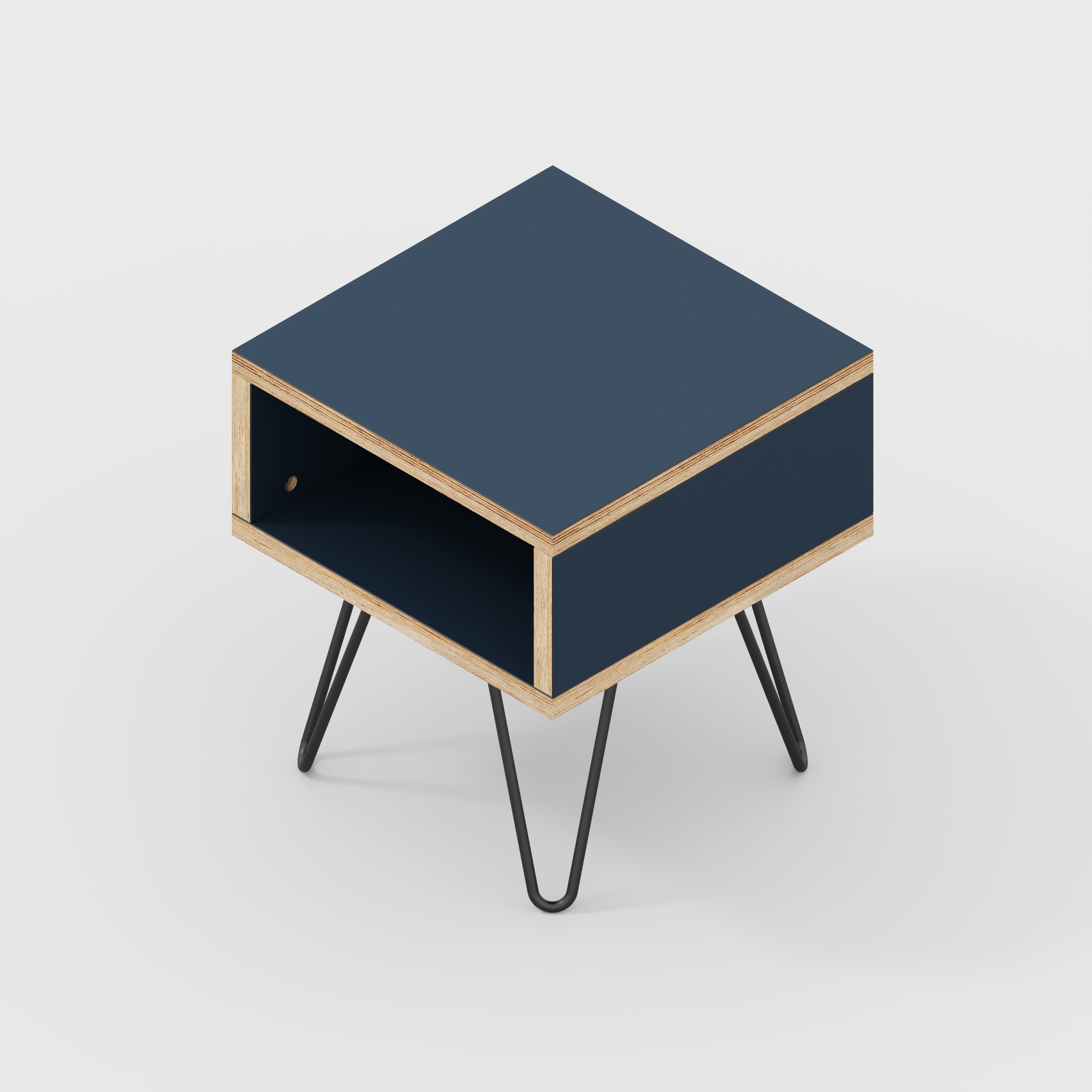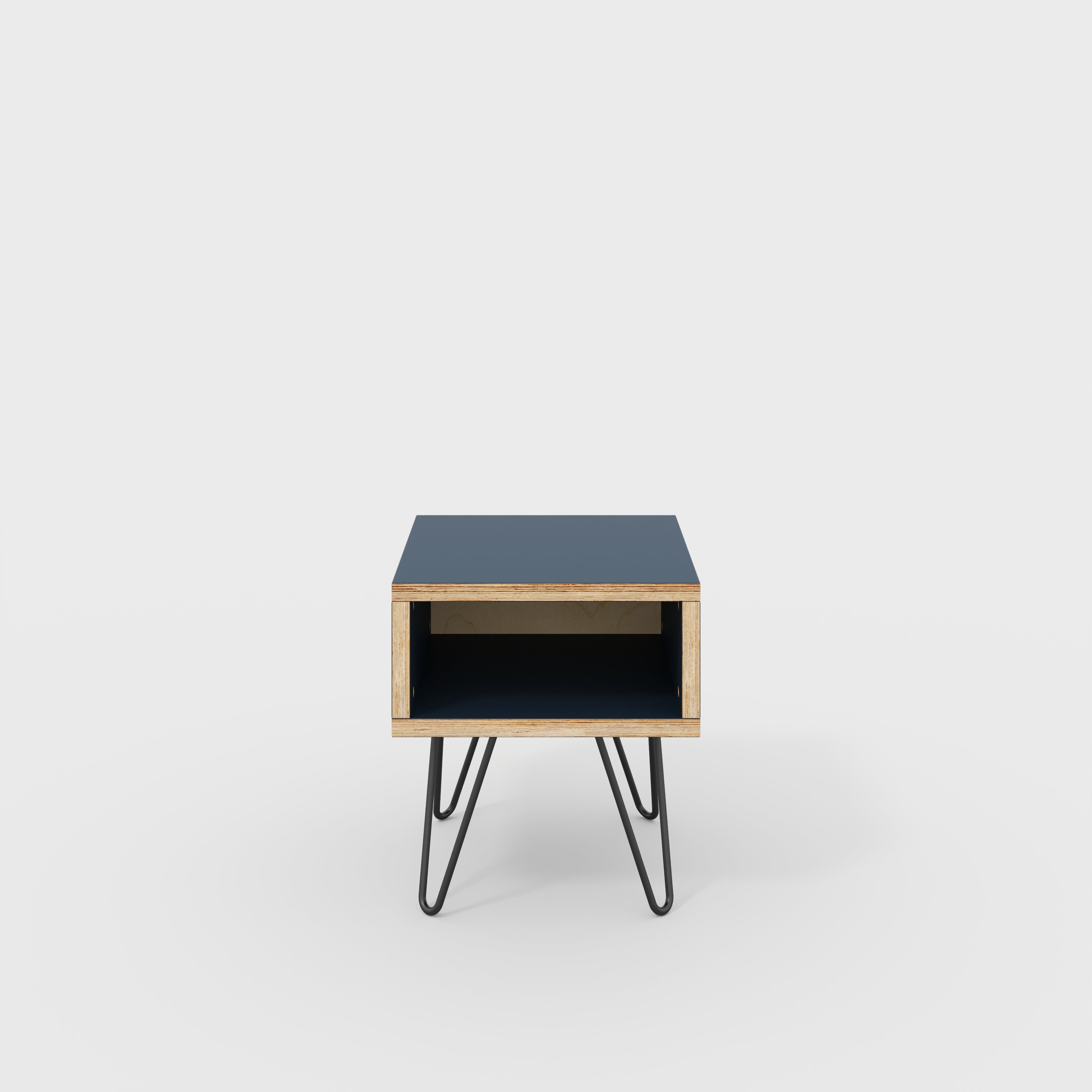 Plywood Bedside Table with Box Storage and Black Hairpin Legs - Formica Night Sea Blue - 400(w) x 400(d) x 450(h)